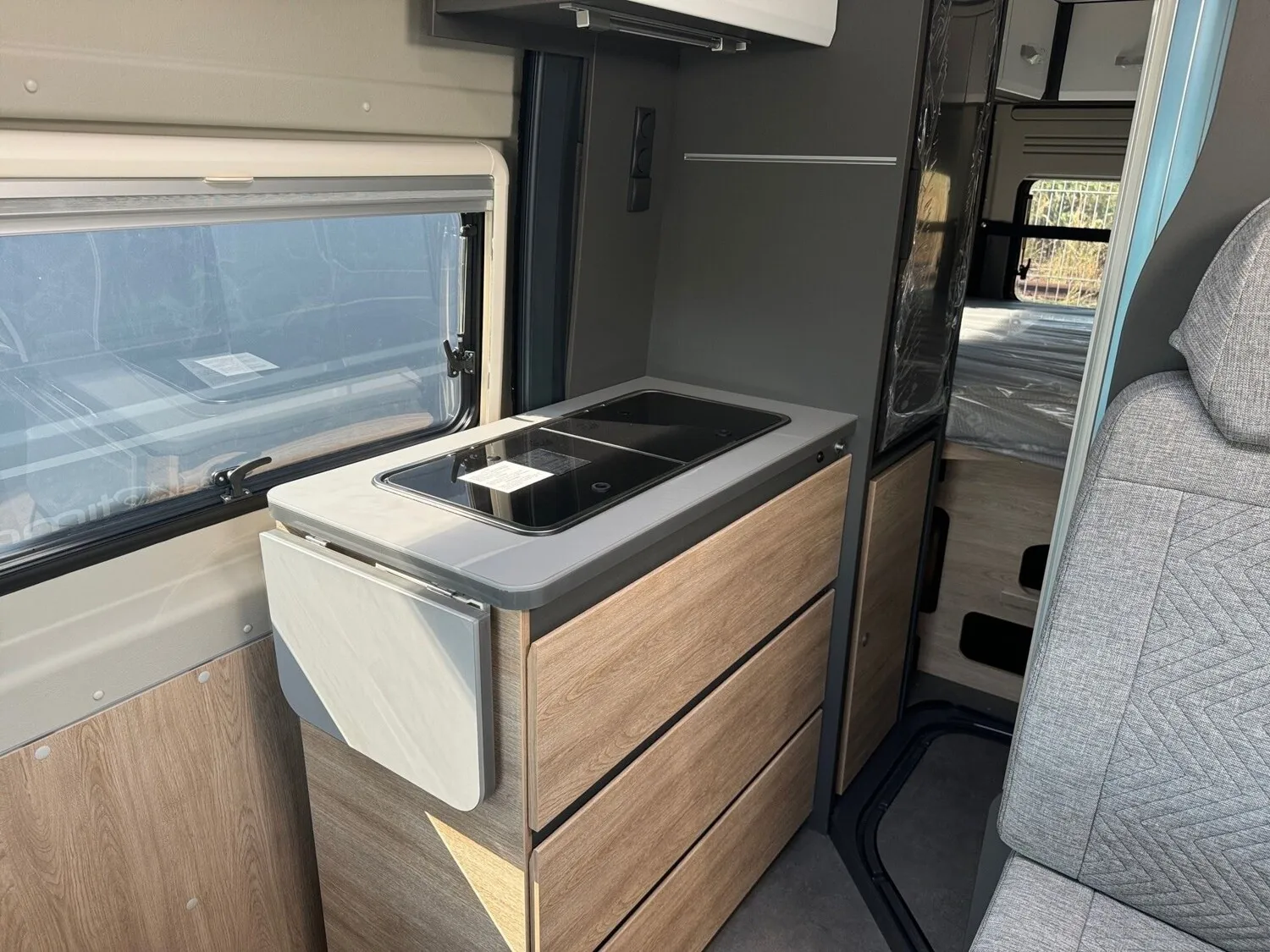• Aufstelldach schwarz, vorne komplett zu öffnen inkl. elektrischem Schließassistenten, Fliegengitter, Schwanenhalsleuchte und USB-Steckdose, mit hochwertiger Matratze