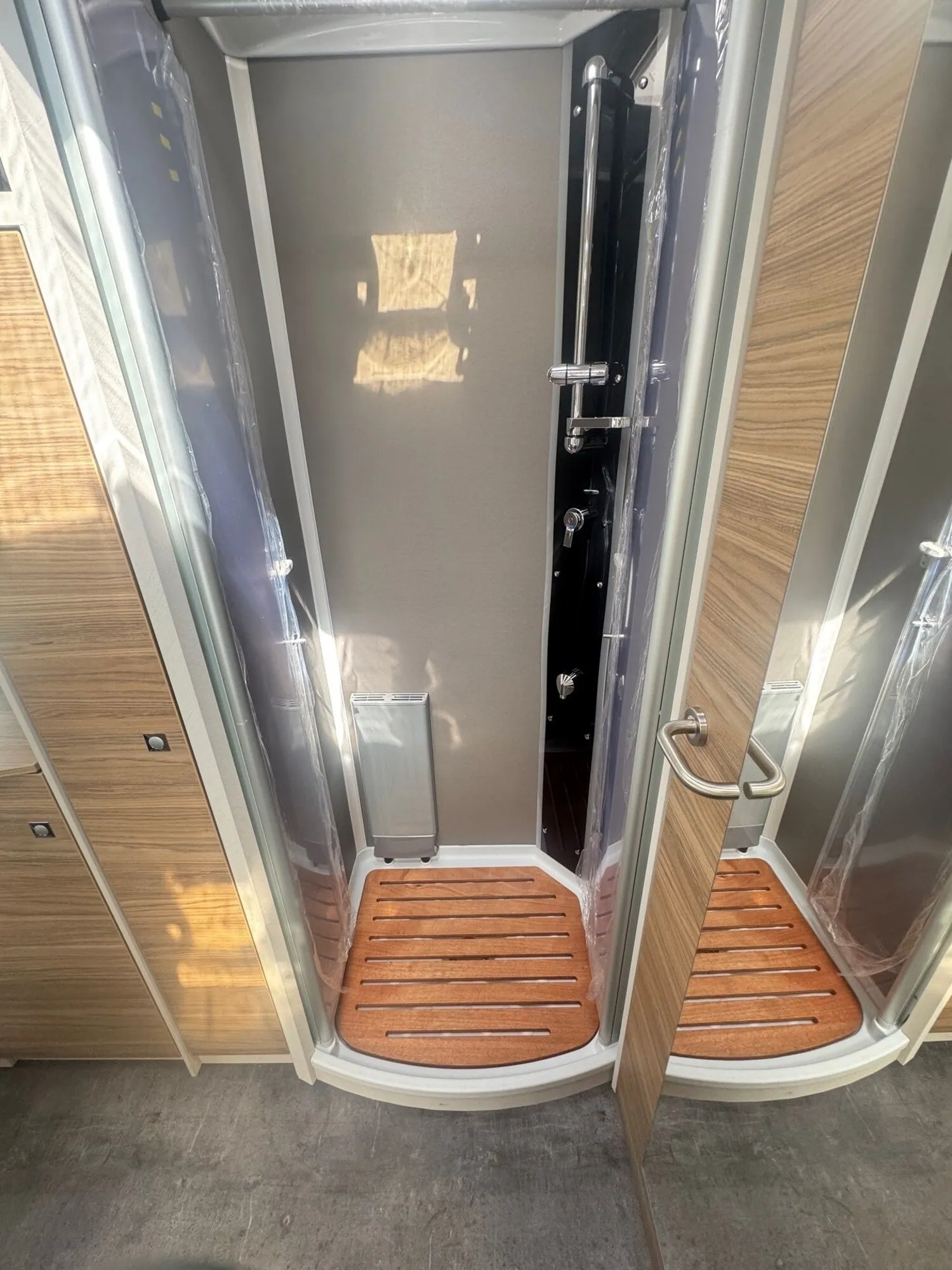 - Travel-Paket I 7820-2 (Vorbereitung für Radiosystem inkl. Soundpaket im Fahrerhaus, Light Moments: Indirekte Ambientebeleuchtung über den Dachstauschränken, Dunstabzugshaube (Abluft) mit Zugluft-Stopper, Stützen (2 Stk.) für Anbau hinten, Radioantenne DAB+ auf dem Dach montiert, Automatische Gasflaschenumschaltung inkl. Crash Sensor, EisEx und Gasfilter, Rückfahrkamera (Einfachkamera), Panoramafenster (zweite Panoramadachhaube 75x105 cm längs über Sitzgruppe Heck) inkl. Baldachin und Raumleuchte, Zentralverriegelung für Fahrerhaus-, Wohnraumtüre und Garagentüren)