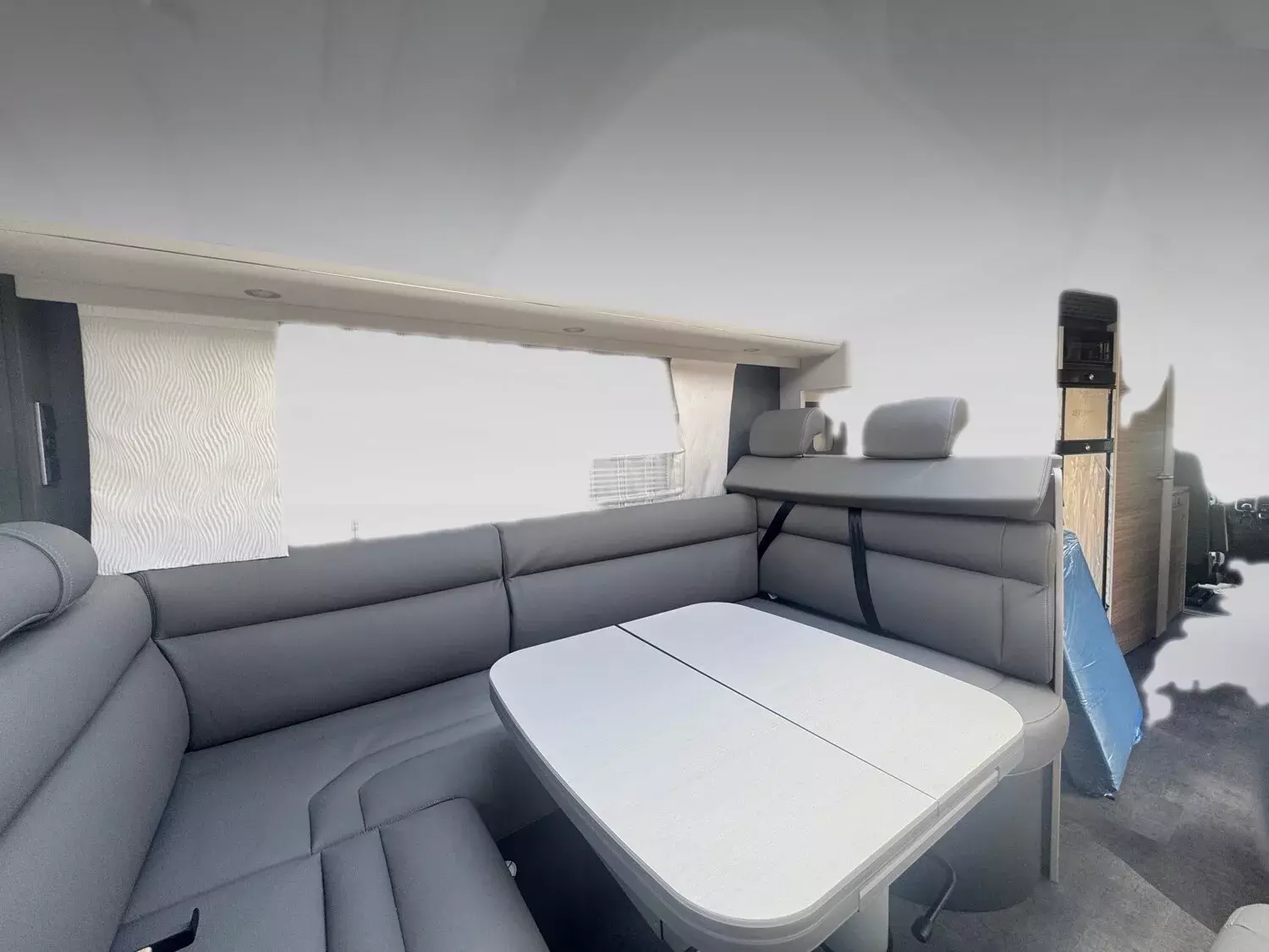- Gurtbank inkl. zwei 3-Punkt-Gurte entgegen der Fahrtrichtung inkl. Bettenbau Sitzgruppe
