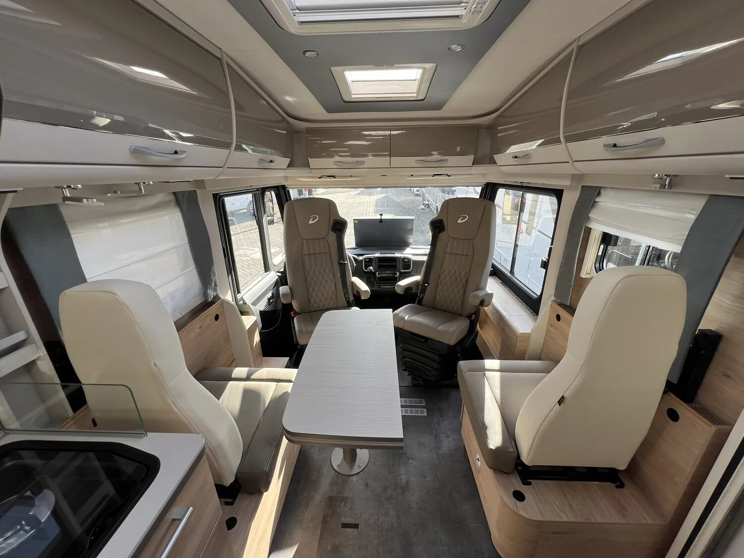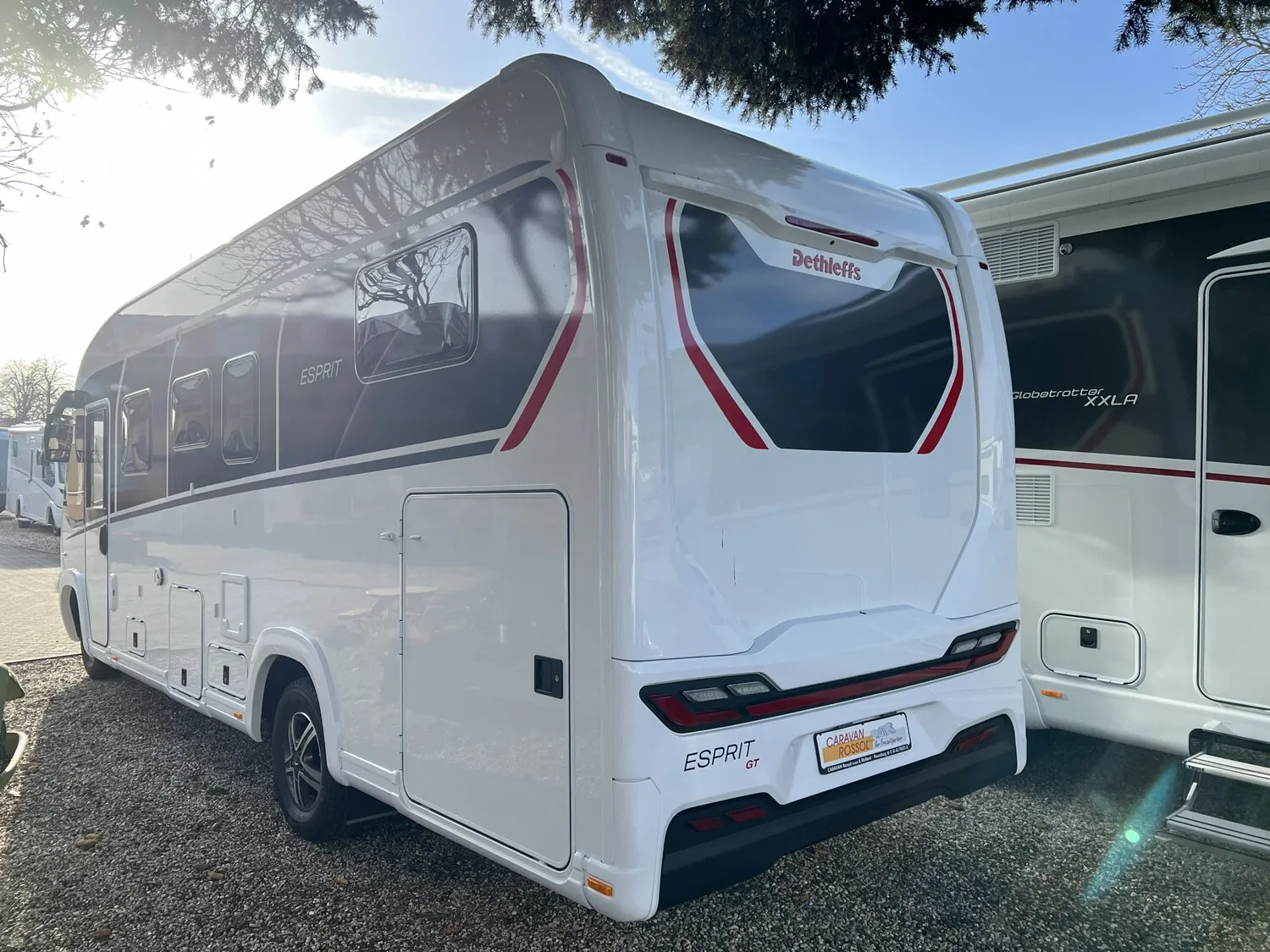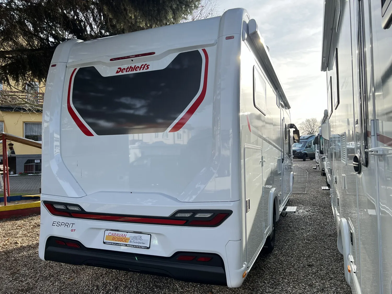 - Esprit GT Advance (Vorbereitung für Radiosystem inkl. Soundpaket im Fahrerhaus, Radioantenne DAB+ auf dem Dach montiert, Fahrerhaustüre links, Panorama-Dachhaube 75x105 cm im Wohnraum, Light Moments: Indirekte Ambientebeleuchtung über den Dachstauschränken, Stützen (2 Stk.) für Anbau hinten, Elektrischer Frontscheiben-Rollo, Automatische Gasflaschenumschaltung inkl. Crash Sensor, EisEx und Gasfilter, Dunstabzugshaube (Abluft) mit Zugluft-Stopper, Integrierte Einlinsen Rückfahrkamera, Zentralverriegelung für Fahrerhaus-, Wohnraumtüre und Garagentüren, LED-Abblendlicht, Sonnenblenden seitlich, als Rollo für Fahrer und Beifahrer, Panorama-Dachhaube 70 x 50 cm im Schlafraum, Innendesign GT inkl. erweiterter Küchenrückwand, Außendesign GT Advance (Heckleuchtenträger mit schwarzem Diffusor, lackierung I-Front teilweise schwarz, Kühlergrill mit Chromkeder, Skidplate "rot"), Alufelgen Dethleffs 16 Zoll, Hoher charakteristischer Dethleffs Exklusiv Heckleuchtenträger mit ShapeLine LED Rückleuchten, in Heckspoiler integrierter 3. Bremsleuchte und eingezogener Heckwand)