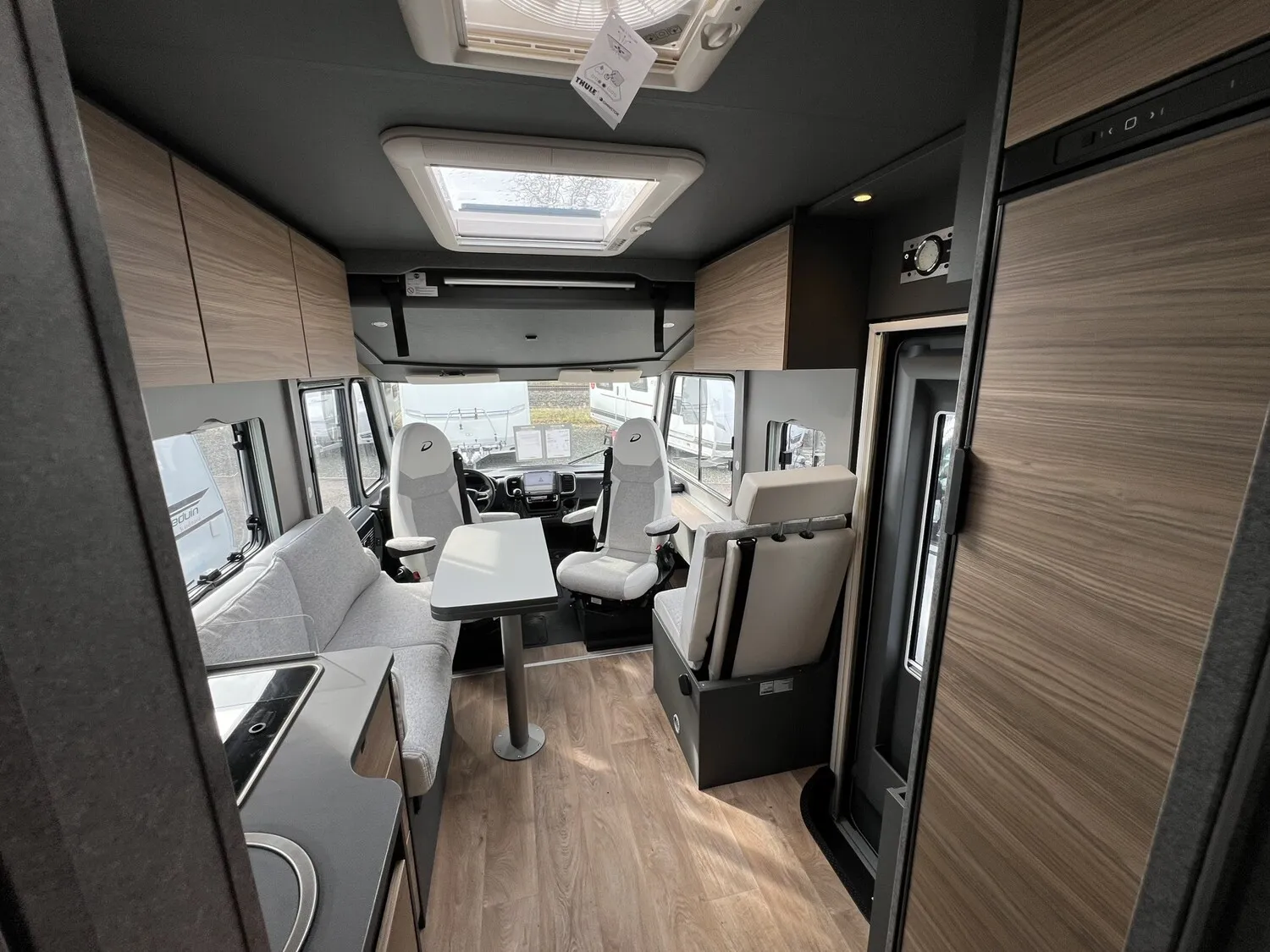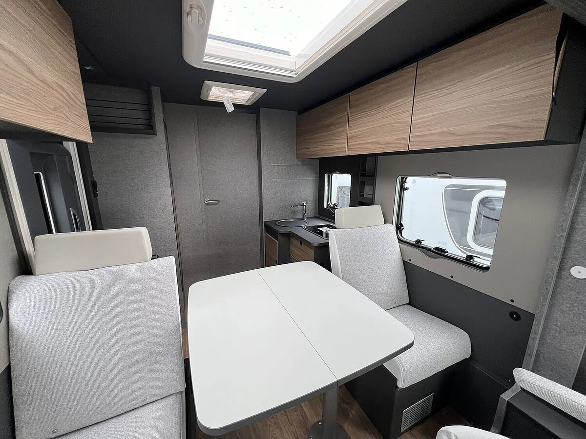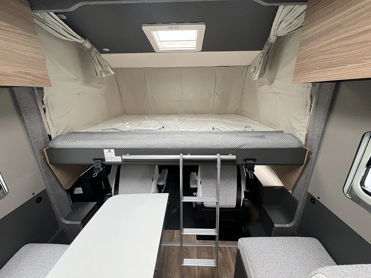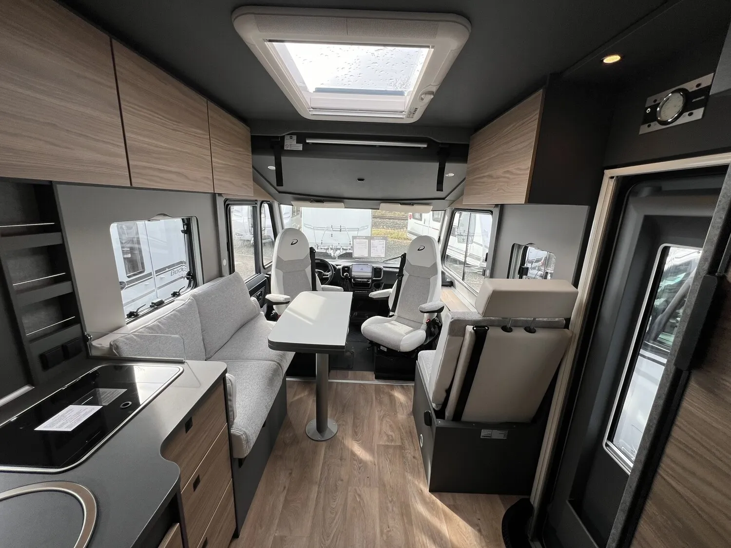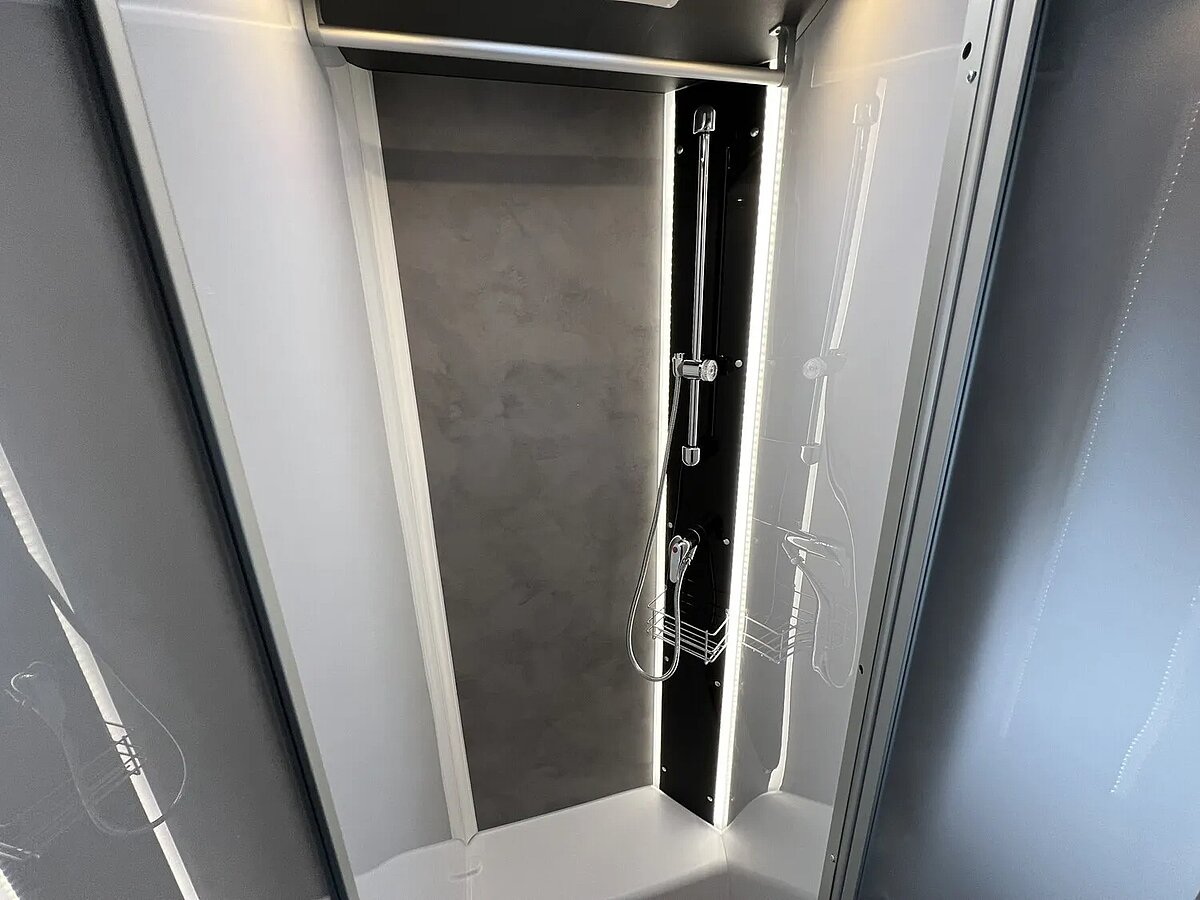 - Family-Paket I 7057 DBL (Wohnraumtür mit Fenster inkl. Verdunkelung und Zentralverriegelung (inkl. Fahrerhaustüre), Light Moments: Indirekte Ambientebeleuchtung über den Dachstauschränken, Light Moments: Indirekte Wandflächen-Ambientebeleuchtung, Light Moments: Küchenrückwand beleuchtet, Light Moments: Indirekte Beleuchtung im Badezimmer mit beleuchteter Duschkonsole, Vorbereitung für Radiosystem inkl. Soundpaket im Fahrerhaus, Radioantenne DAB+ auf dem Dach montiert, Light Moments: Eingangsmodul mit indirekter Beleuchtung)