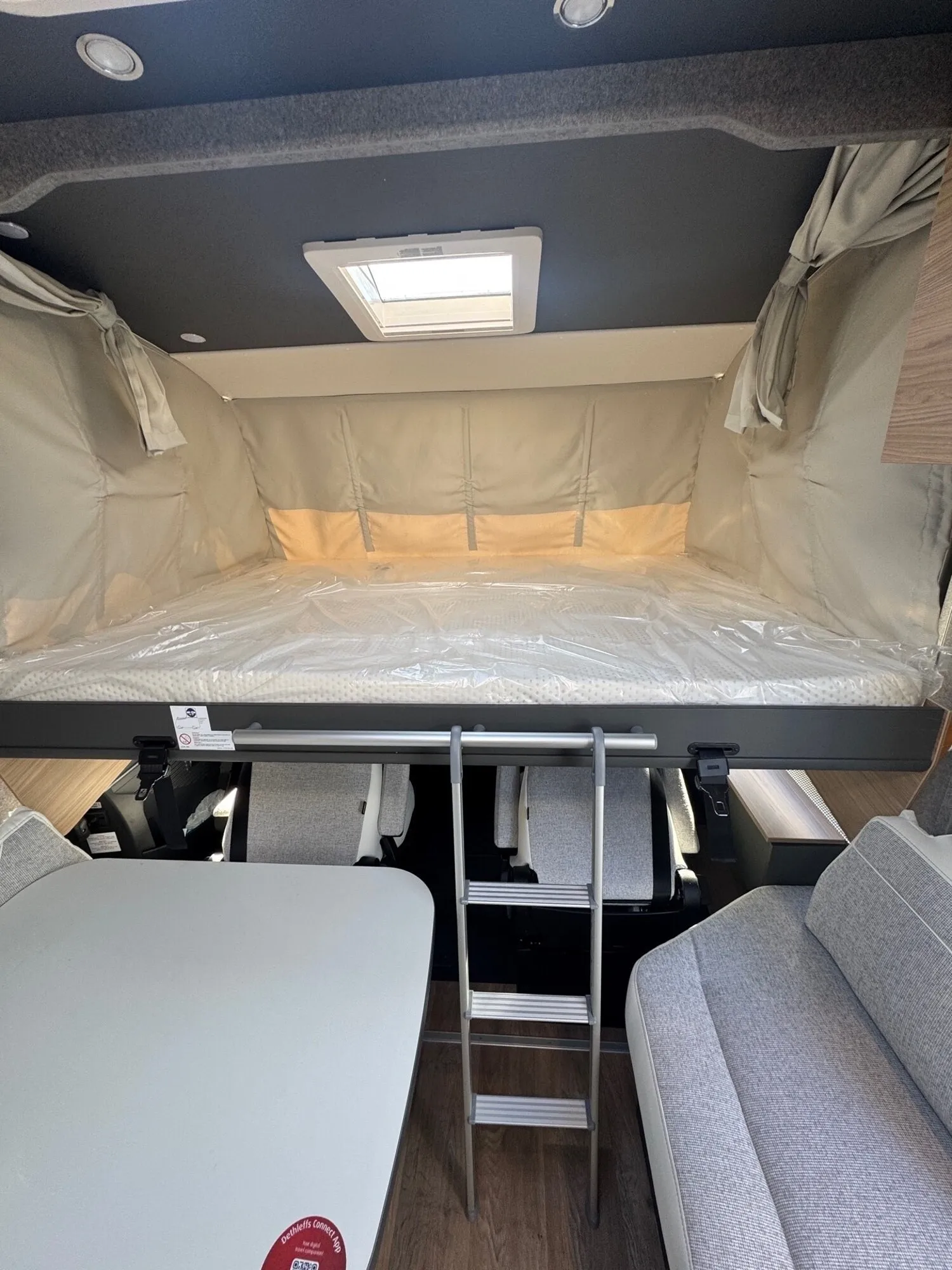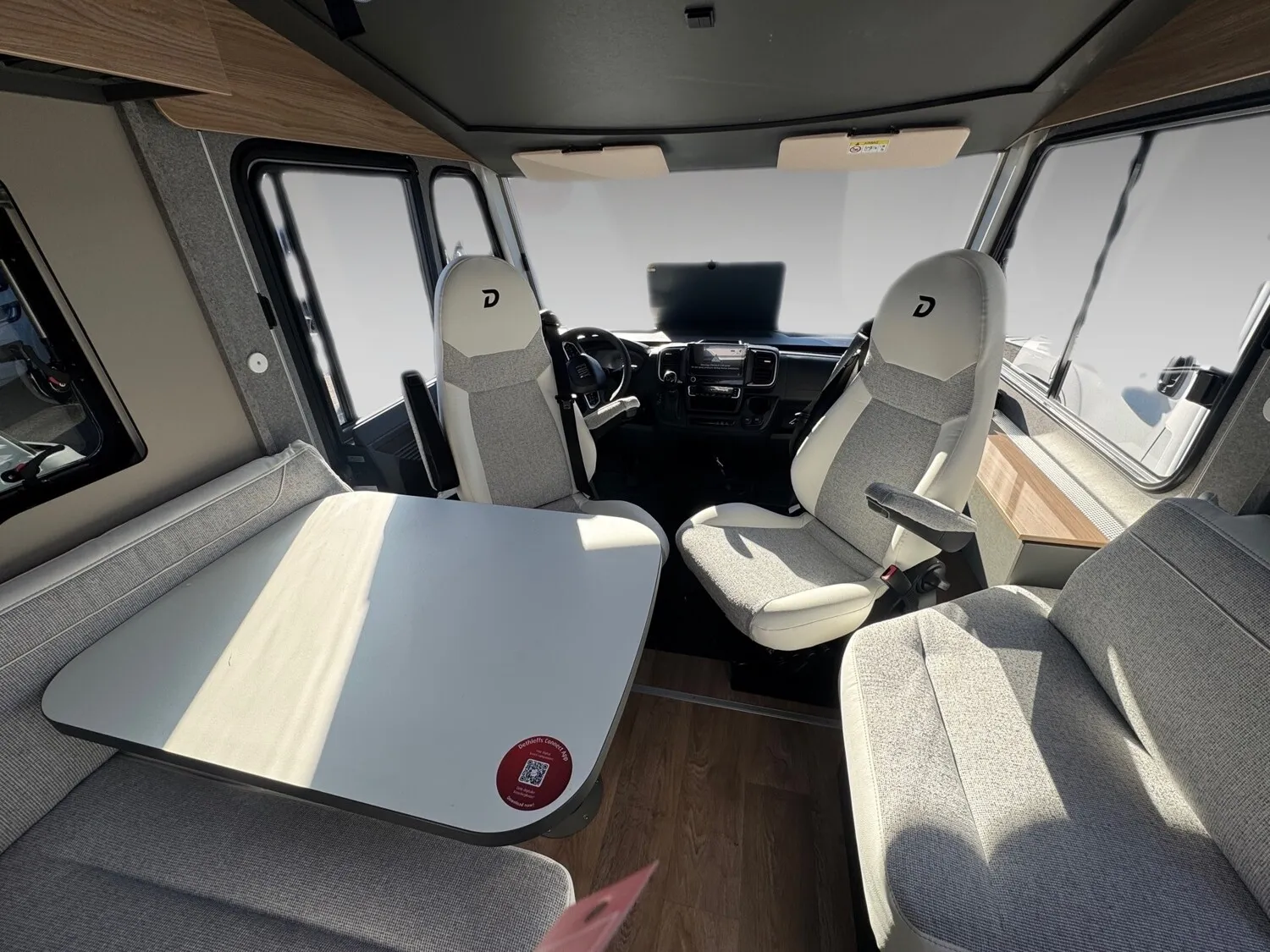 - Active-Paket I 6817, 7057 EB (Wohnraumtür mit Fenster inkl. Verdunkelung und Zentralverriegelung (inkl. Fahrerhaustür), Light Moments: Indirekte Ambientebeleuchtung über den Dachstauschränken, Light Moments: Indirekte Wandflächen-Ambientebeleuchtung, Light Moments: Küchenrückwand beleuchtet, Light Moments: Indirekte Beleuchtung im Badezimmer mit beleuchteter Duschkonsole, Vorbereitung für Radiosystem inkl. Soundpaket im Fahrerhaus, Radioantenne DAB+ auf dem Dach montiert, Light Moments: Eingangsmodul mit indirekter Beleuchtung, Light Moments: Verkleidete Sitztruhenwange mit indirekter Beleuchtung, Gemütliche L-Sitzgruppe mit freistehendem, absenkbarem Tischfuß und 2 integrierte 3-Punkt-Gurte, Bettumbau Einzelbetten zu Doppelbett, Außendesign GT (Heckleuchtenträger mit schwarzem Diffusor, erweiterte Beklebung, Skidplate "rot"), Integrierte Einlinsen Rückfahrkamera, Vorbereitung SAT-Anlage, Vorbereitung Dach-Klimaanlage, Vorbereitung Solar, Duschrost, Dethleffs Naviceiver inkl. DAB+, Truck Navigation, Wireless Apple CarPlay und Android Auto, Textilleder-Wohnwelt Heron, Fenster im Badezimmer)