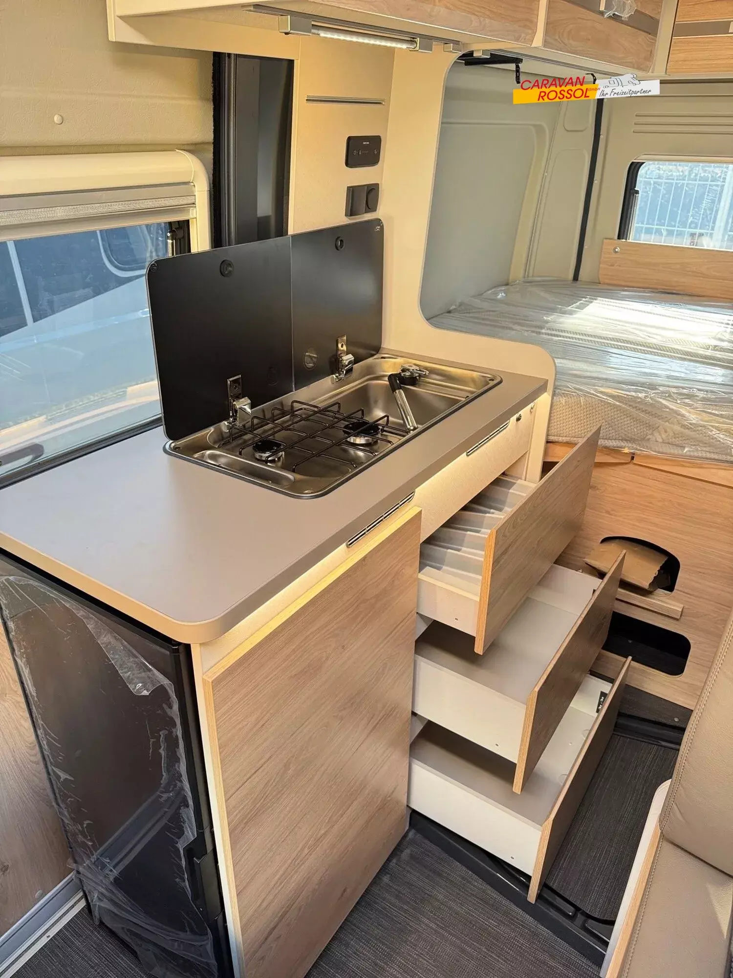 - Elektro Paket (Zusätzliche Doppel-USB-Steckdose im Bug links, 12-V-Steckdose im Heckbereich links unten, 230-V-Steckdose im Oberschrank Bug links (Sitzgruppe), Indirekte Beleuchtung, LED-Lichtröhre in der Küche, Vorbereitung Solarmodule)