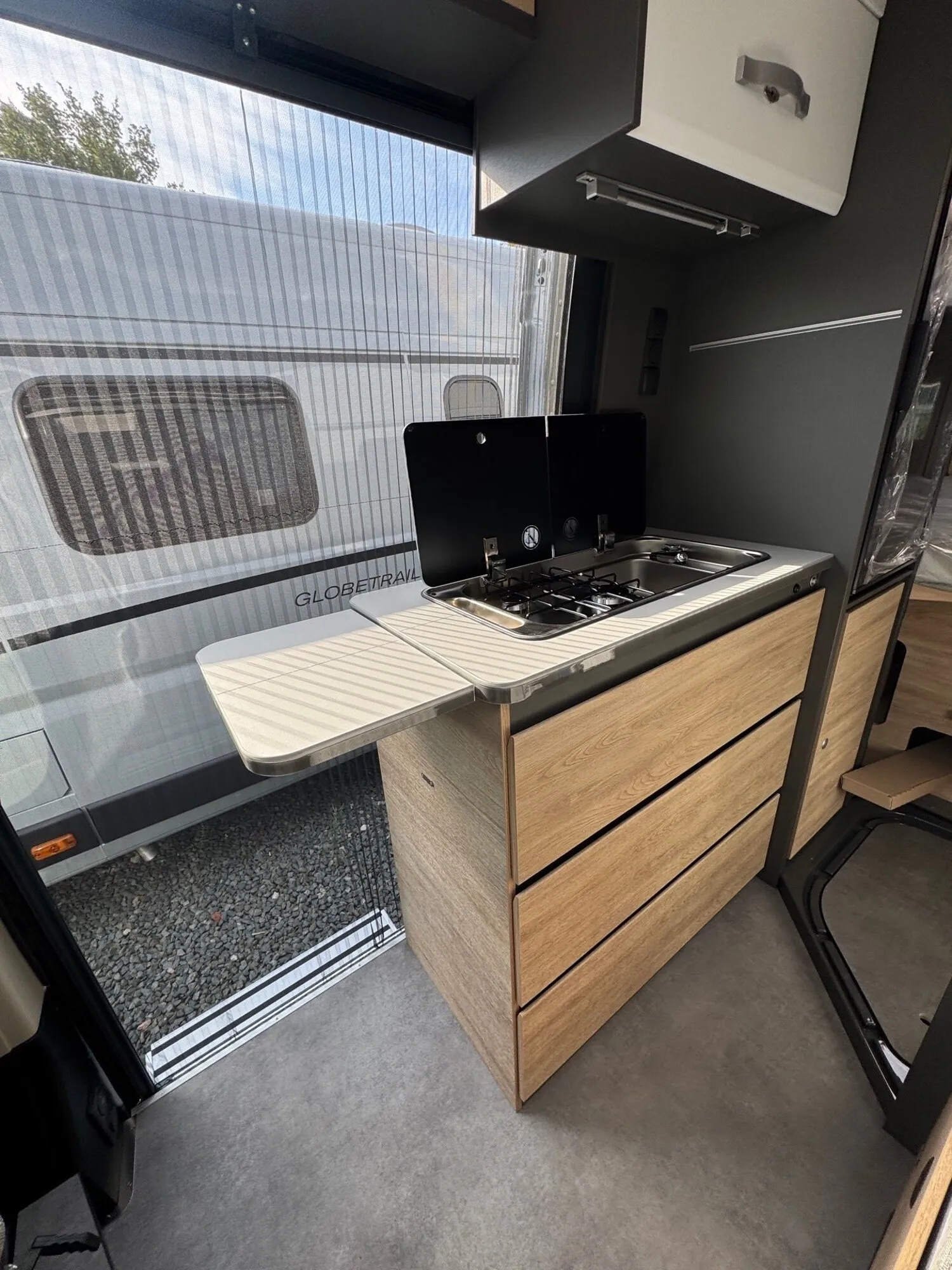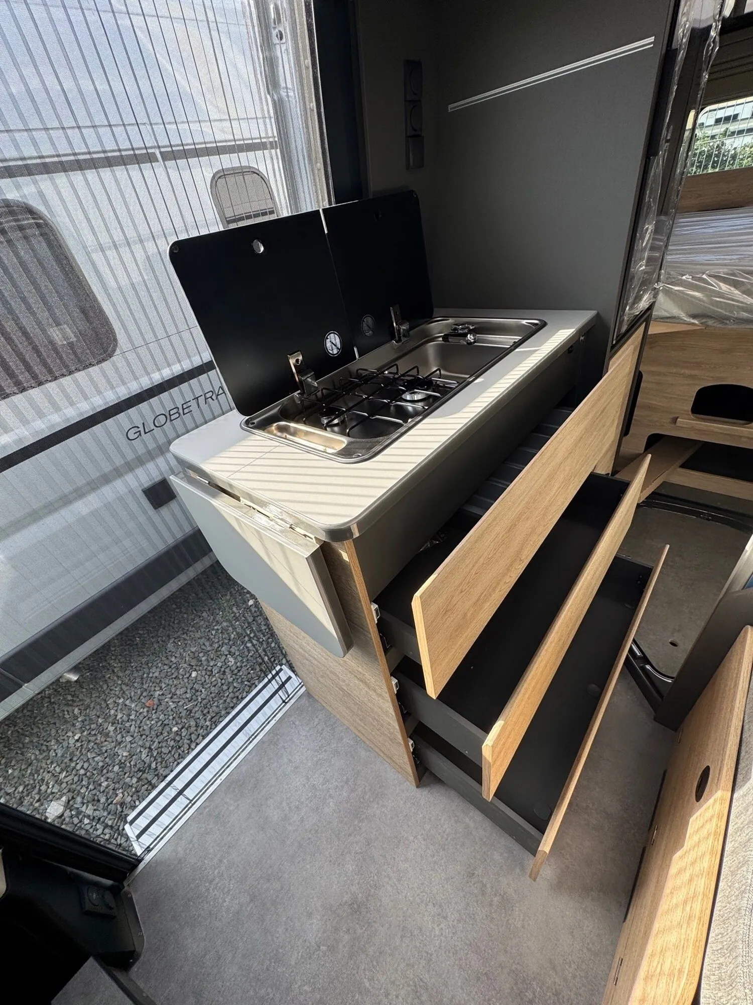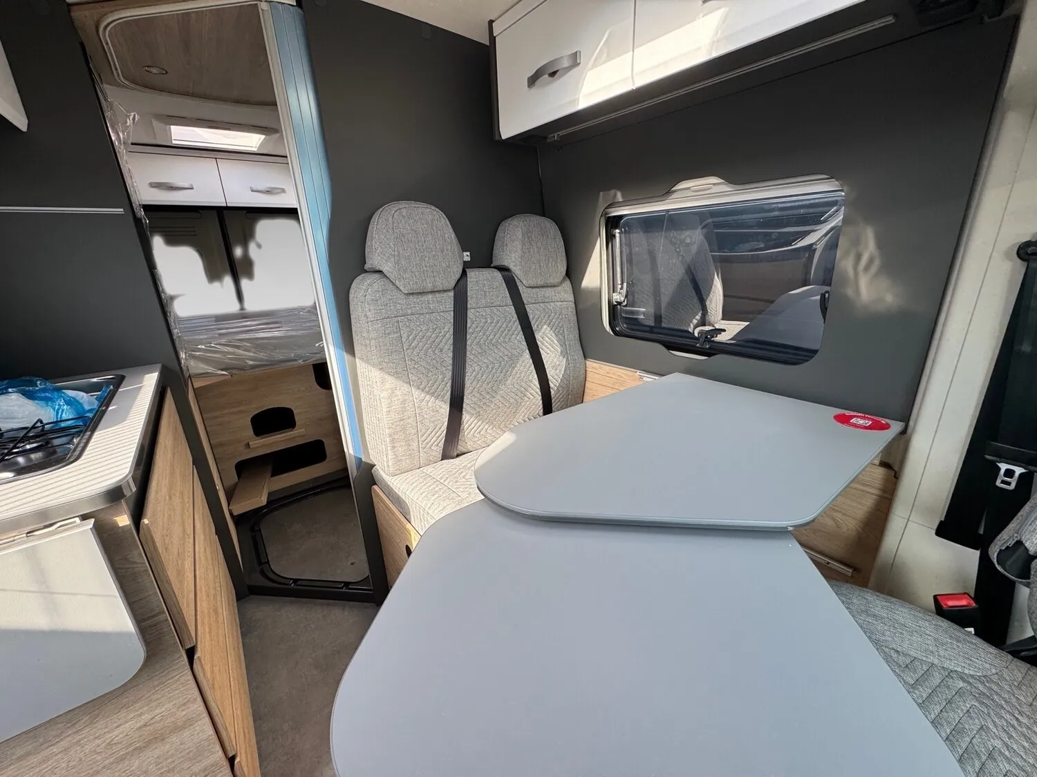 - Elektro Paket (Zusätzliche Doppel-USB-Steckdose im Bug links, 12-V-Steckdose im Heckbereich links unten, 230-V-Steckdose im Oberschrank Bug links (Sitzgruppe), Indirekte Beleuchtung, LED-Lichtröhre in der Küche, Vorbereitung Solarmodule)
