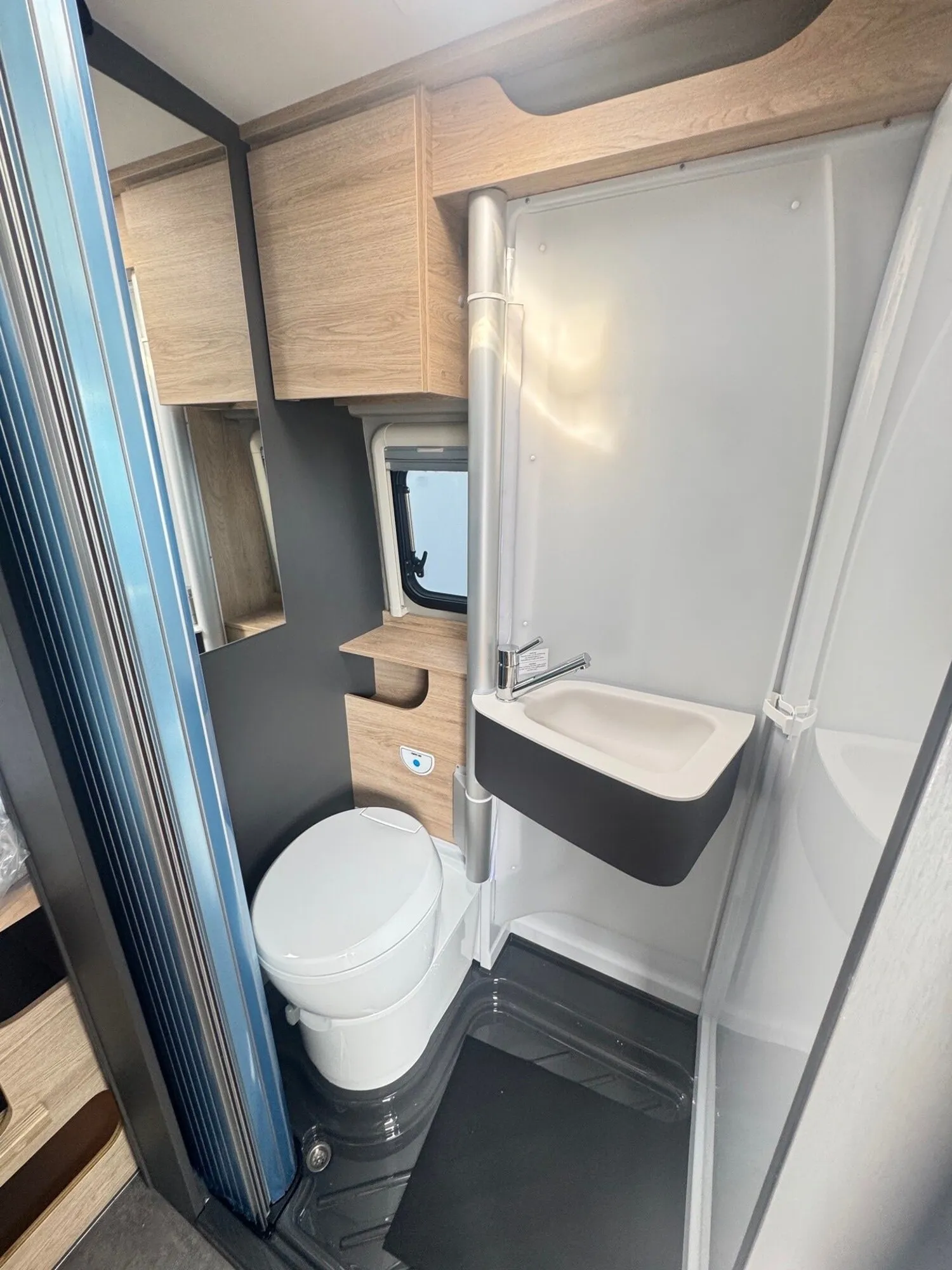 - Elektro Paket (Zusätzliche Doppel-USB-Steckdose im Bug links, 12-V-Steckdose im Heckbereich links unten, 230-V-Steckdose im Oberschrank Bug links (Sitzgruppe), Indirekte Beleuchtung, LED-Lichtröhre in der Küche, Vorbereitung Solarmodule)