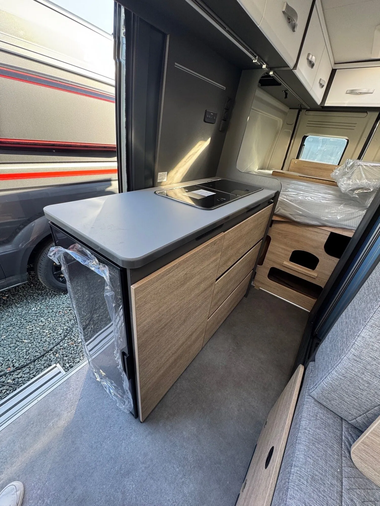 - Elektro Paket (Zusätzliche Doppel-USB-Steckdose im Bug links, 12-V-Steckdose im Heckbereich links unten, 230-V-Steckdose im Oberschrank Bug links (Sitzgruppe), Indirekte Beleuchtung, LED-Lichtröhre in der Küche, Vorbereitung Solarmodule)
