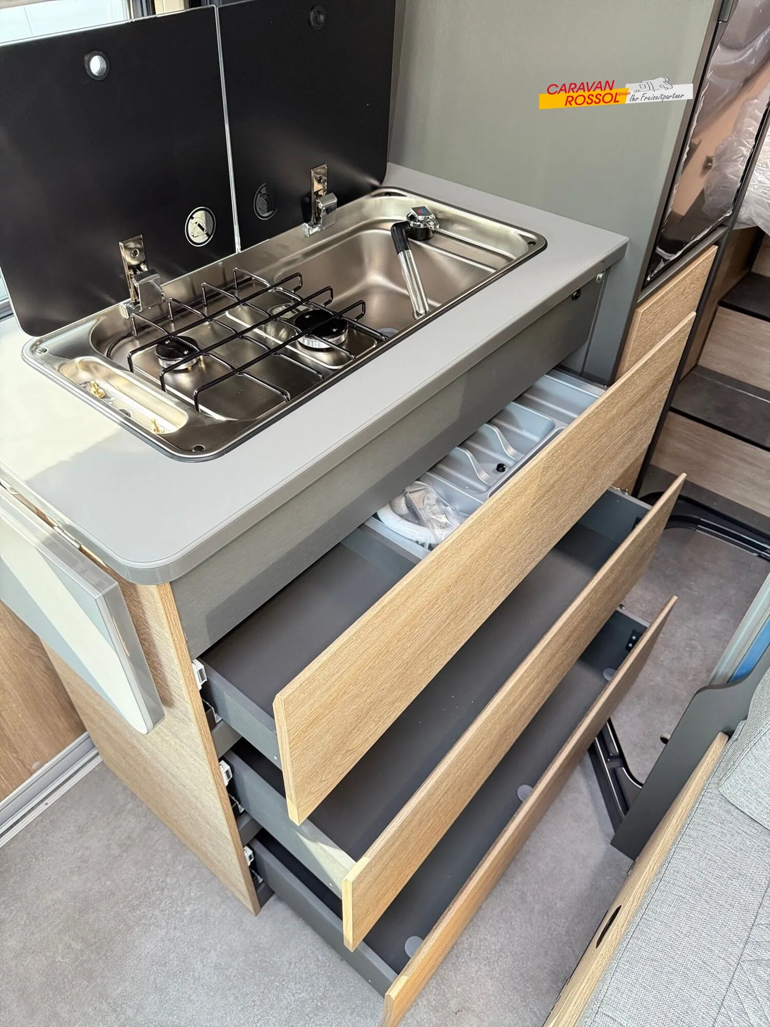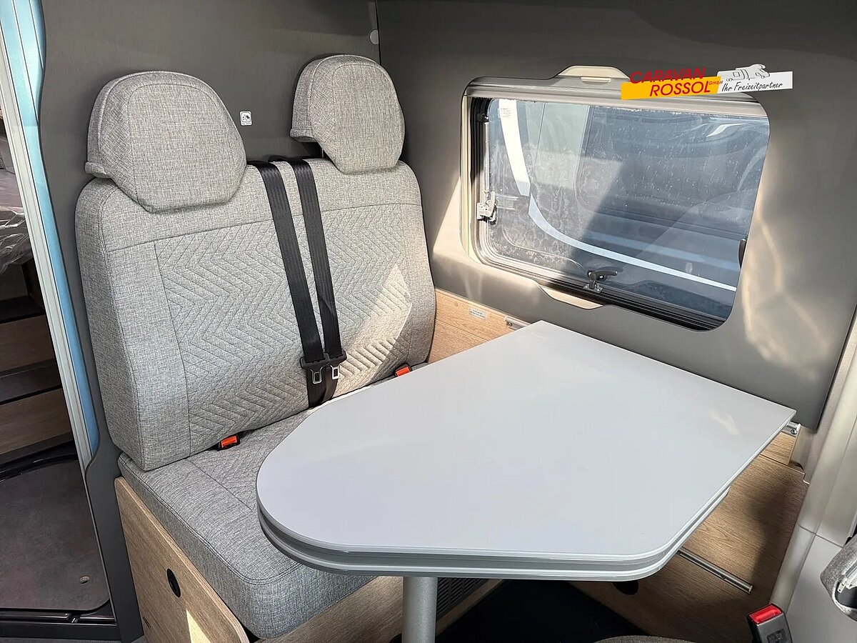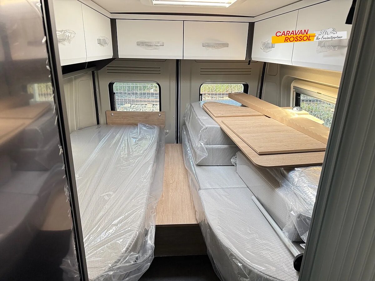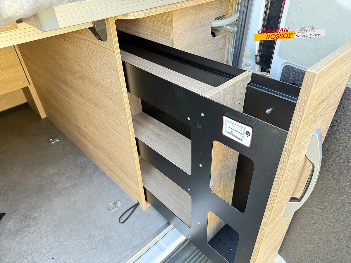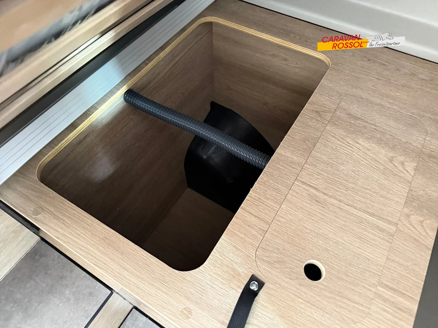 - Elektro Paket (Zusätzliche Doppel-USB-Steckdose im Bug links, 12-V-Steckdose im Heckbereich links unten, 230-V-Steckdose im Oberschrank Bug links (Sitzgruppe), Indirekte Beleuchtung, LED-Lichtröhre in der Küche, Vorbereitung Solarmodule)