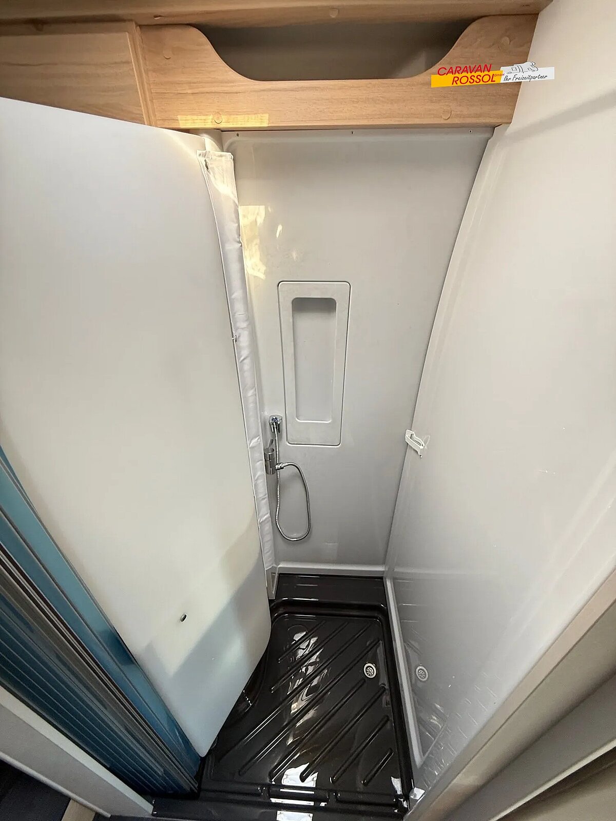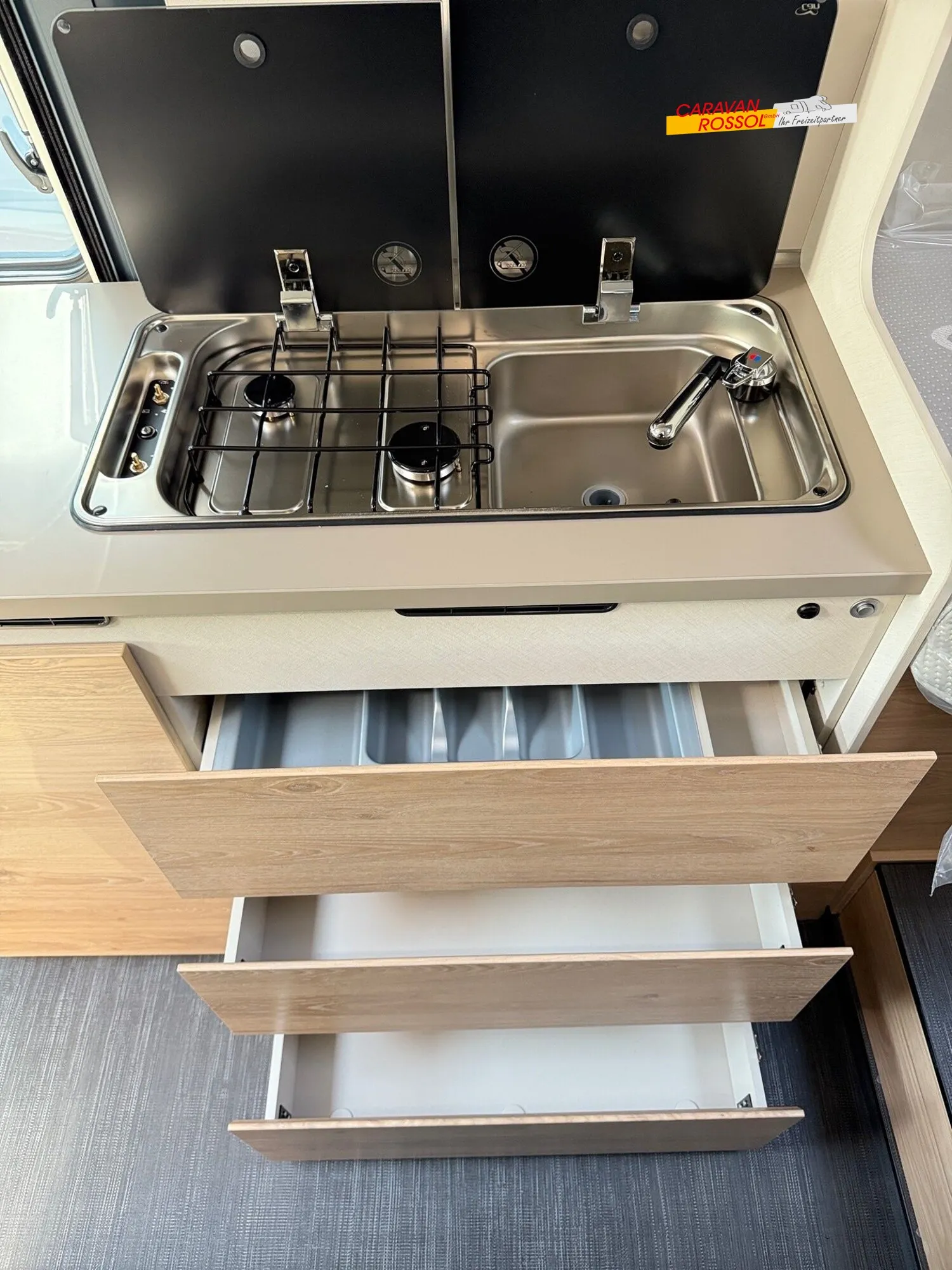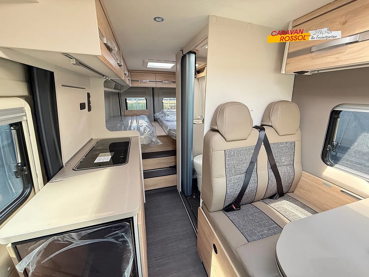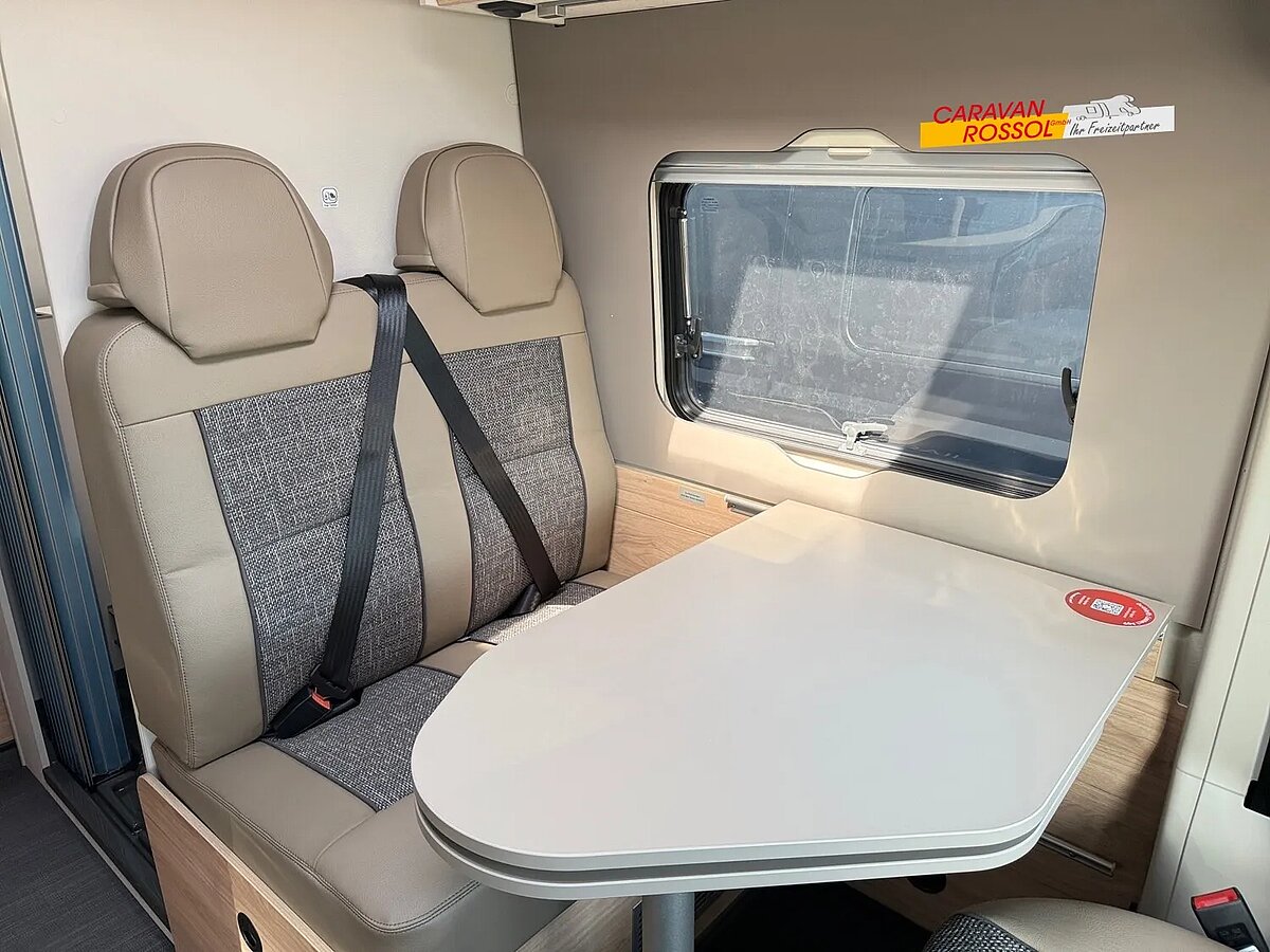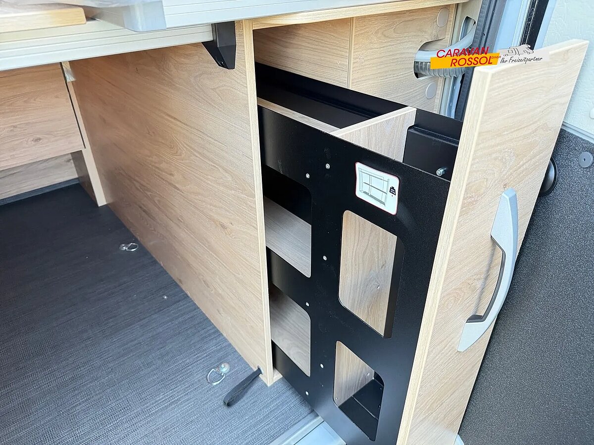 - Elektro Paket (Zusätzliche Doppel-USB-Steckdose im Bug links, 12-V-Steckdose im Heckbereich links unten, 230-V-Steckdose im Oberschrank Bug links (Sitzgruppe), Indirekte Beleuchtung, LED-Lichtröhre in der Küche, Vorbereitung Solarmodule)