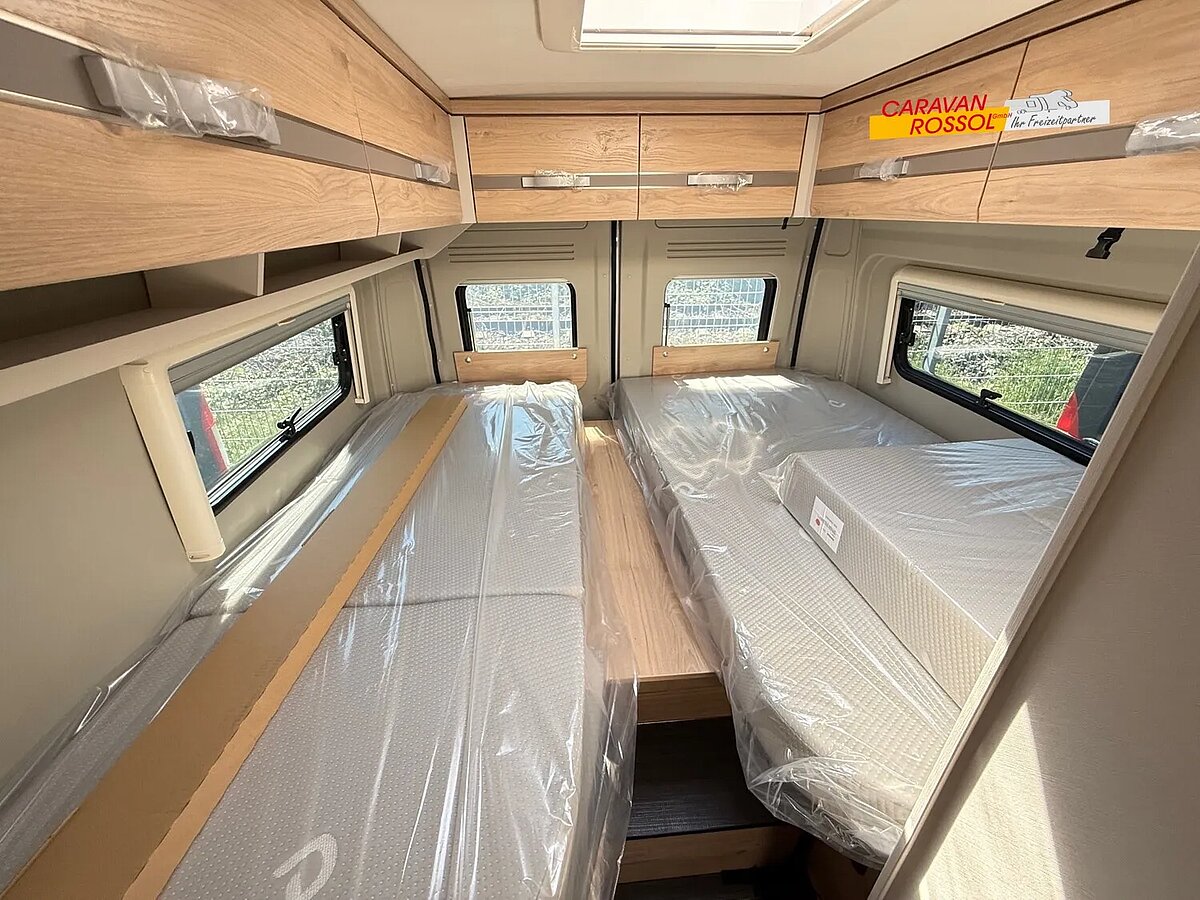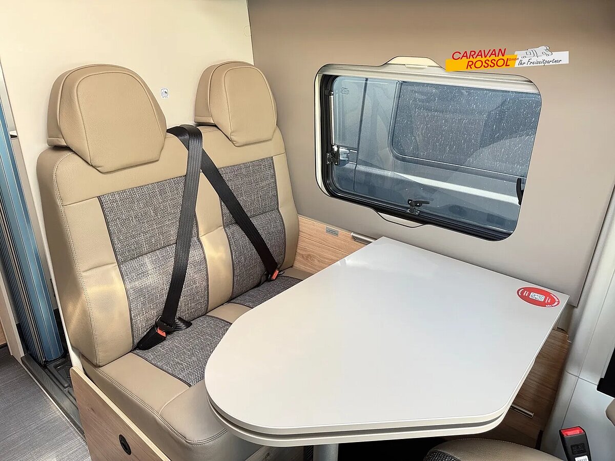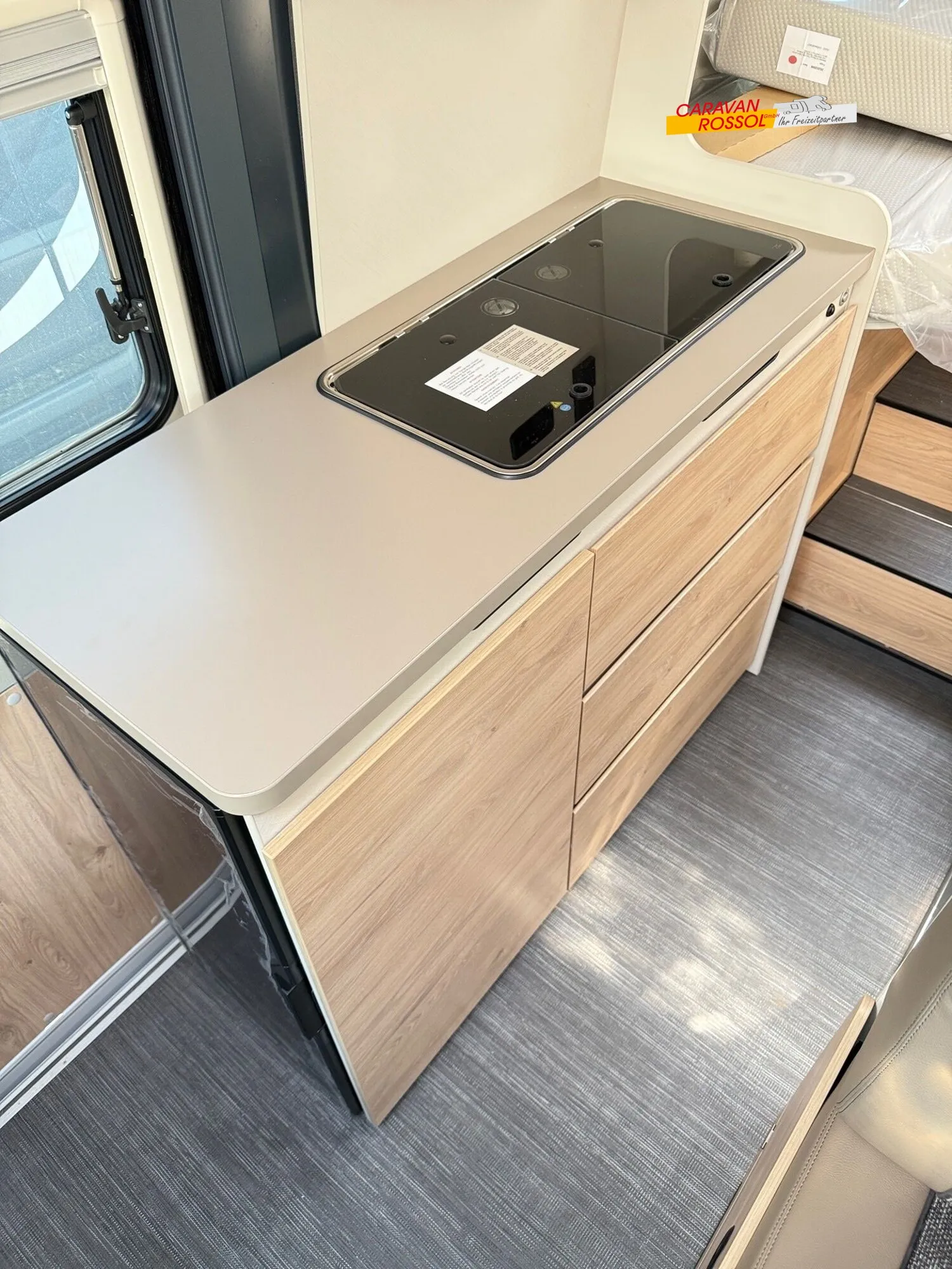 - Elektro Paket (Zusätzliche Doppel-USB-Steckdose im Bug links, 12-V-Steckdose im Heckbereich links unten, 230-V-Steckdose im Oberschrank Bug links (Sitzgruppe), Indirekte Beleuchtung, LED-Lichtröhre in der Küche, Vorbereitung Solarmodule)