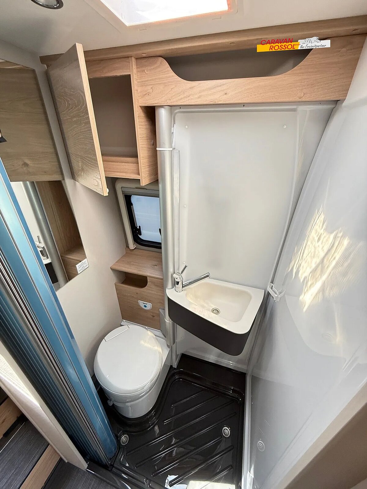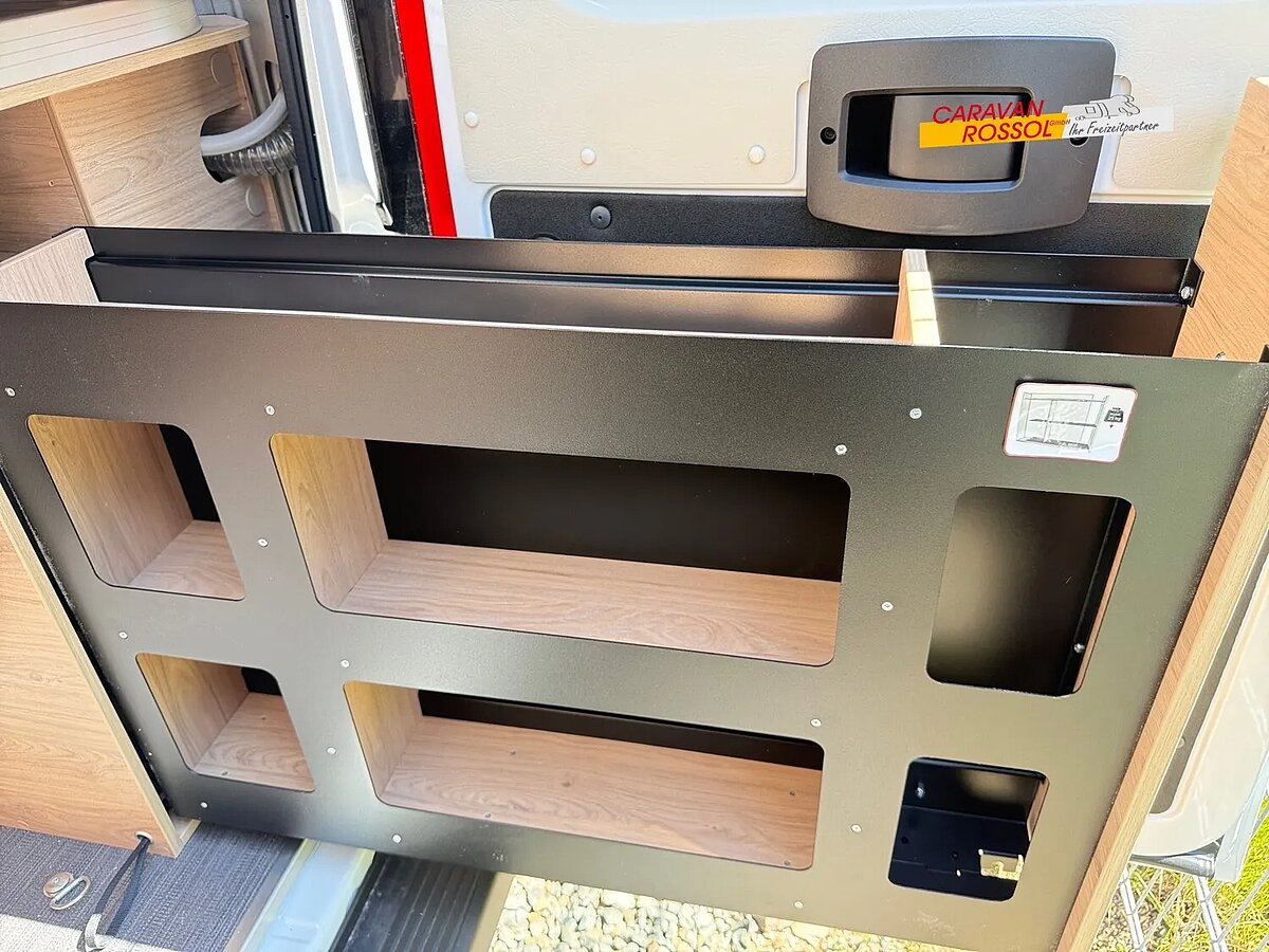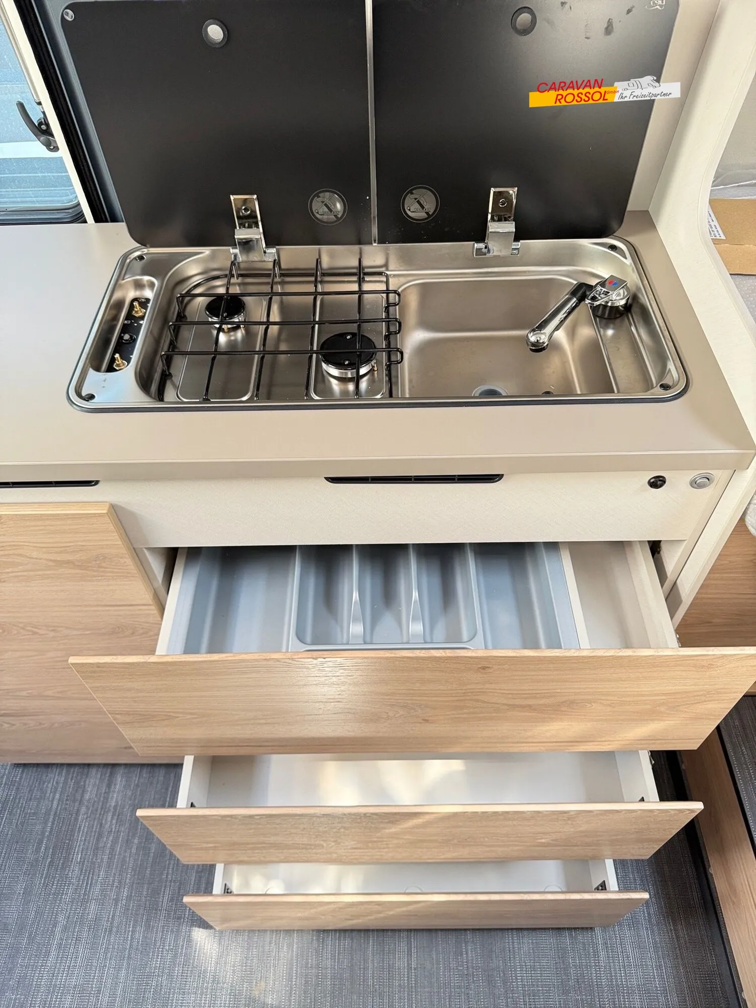 - Elektro Paket (Zusätzliche Doppel-USB-Steckdose im Bug links, 12-V-Steckdose im Heckbereich links unten, 230-V-Steckdose im Oberschrank Bug links (Sitzgruppe), Indirekte Beleuchtung, LED-Lichtröhre in der Küche, Vorbereitung Solarmodule)