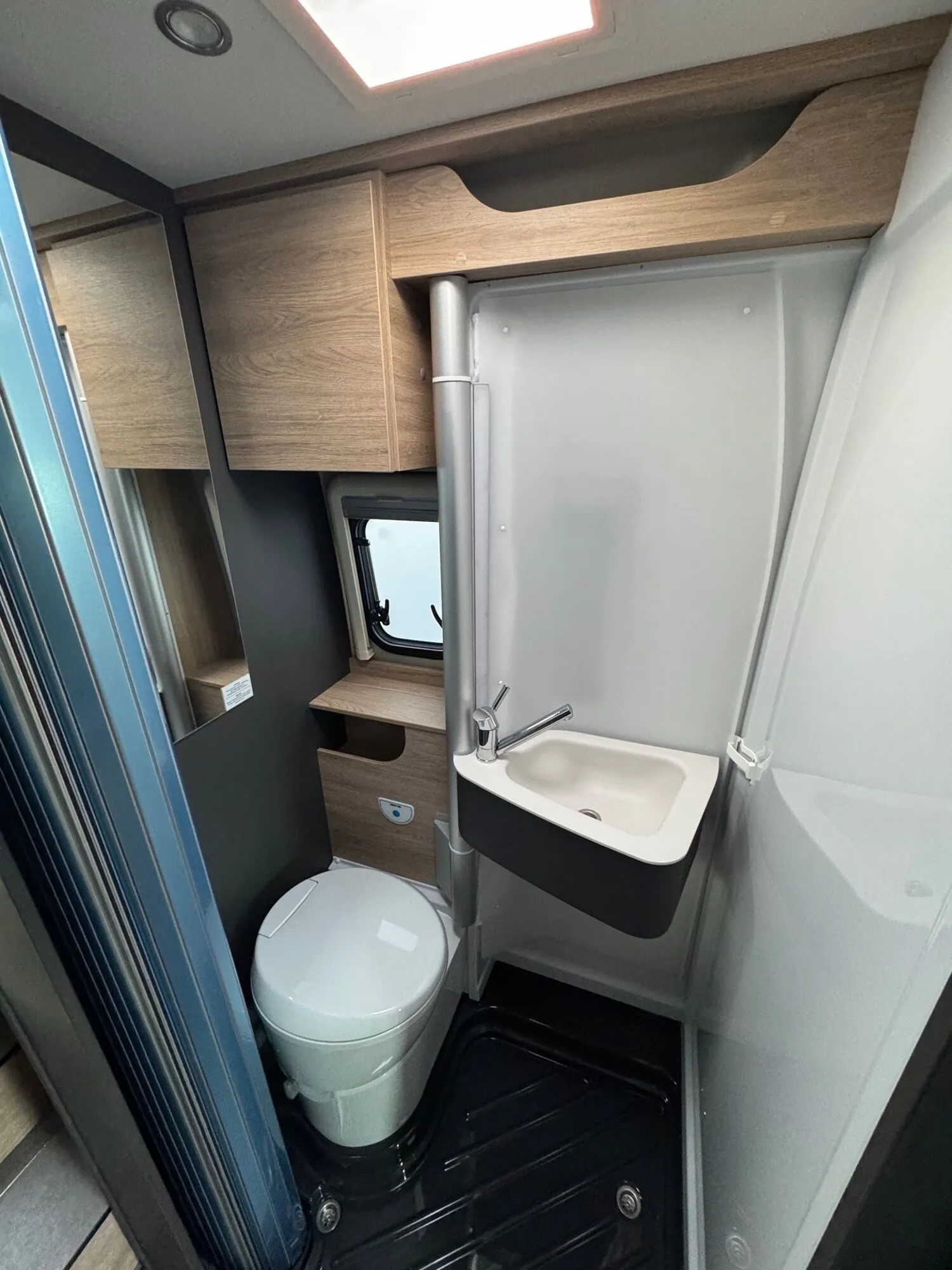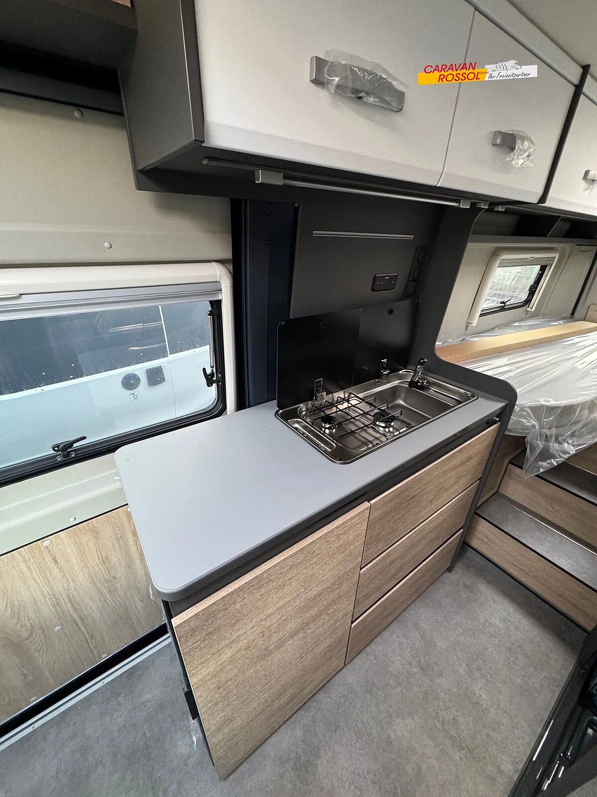 - Elektro Paket (Zusätzliche Doppel-USB-Steckdose im Bug links, 12-V-Steckdose im Heckbereich links unten, 230-V-Steckdose im Oberschrank Bug links (Sitzgruppe), Indirekte Beleuchtung, LED-Lichtröhre in der Küche, Vorbereitung Solarmodule)