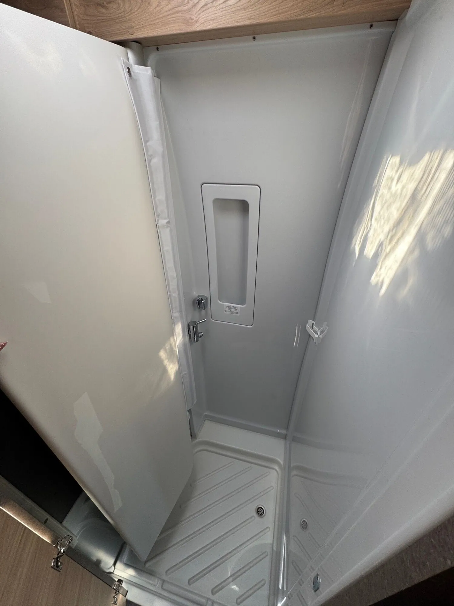 - Fenster mit Fliegenschutz und Verdunklungsrollo im Heck links