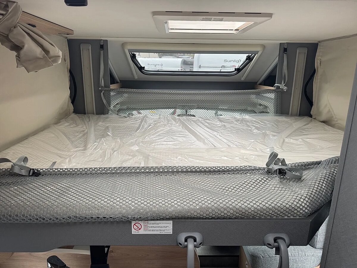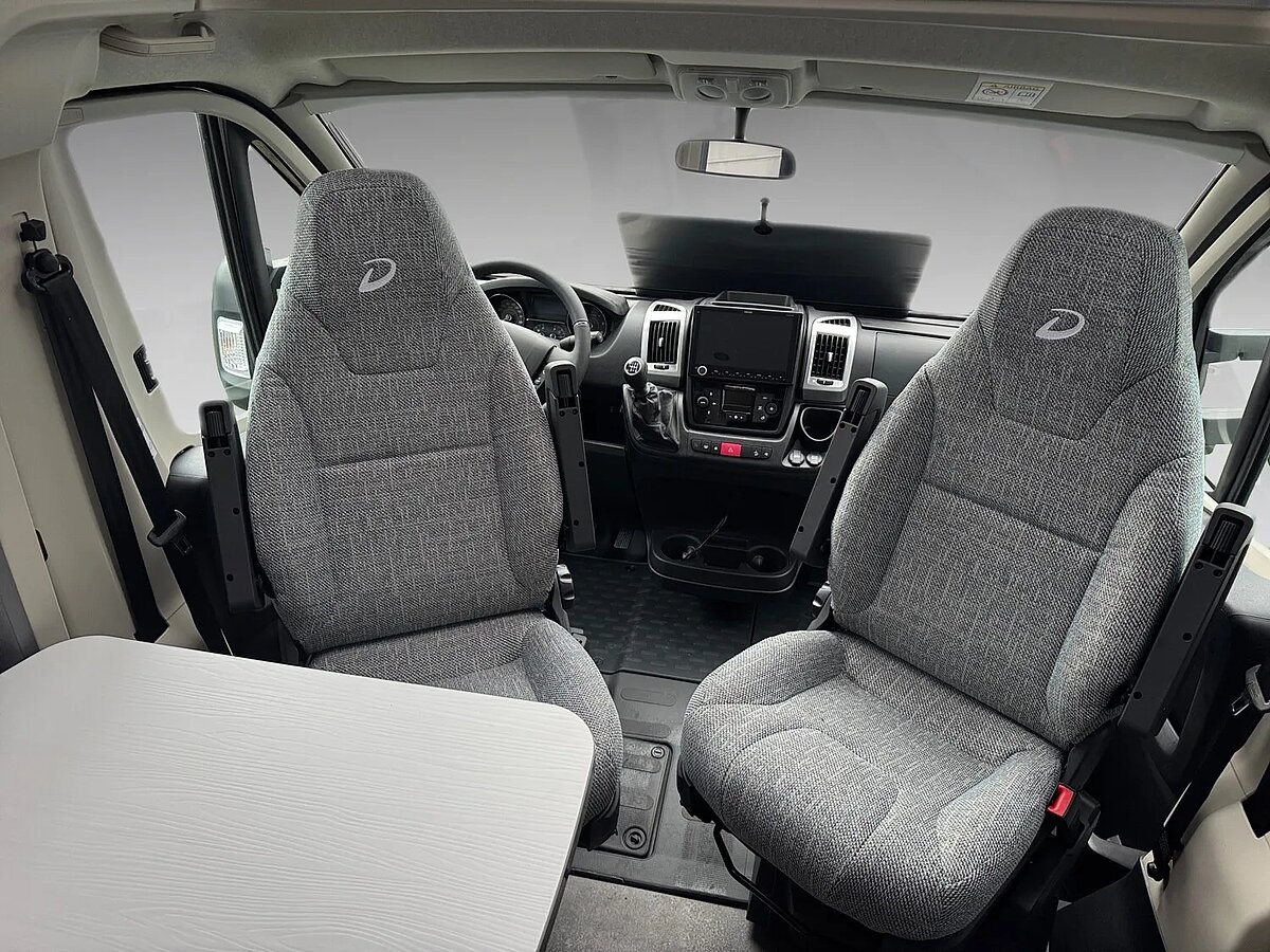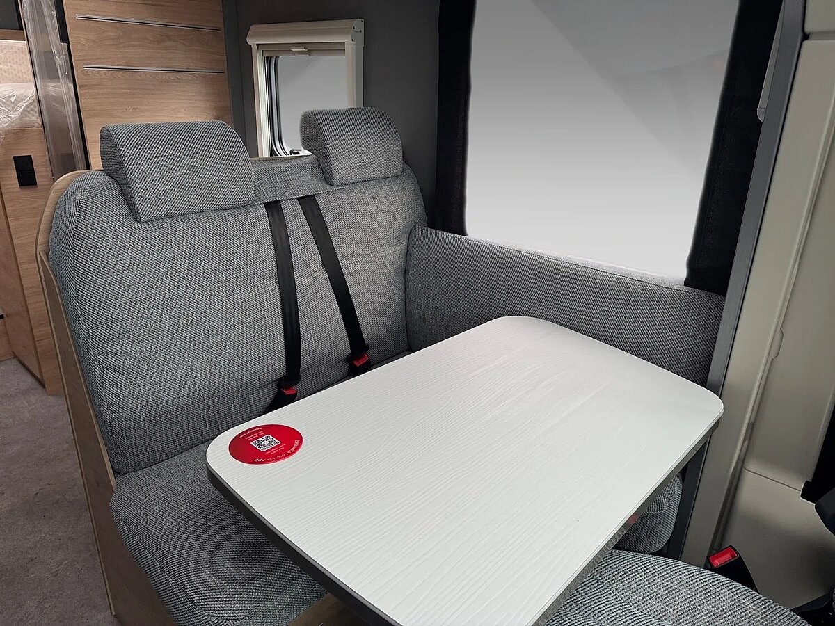 - Family-Paket T 6812, 7052 EB (Ausstellfenster in der T-Haube, Wohnraumtür mit Fenster inkl. Verdunkelung und Zentralverriegelung (inkl. Fahrerhaustüre), Verdunklungsjalousien im Fahrerhaus, Panorama-Dachhaube 70 x 50 cm im Wohnraum, Light Moments: Indirekte Ambientebeleuchtung über den Dachstauschränken, Light Moments: Indirekte Wandflächen-Ambientebeleuchtung, Bettumbau Einzelbetten zu Doppelbett, Gemütliche L-Sitzgruppe mit freistehendem, absenkbarem Tischfuß und 2 integrierte 3-Punkt-Gurte, Stauraum-Türe links)