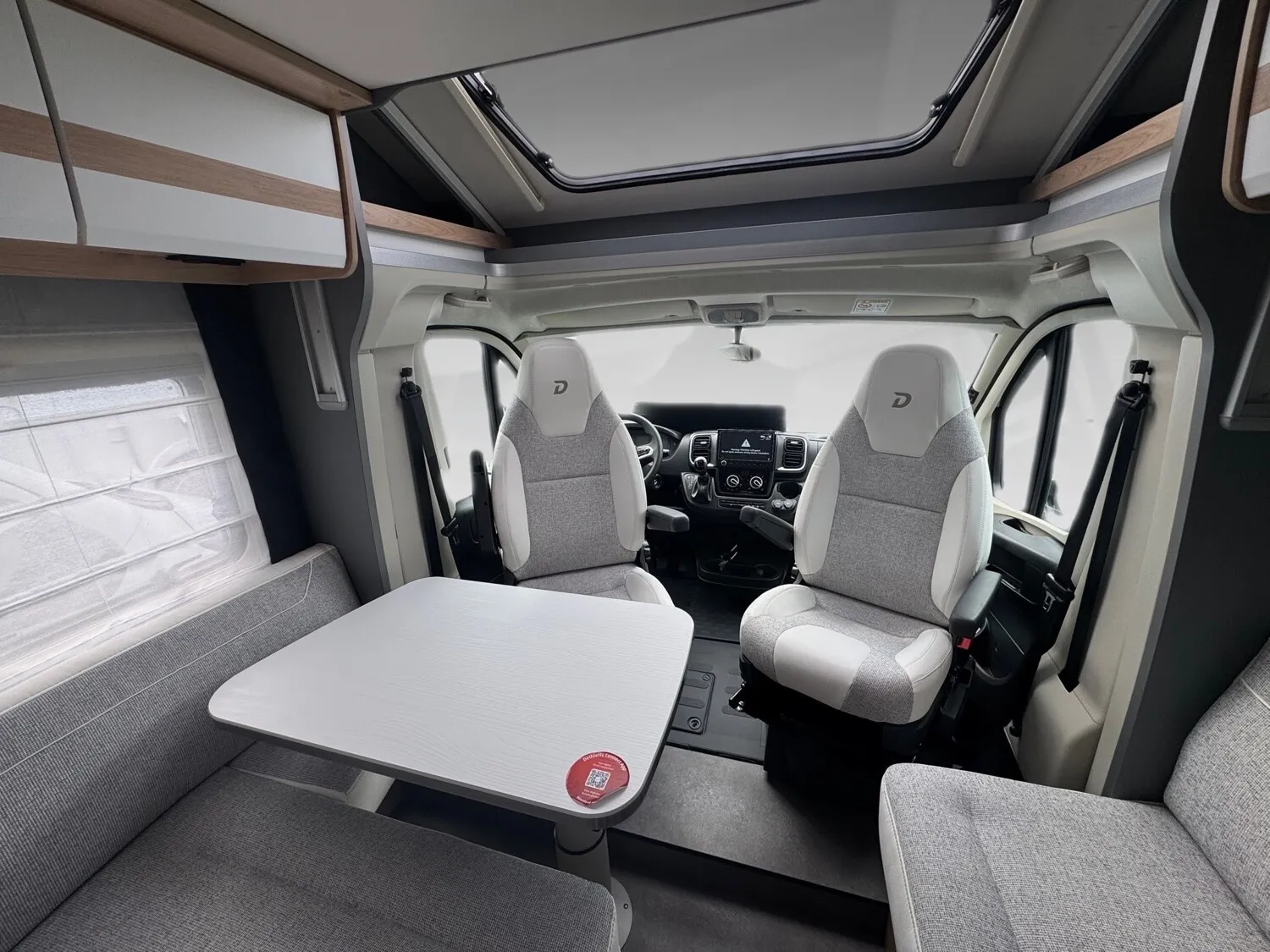 - Active-Paket T 6812 EB (Ausstellfenster in der T-Haube, Wohnraumtür mit Fenster inkl. Verdunkelung und Zentralverriegelung (inkl. Fahrerhaustür), Verdunklungsjalousien im Fahrerhaus, Panorama-Dachhaube 70 x 50 cm im Wohnraum, Light Moments: Indirekte Ambientebeleuchtung über den Dachstauschränken, Light Moments: Indirekte Wandflächen-Ambientebeleuchtung, Stauraum-Türe links, Doppelverglaste Rahmenfenster mit Verdunklung & Mückenschutz inkl. verkleidete Küchenrückwand, Textilleder-Wohnwelt Heron, Vorbereitung Solar, Light Moments: Küchenrückwand beleuchtet, Vorbereitung Dach-Klimaanlage, Digitales Bedienelement für Warmluftheizung, Dethleffs Naviceiver inkl. DAB+, Truck Navigation, Wireless Apple CarPlay und Android Auto, Rückfahrkamera (Einfachkamera), Vorbereitung SAT-Anlage, Active Außendesign (Heckleuchtenträger mit schwarzem Diffusor, erweiterte Beklebung, Skidplate "rot"), Bettumbau Einzelbetten zu Doppelbett, Gemütliche L-Sitzgruppe mit freistehendem, absenkbarem Tischfuß und 2 integrierte 3-Punkt-Gurte, Duschrost, Cassettenmarkise Omnistor 4.0 m (manuell))
