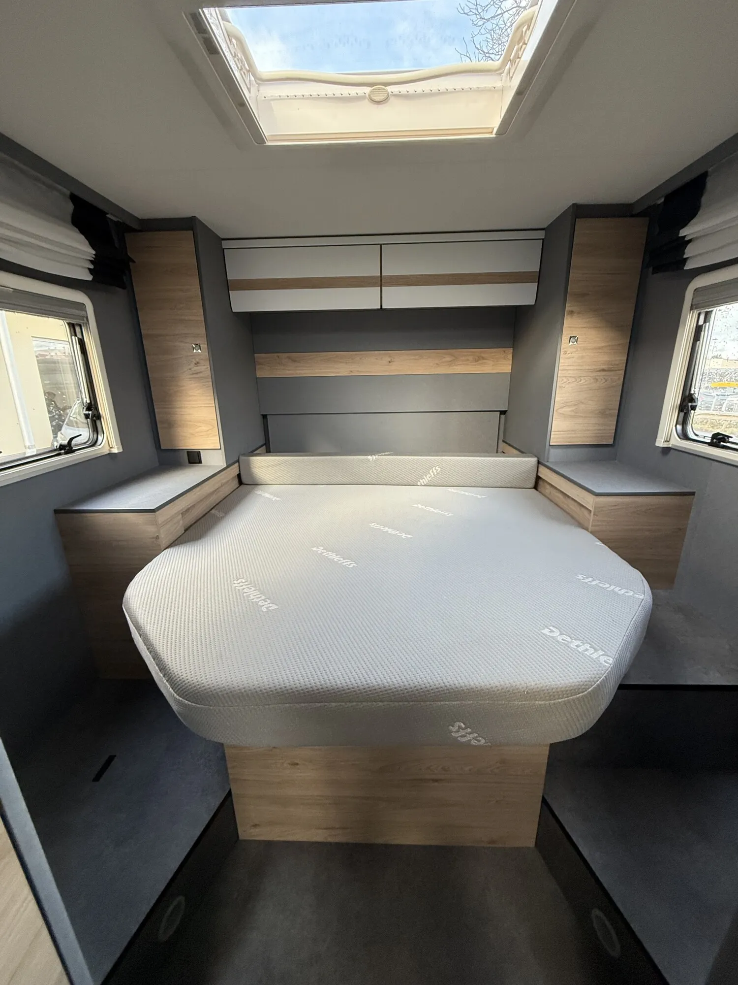 - Family-Paket T 7052 DBM (Ausstellfenster in der T-Haube, Wohnraumtür mit Fenster inkl. Verdunkelung und Zentralverriegelung (inkl. Fahrerhaustüre), Verdunklungsjalousien im Fahrerhaus, Panorama-Dachhaube 70 x 50 cm im Wohnraum, Light Moments: Indirekte Ambientebeleuchtung über den Dachstauschränken, Light Moments: Indirekte Wandflächen-Ambientebeleuchtung, Stauraum-Türe links, Gemütliche L-Sitzgruppe mit freistehendem, absenkbarem Tischfuß und 2 integrierte 3-Punkt-Gurte)