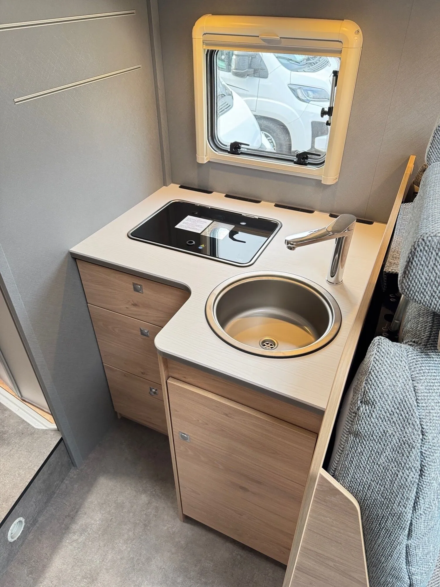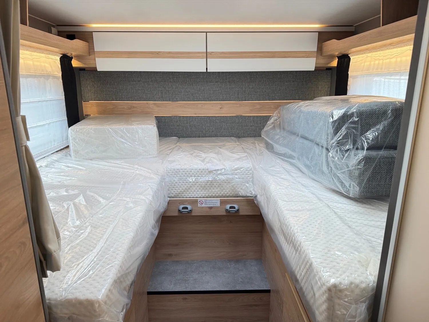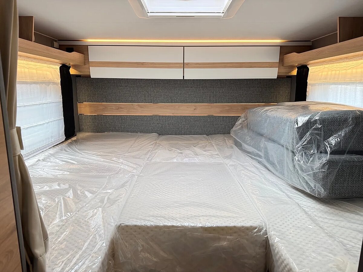 - Family-Paket T 6812, 7052 EB (Ausstellfenster in der T-Haube, Wohnraumtür mit Fenster inkl. Verdunkelung und Zentralverriegelung (inkl. Fahrerhaustüre), Verdunklungsjalousien im Fahrerhaus, Panorama-Dachhaube 70 x 50 cm im Wohnraum, Light Moments: Indirekte Ambientebeleuchtung über den Dachstauschränken, Light Moments: Indirekte Wandflächen-Ambientebeleuchtung, Bettumbau Einzelbetten zu Doppelbett, Gemütliche L-Sitzgruppe mit freistehendem, absenkbarem Tischfuß und 2 integrierte 3-Punkt-Gurte, Stauraum-Türe links)