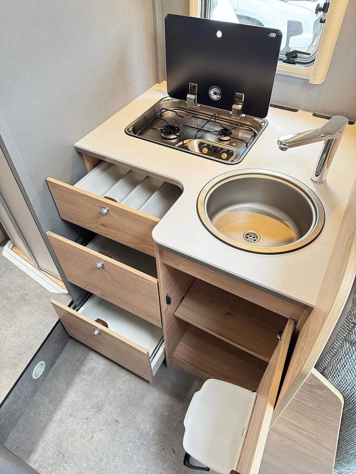 - Winterkomfort-Paket Warmluft Just Camp 7052 (Unterbodenleitungen isoliert, Abwassertank und -leitungen elektrisch beheizt, Abwassertank isoliert, Schalter für Wasserpumpe, Gas Warmluftheizung 6 kW mit 1,8 kW Elektroheizstab und Warmwasserboiler inkl. digitalem Bedienelement, XPS Aufbau-Isolierung)