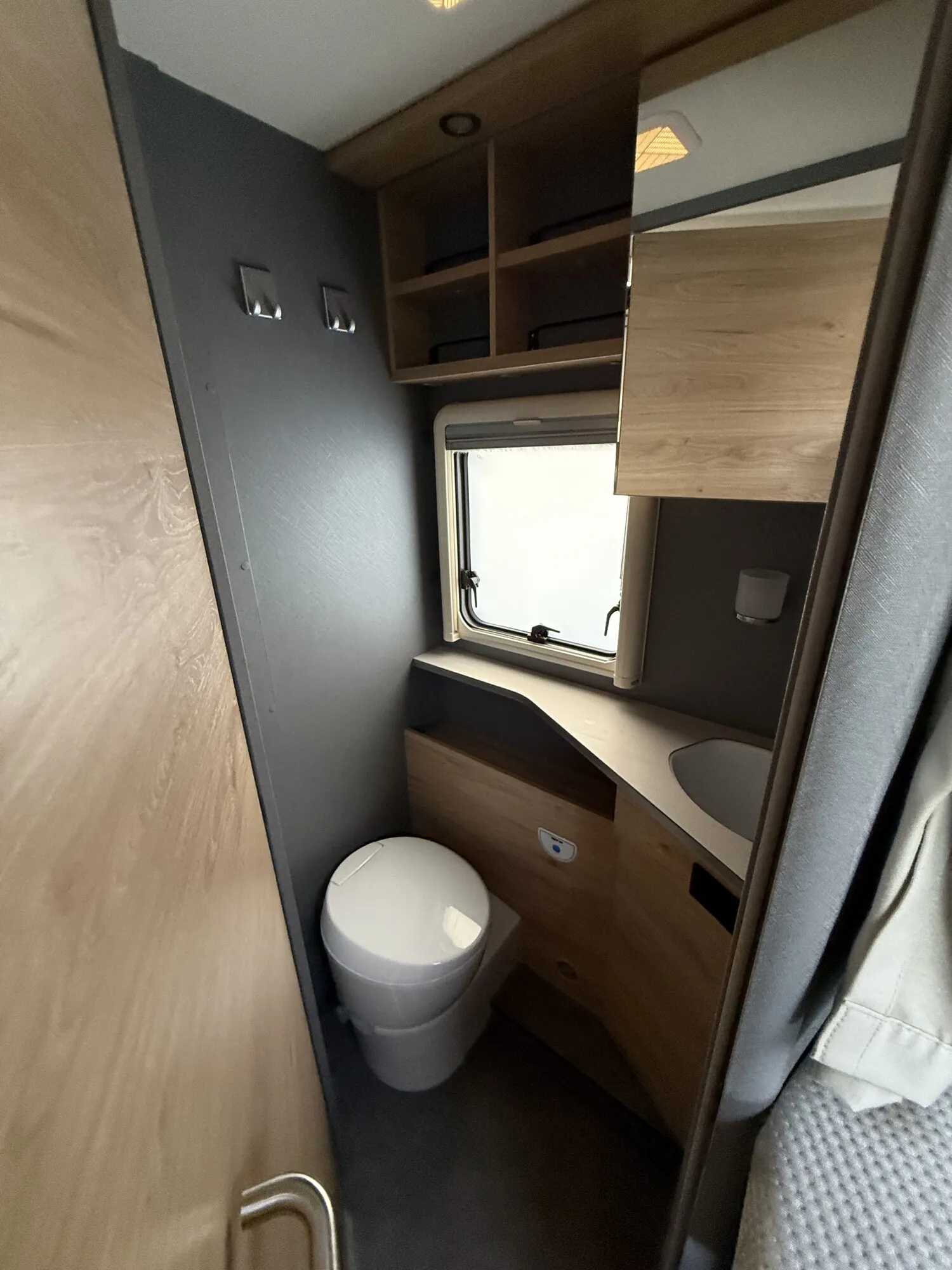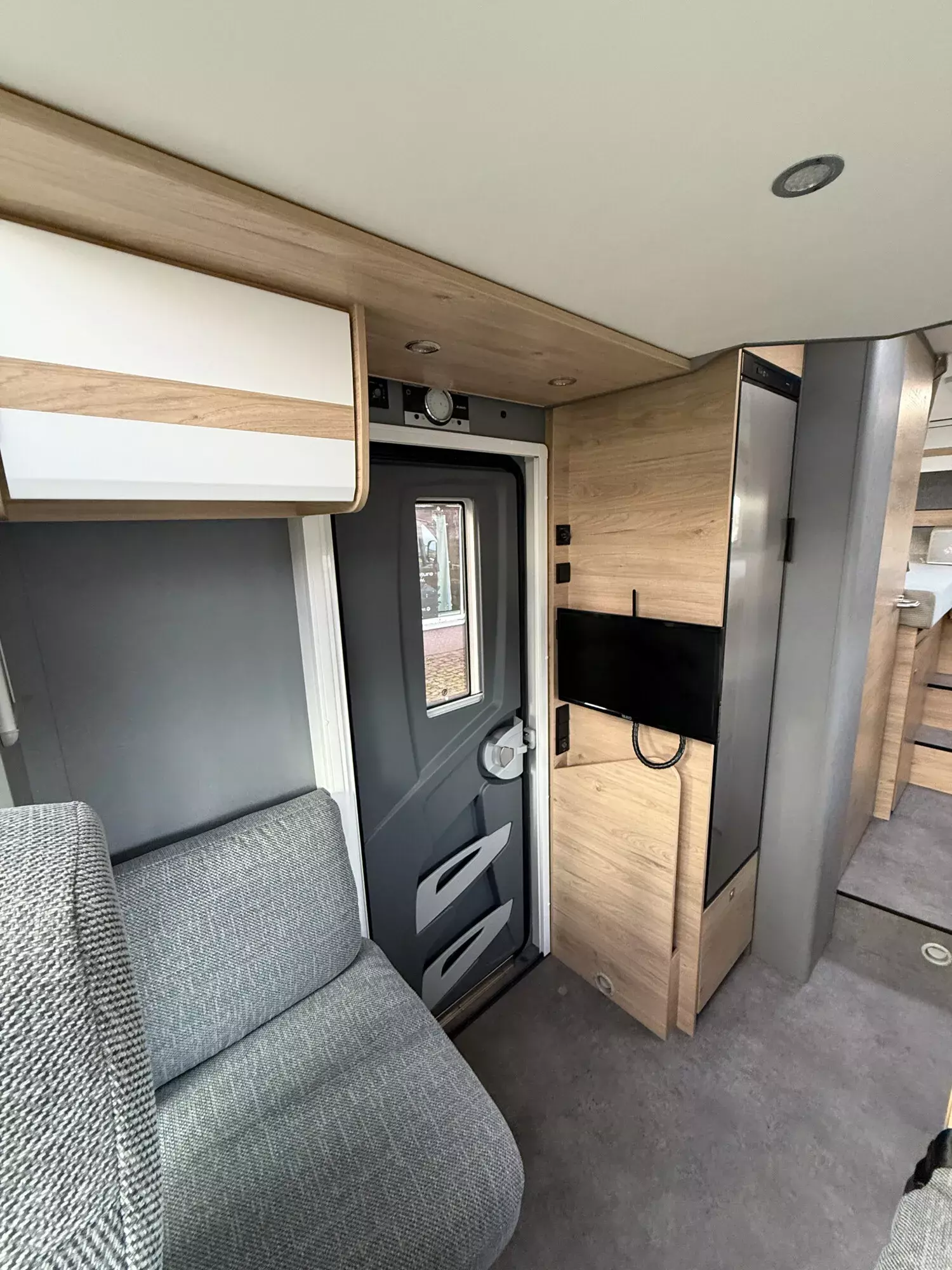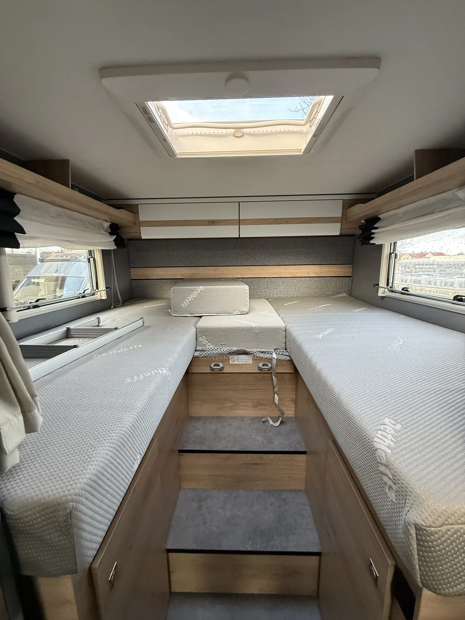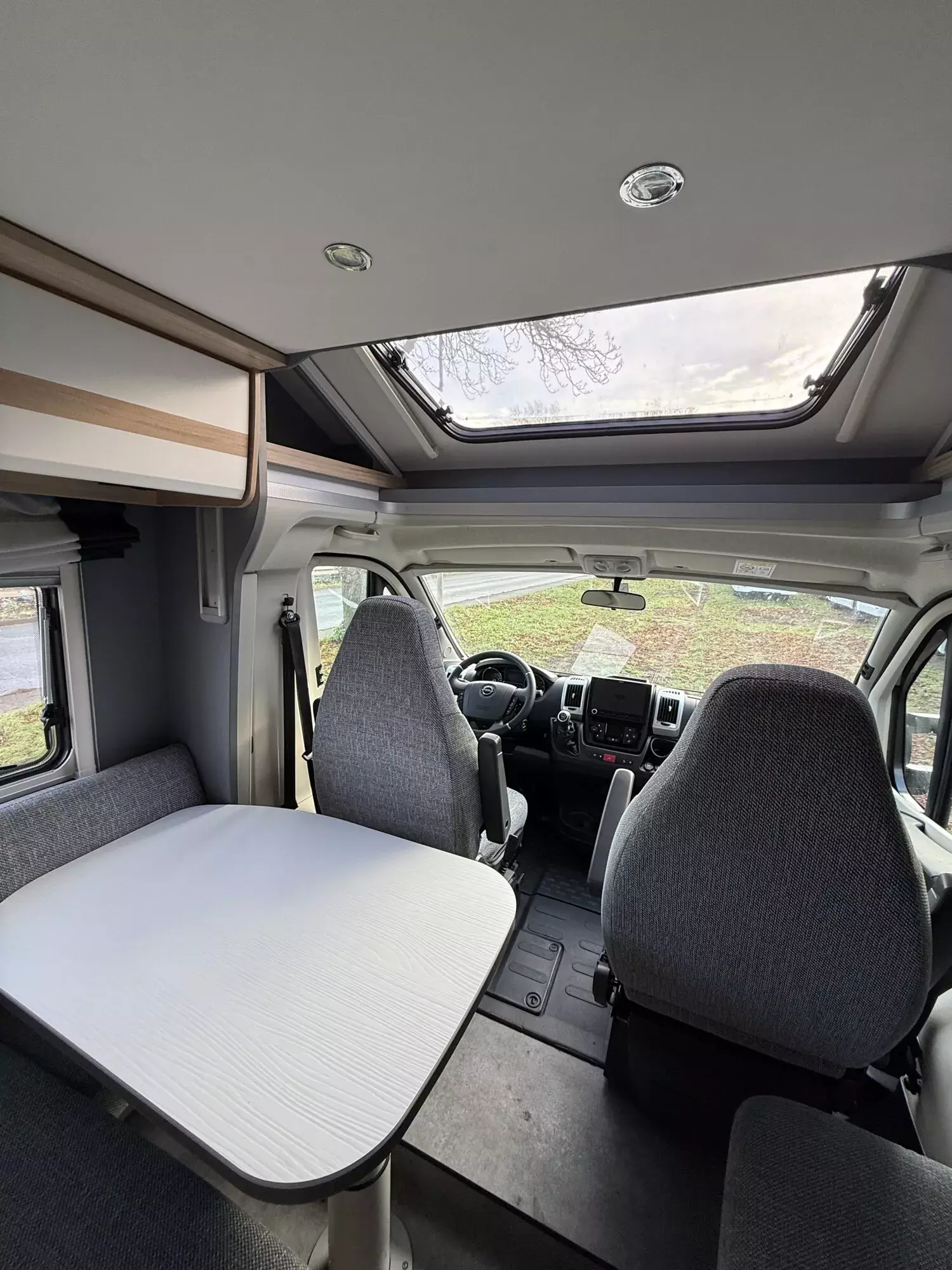 - Family-Paket T 7052 DBM (Ausstellfenster in der T-Haube, Wohnraumtür mit Fenster inkl. Verdunkelung und Zentralverriegelung (inkl. Fahrerhaustüre), Verdunklungsjalousien im Fahrerhaus, Panorama-Dachhaube 70 x 50 cm im Wohnraum, Light Moments: Indirekte Ambientebeleuchtung über den Dachstauschränken, Light Moments: Indirekte Wandflächen-Ambientebeleuchtung, Stauraum-Türe links, Gemütliche L-Sitzgruppe mit freistehendem, absenkbarem Tischfuß und 2 integrierte 3-Punkt-Gurte)