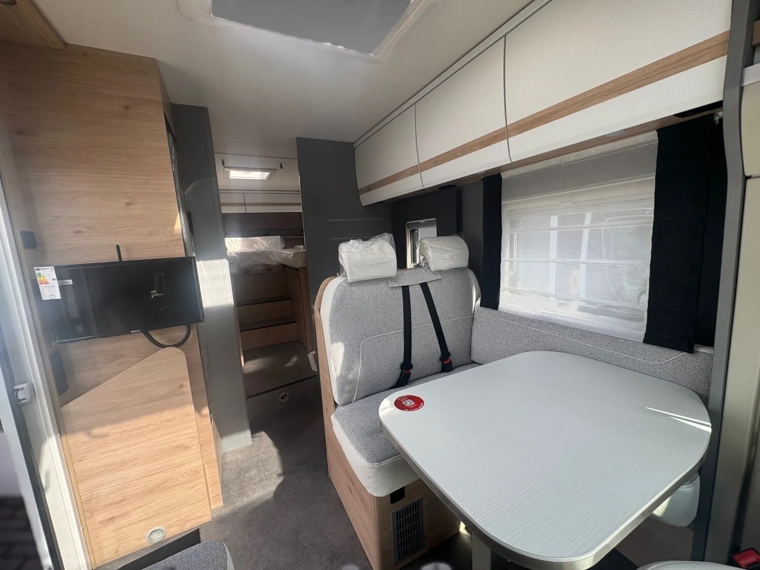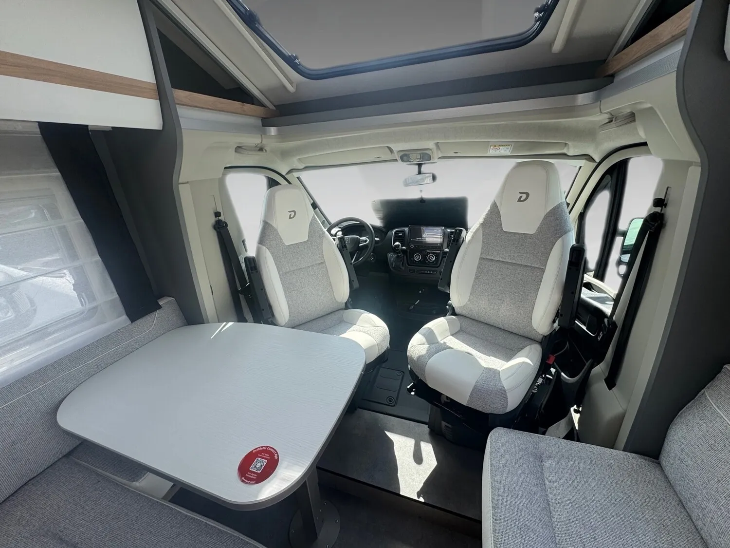 - Active-Paket T 7052 EB (Ausstellfenster in der T-Haube, Wohnraumtür mit Fenster inkl. Verdunkelung und Zentralverriegelung (inkl. Fahrerhaustür), Verdunklungsjalousien im Fahrerhaus, Panorama-Dachhaube 70 x 50 cm im Wohnraum, Light Moments: Indirekte Ambientebeleuchtung über den Dachstauschränken, Light Moments: Indirekte Wandflächen-Ambientebeleuchtung, Stauraum-Türe links, Doppelverglaste Rahmenfenster mit Verdunklung & Mückenschutz inkl. verkleidete Küchenrückwand, Textilleder-Wohnwelt Heron, Vorbereitung Solar, Light Moments: Küchenrückwand beleuchtet, Vorbereitung Dach-Klimaanlage, Digitales Bedienelement für Warmluftheizung, Dethleffs Naviceiver inkl. DAB+, Truck Navigation, Wireless Apple CarPlay und Android Auto, Rückfahrkamera (Einfachkamera), Vorbereitung SAT-Anlage, Active Außendesign (Heckleuchtenträger mit schwarzem Diffusor, erweiterte Beklebung, Skidplate "rot"), Bettumbau Einzelbetten zu Doppelbett, Gemütliche L-Sitzgruppe mit freistehendem, absenkbarem Tischfuß und 2 integrierte 3-Punkt-Gurte, Fenster im Badezimmer, Duschrost, Cassettenmarkise Omnistor 4,5 m (manuell))