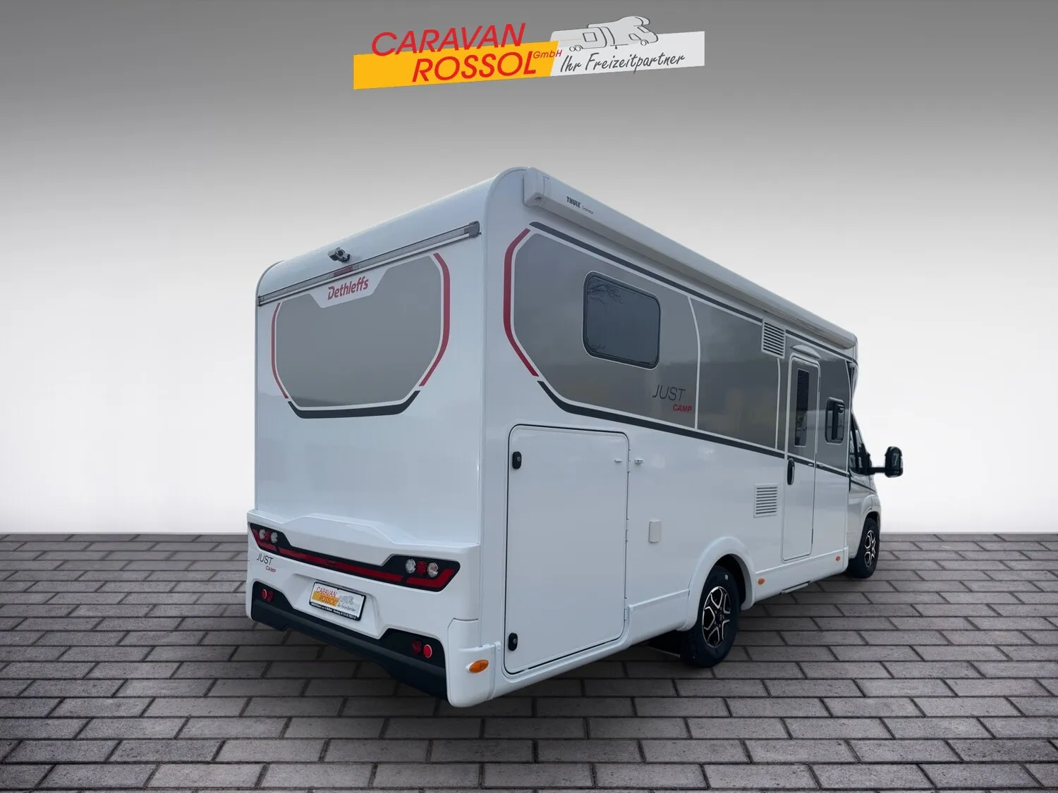 - Active-Paket T 7052 EBL (Ausstellfenster in der T-Haube, Wohnraumtür mit Fenster inkl. Verdunkelung und Zentralverriegelung (inkl. Fahrerhaustür), Verdunklungsjalousien im Fahrerhaus, Panorama-Dachhaube 70 x 50 cm im Wohnraum, Light Moments: Indirekte Ambientebeleuchtung über den Dachstauschränken, Light Moments: Indirekte Wandflächen-Ambientebeleuchtung, Stauraum-Türe links, Doppelverglaste Rahmenfenster mit Verdunklung & Mückenschutz inkl. verkleidete Küchenrückwand, Textilleder-Wohnwelt Heron, Vorbereitung Solar, Light Moments: Küchenrückwand beleuchtet, Vorbereitung Dach-Klimaanlage, Digitales Bedienelement für Warmluftheizung, Dethleffs Naviceiver inkl. DAB+, Truck Navigation, Wireless Apple CarPlay und Android Auto, Rückfahrkamera (Einfachkamera), Vorbereitung SAT-Anlage, Active Außendesign (Heckleuchtenträger mit schwarzem Diffusor, erweiterte Beklebung, Skidplate "rot"), Bettumbau Einzelbetten zu Doppelbett, Fenster im Badezimmer, Duschrost, Cassettenmarkise Omnistor 4,5 m (manuell))