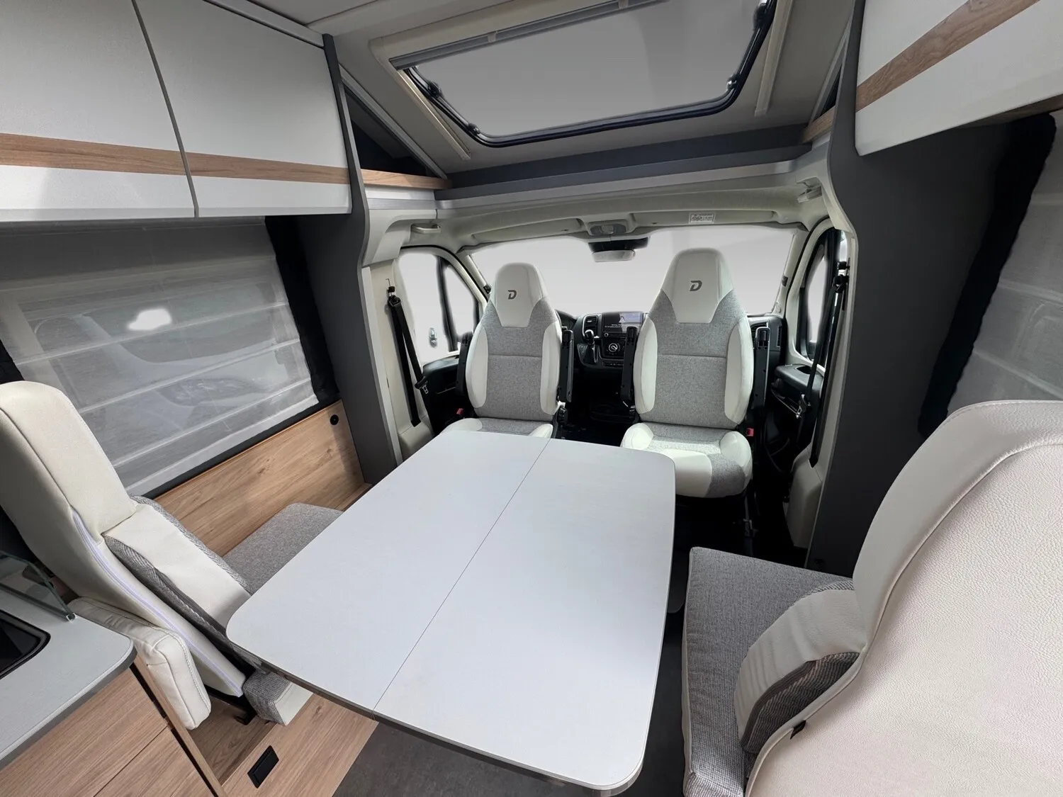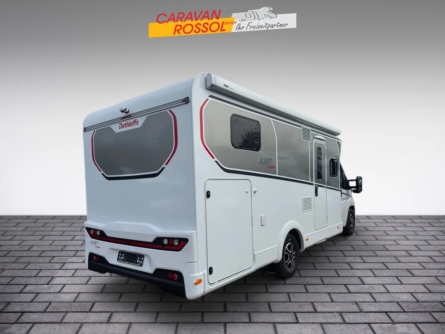 - Active-Paket T 7052 EBL (Ausstellfenster in der T-Haube, Wohnraumtür mit Fenster inkl. Verdunkelung und Zentralverriegelung (inkl. Fahrerhaustür), Verdunklungsjalousien im Fahrerhaus, Panorama-Dachhaube 70 x 50 cm im Wohnraum, Light Moments: Indirekte Ambientebeleuchtung über den Dachstauschränken, Light Moments: Indirekte Wandflächen-Ambientebeleuchtung, Stauraum-Türe links, Doppelverglaste Rahmenfenster mit Verdunklung & Mückenschutz inkl. verkleidete Küchenrückwand, Textilleder-Wohnwelt Heron, Vorbereitung Solar, Light Moments: Küchenrückwand beleuchtet, Vorbereitung Dach-Klimaanlage, Digitales Bedienelement für Warmluftheizung, Dethleffs Naviceiver inkl. DAB+, Truck Navigation, Wireless Apple CarPlay und Android Auto, Rückfahrkamera (Einfachkamera), Vorbereitung SAT-Anlage, Active Außendesign (Heckleuchtenträger mit schwarzem Diffusor, erweiterte Beklebung, Skidplate "rot"), Bettumbau Einzelbetten zu Doppelbett, Fenster im Badezimmer, Duschrost, Cassettenmarkise Omnistor 4,5 m (manuell))