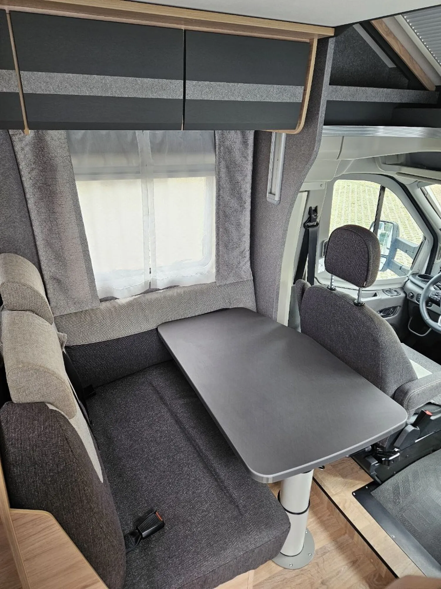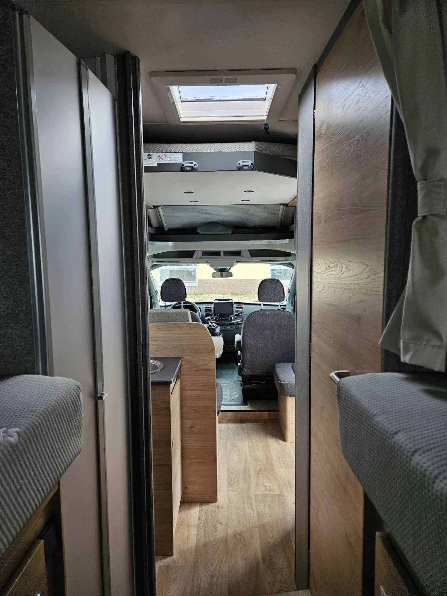 - Comfort Paket T 6815, 7055 EB (Klimaanlage inkl. Staub- und Pollenfilter, Handschuhfach mit Deckel, abschließbar, Innenraumpaket Trend-Line, Seitenschutzleisten in Wagenfarbe lackiert, Stoßfänger vorn in Wagenfarbe lackiert, Nebelscheinwerfer, Scheinwerfer mit statischem Abbiegelicht, Außenspiegel elektrisch einstellbar und beheizbar, Alufelge Ford 16 Zoll, schwarz, Frontscheibe, beheizbar, Scheibenwischer mit Regensensor, Notbrems-Assistent, aktiv (kamerabasiert), Fahrspur-Assistent mit Müdigkeitswarner, Fernlicht-Assistent und Fahrspurhalte-Assistent, Scheinwerfer-Assistent mit Tag/Nacht-Sensor, Wohnraumtür mit Fenster inkl. Verdunkelung und Zentralverriegelung (inkl. Fahrerhaustüre), Panorama-Dachhaube 70 x 50 cm im Wohnraum, Wohnwelt Salerno inkl. Fahrer- und Beifahrer-Sitzbezug, Light Moments: Indirekte Wandflächen-Ambientebeleuchtung, Light Moments: Indirekte Ambientebeleuchtung über den Dachstauschränken, Verdunklungsjalousien im Fahrerhaus, Ausstellfenster in der T-Haube, Gemütliche L-Sitzgruppe mit freistehendem, absenkbarem Tischfuß und 2 integrierte 3-Punkt-Gurte, Bettumbau Einzelbetten zu Doppelbett, Stauraum-Türe links)
