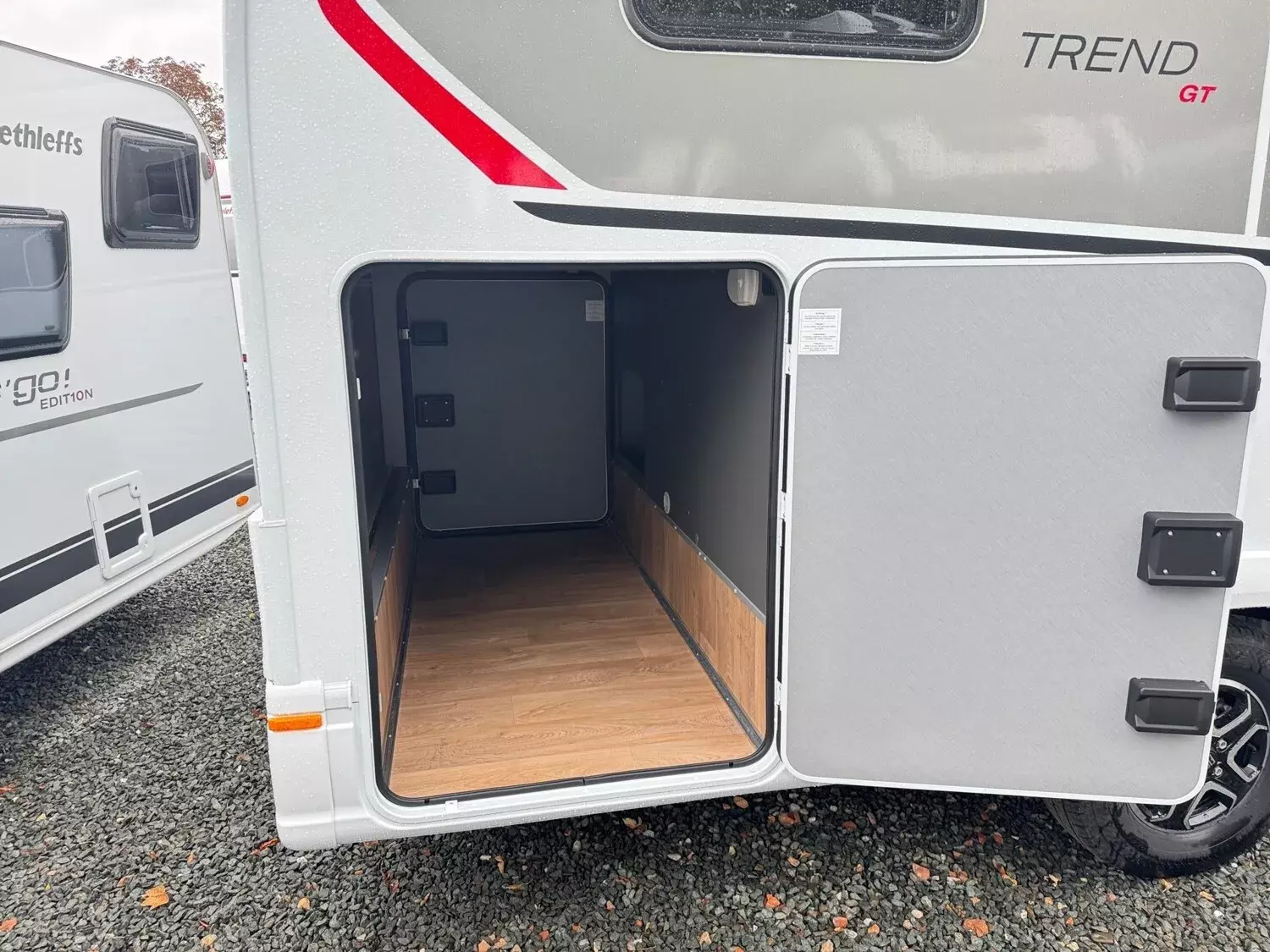 - GT Design-Paket (Doppelverglaste Rahmenfenster mit Verdunklung & Mückenschutz, Außendesign GT (Heckleuchtenträger mit schwarzem Diffusor, erweiterte Beklebung, Skidplate "rot"))