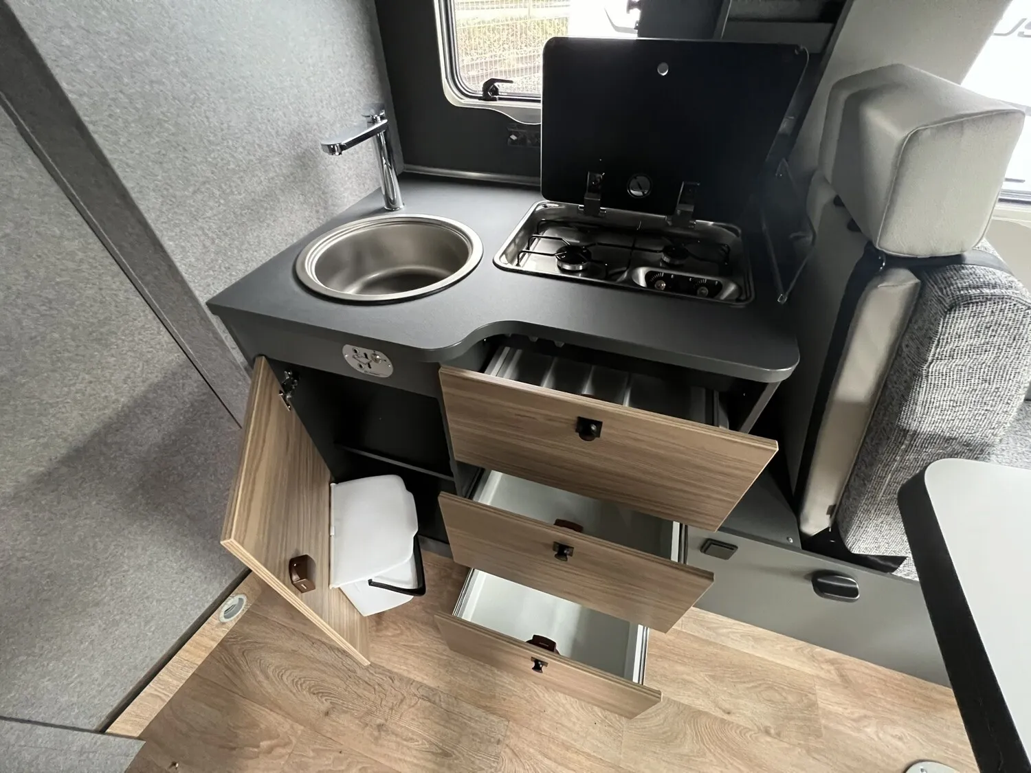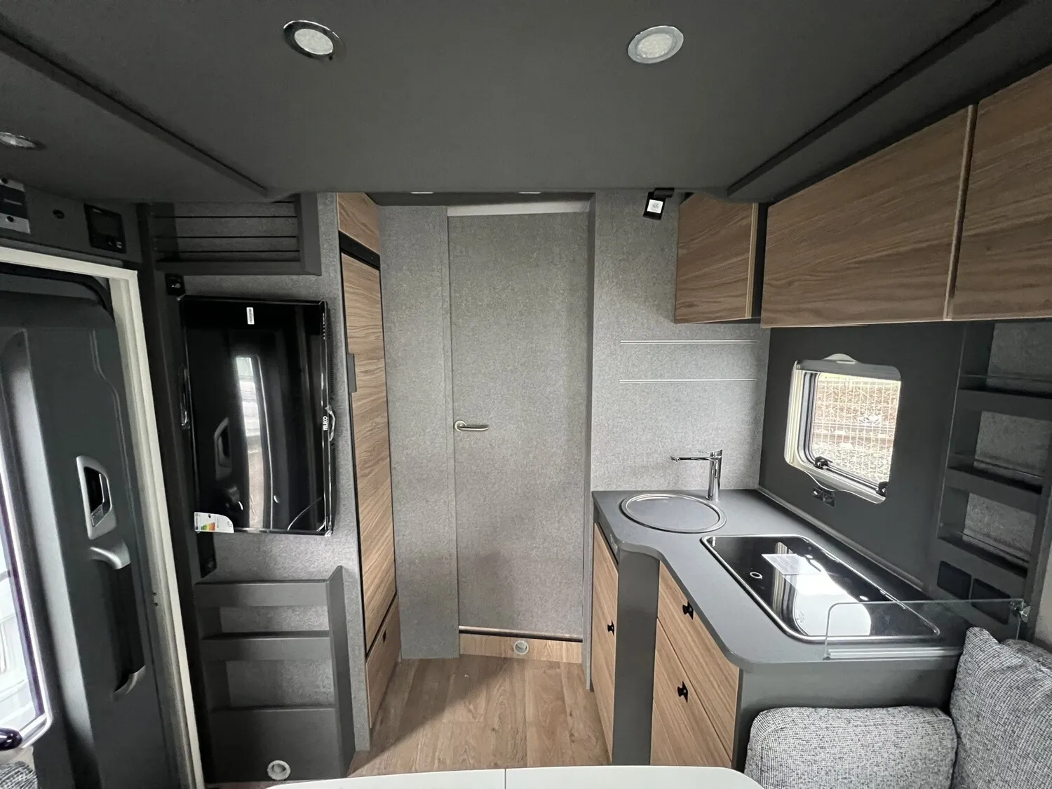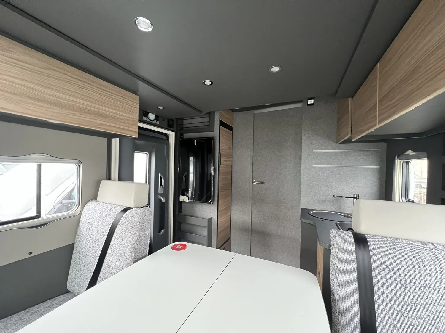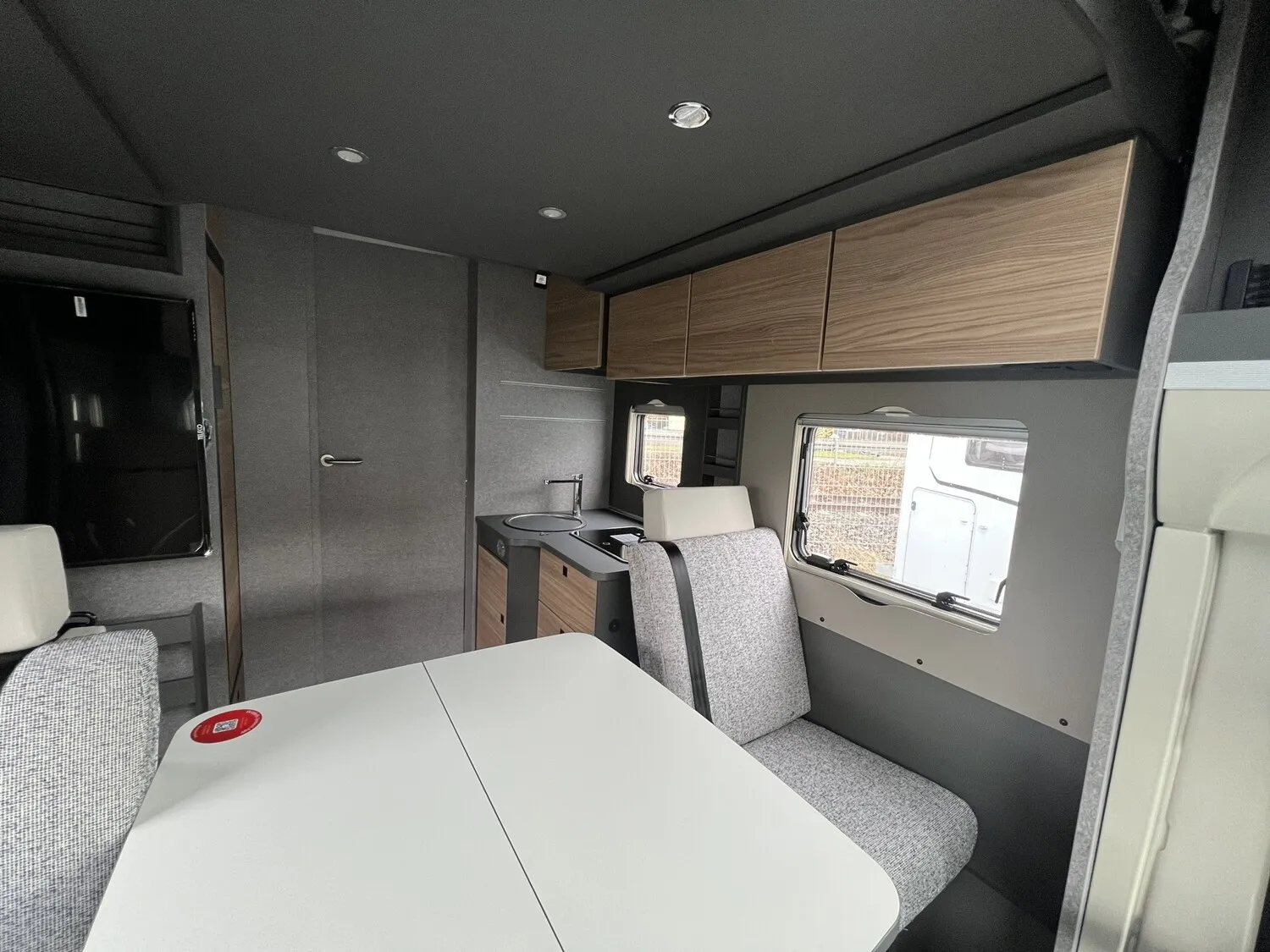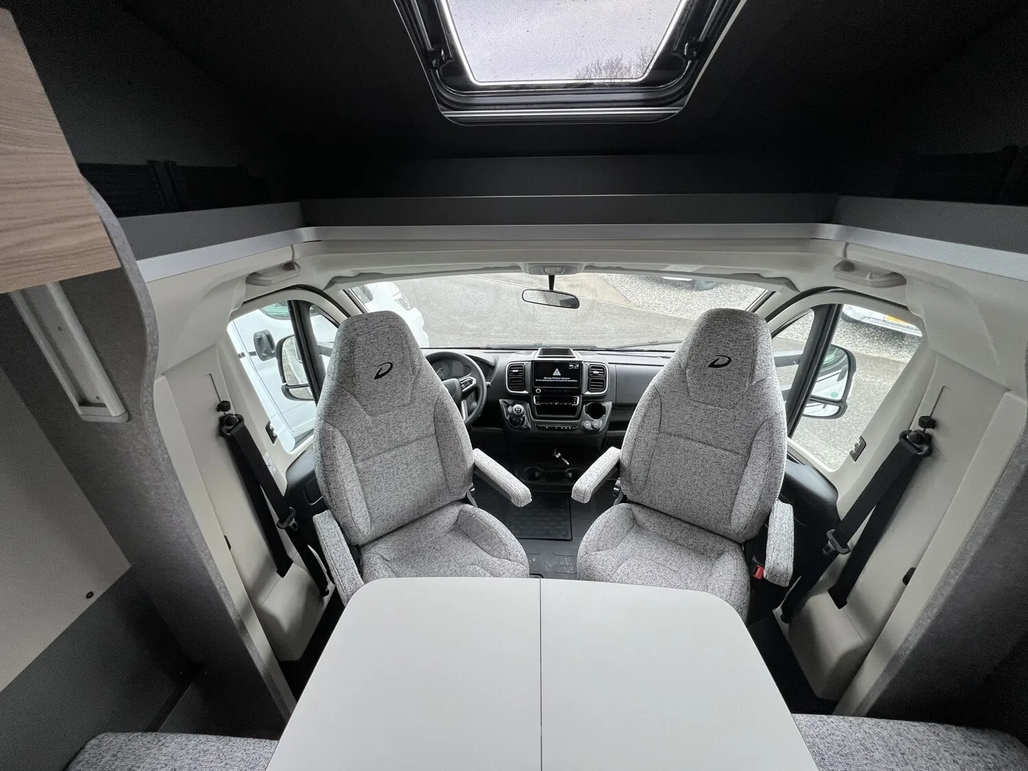 - Family-Paket T 7057 DBL (Wohnraumtür mit Fenster inkl. Verdunkelung und Zentralverriegelung (inkl. Fahrerhaustüre), Verdunklungsjalousien im Fahrerhaus, Vorbereitung für Radiosystem inkl. Soundpaket im Fahrerhaus, Light Moments: Indirekte Ambientebeleuchtung über den Dachstauschränken, Light Moments: Indirekte Wandflächen-Ambientebeleuchtung, Light Moments: Küchenrückwand beleuchtet, Light Moments: Indirekte Beleuchtung im Badezimmer mit beleuchteter Duschkonsole, Light Moments: Eingangsmodul mit indirekter Beleuchtung)
