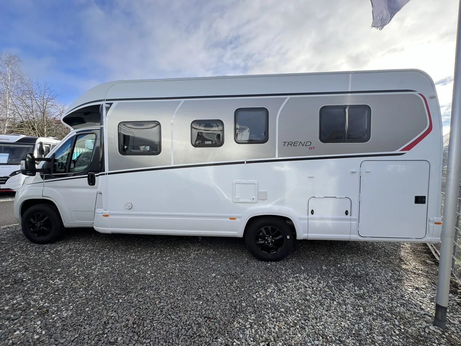 - GT Paket (Elektrische Feststellbremse, Armaturenbrett mit Aluminium Applikation, Fahrerhaus Klimaanlage automatisch, LED Tagfahrlicht, Lenkrad mit Bedienelementen, Dieseltank 90 Liter inkl. 19L AdBlue Tank, Scheinwerfer mit schwarzem Rahmen, Frontgrill schwarz glänzend mit Chromzierleisten, Skidplate schwarz glänzend, Alufelge Fiat 16 Zoll, Doppelverglaste Rahmenfenster mit Verdunklung & Mückenschutz, Außendesign GT (Heckleuchtenträger mit schwarzem Diffusor, erweiterte Beklebung, Skidplate "rot"))