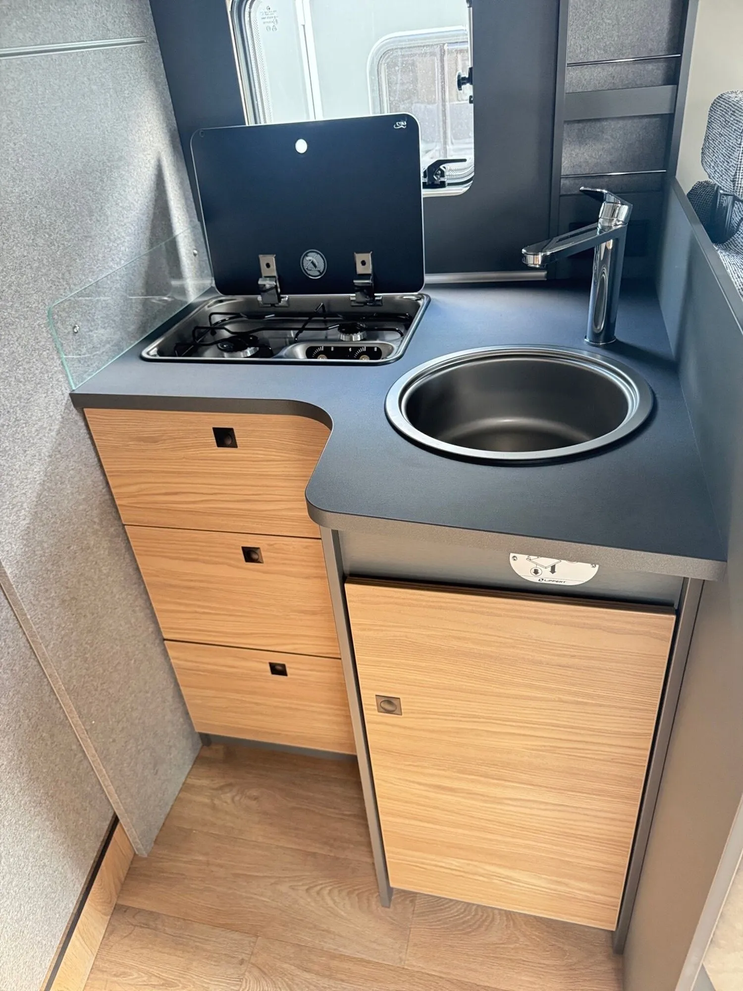 - Family-Paket T 6817, 7057 EB (Wohnraumtür mit Fenster inkl. Verdunkelung und Zentralverriegelung (inkl. Fahrerhaustür), Verdunklungsjalousien im Fahrerhaus, Light Moments: Indirekte Ambientebeleuchtung über den Dachstauschränken, Light Moments: Indirekte Wandflächen-Ambientebeleuchtung, Light Moments: Küchenrückwand beleuchtet, Light Moments: Indirekte Beleuchtung im Badezimmer mit beleuchteter Duschkonsole, Light Moments: Eingangsmodul mit indirekter Beleuchtung, Light Moments: Verkleidete Sitztruhenwange mit indirekter Beleuchtung, Gemütliche L-Sitzgruppe mit freistehendem, absenkbarem Tischfuß und 2 integrierte 3-Punkt-Gurte, Bettumbau Einzelbetten zu Doppelbett)