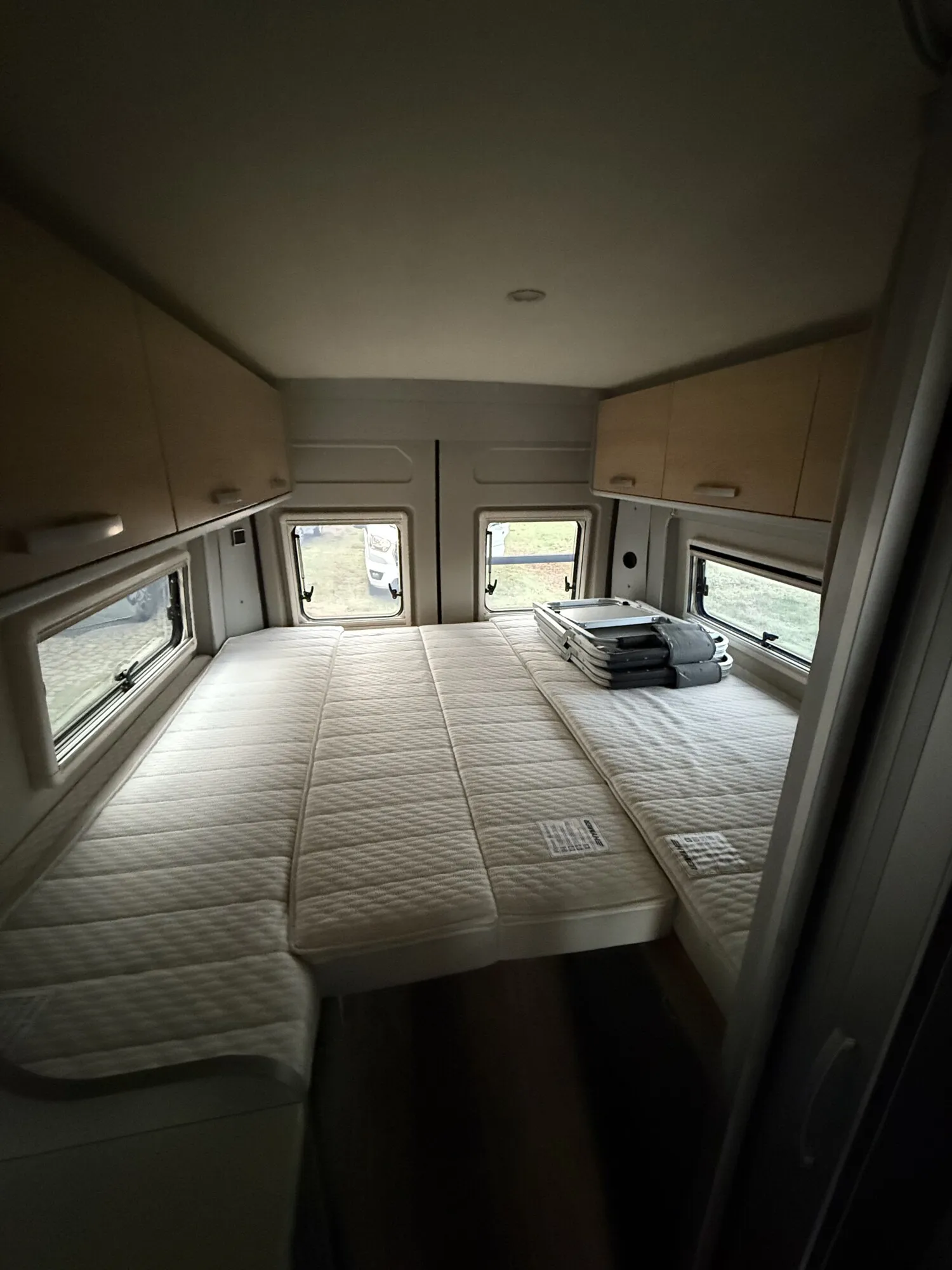 - Ausstellfenster im Heck in Fahrtrichtung links inkl. Verdunkelungsrollo und Mückenschutz