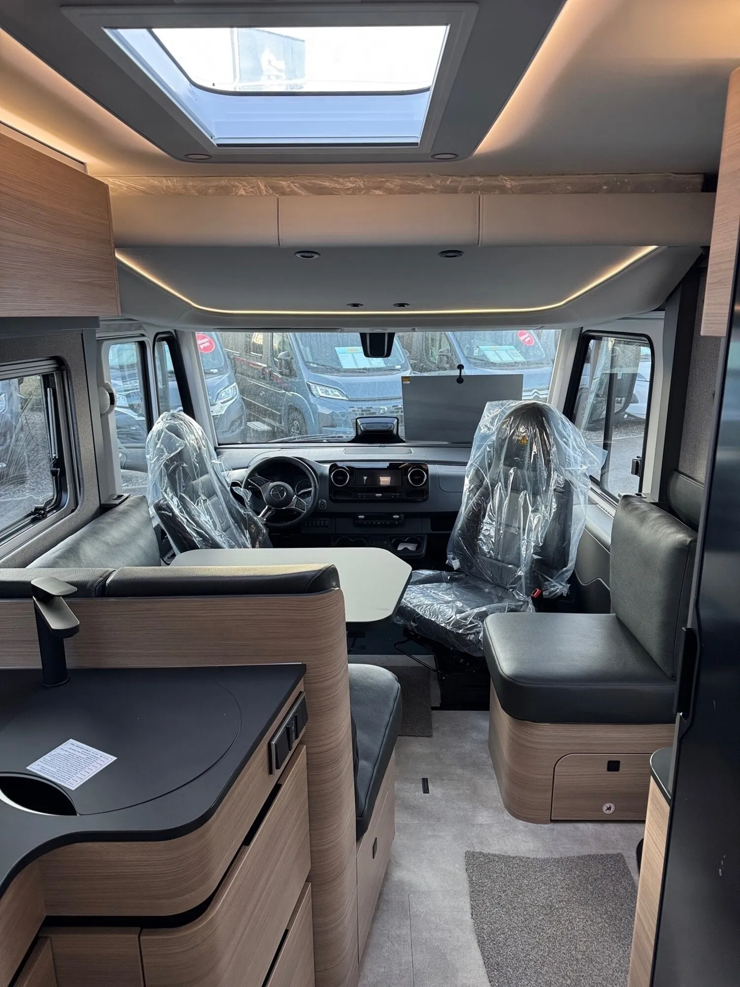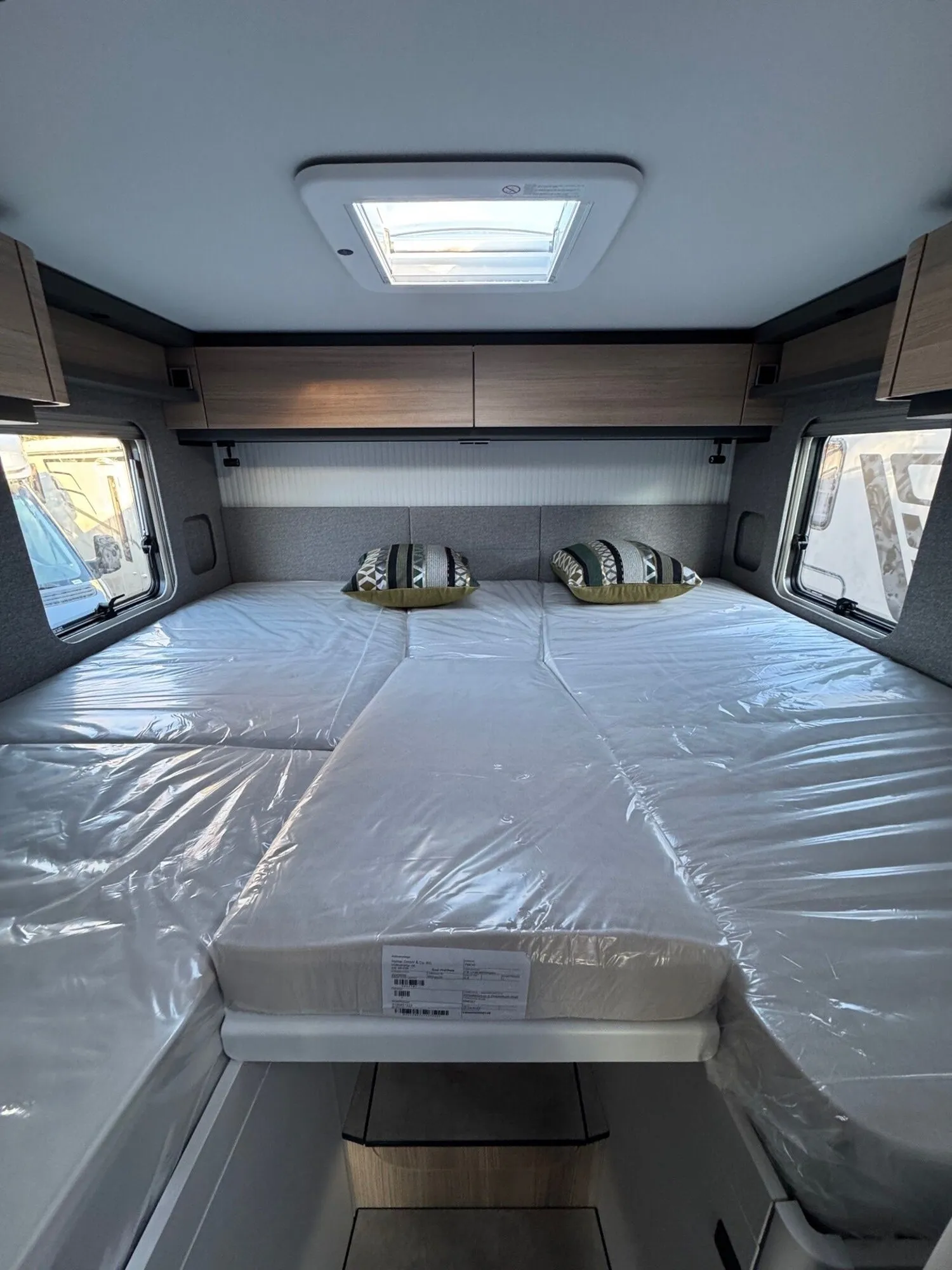 - Wohnkomfort-Paket (Filzverkleidung in Heckgarage, Spannbettlaken nach Maß für Heckbetten individuell an Matratzen angepasst, 2 Kissen mit Bezug, Ambient-Light-System: Mehr-Ebenen Lichtsystem mit dynamischer und individueller Steuerung der Beleuchtung (inkl. Lichttemperatur) sowie stimmungsvoller Sockelbeleuchtung, 4 x 230 V / 2 x Doppel-USB Zusatzsteckdosen)