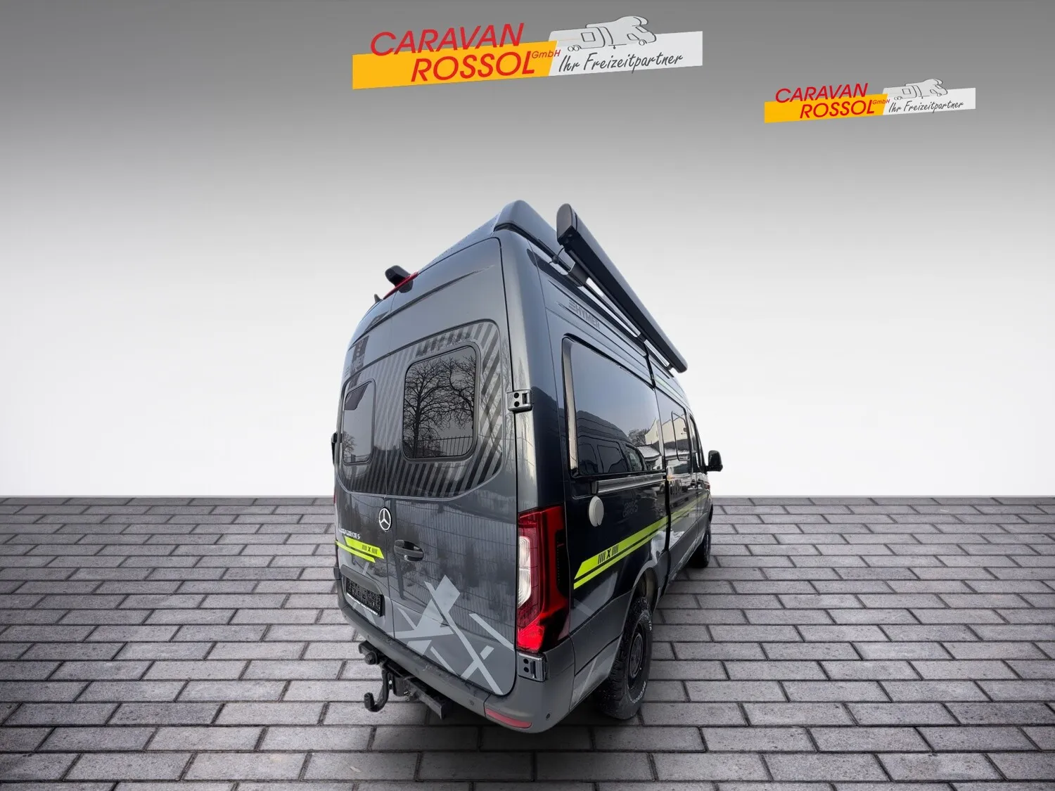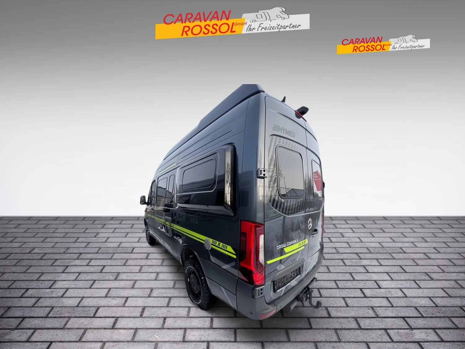 - Grand Canyon S Crossover - 2026 (Mercedes-Benz Sprinter 3,88 t - 419 CDI - 140 KW/190 PS -Euro VI-E, Allradantrieb permanent inkl. Heckleuchten in LED-Technik, Metallic Tenoritgrau, Automatikgetriebe 9G-TRONIC inkl. Hold-Funktion (x19 CDI), Kühlergrill Chrom, LED-High-Performance-Scheinwerfer, Nebelscheinwerfer mit Abbiegelicht, Stoßfänger und Kühlergrillrahmen in Wagenfarbe lackiert, 16" Stahlfelgen (schwarz) mit Stollenbereifung (All-Terrain), Elektrische Schließhilfe Schiebetür rechts, Ablage für Smartphones inkl. wireless charging Funktion und Ladestandsanzeige, Ladepaket Instrumententafel mit 2 x USB-C Stecker 5V / 1x12V-Steckdose, Vollautomatische Klimaanlage THERMOTRONIC, Lederlenkrad (bei Automatikgetriebe), Windschutzscheibe beheizbar, Navigation & Smartphone-Integration für MBUX-System, Park-Paket mit 360° Kamera, Aktiver Abstands-Assistent DISTRONIC PLUS inkl. Lenkrad-Multifunktionstasten, Fernlicht-Assistent, Totwinkel-Assistent, Verkehrszeichen-Assistent, Elektrische Offroad-Trittstufe (einklappbar) für mehr Bodenfreiheit, Markise (anthrazit) mit dimmbarer LED-Beleuchtung und Adapter, 325 x 250 cm, Motor-/Unterfahrschutz, 44" LED-Lightbar über dem Fahrerhaus, Designbeklebung Crossover, Ambient-Light-System: Mehr-Ebenen Lichtsystem mit dynamischer und individueller Steuerung der Beleuchtung (inkl. Lichttemperatur) sowie stimmungsvoller Sockelbeleuchtung, Spannbettlaken nach Maß für Heckbetten individuell an Matratzen angepasst, Wohnwelt "HOME" (2 Kissen und Stofftasche), Einlegeboden mit Korkoberfläche, Zweite Toilettenkassette inkl. Halterung, 2 Klappstühle und Tisch inkl. Befestigung, Werkzeug-Set (Klappspaten, Axt) im Heckstauraum, 6 kW Diesel-Warmluftheizung mit 10l Warmwasserboiler, Lutdrucksensor (Höhenkit) und 1.800 Watt Elektroheizstab, HYMER-Smart-Battery-System 2.0 - Zusätzlich 3 x 80 Ah LFP (Gesamtleistung 320 Ah), Solaranlage 1 x 95 Watt mit Solarladeregler (MPPT) und Anzeige, Wasserfilter für Frischwassersystem)