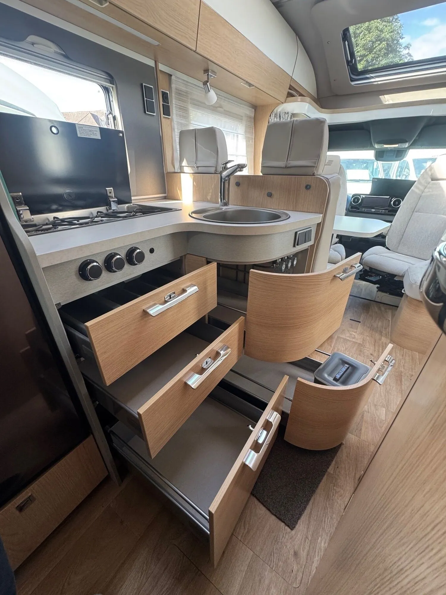 - Arktis-Paket (Wärmetauscher für Gas-Warmwasserheizung, Wärmetauscher-Vorbereitung Mercedes-Benz, Gas-Warmwasser-Garagenbodenheizung, Riffelblechboden und Filzverkleidung in Heckgarage, Isolier-Trennvorhang für Fahrerhaus, doppellagig genäht, Isoliermatte für Fahrerhaus-Fußraum, lose beigelegt, Zuheizer (unterstützt die Heizung beim Erwärmen des Fahrzeugs), Gas-Warmwasserheizung)