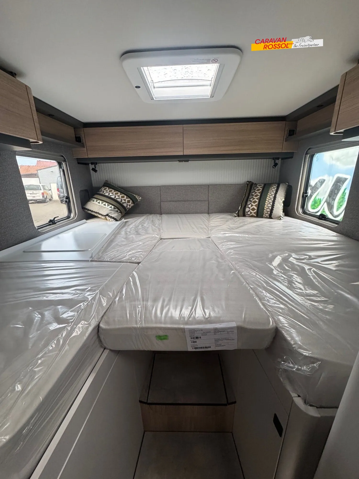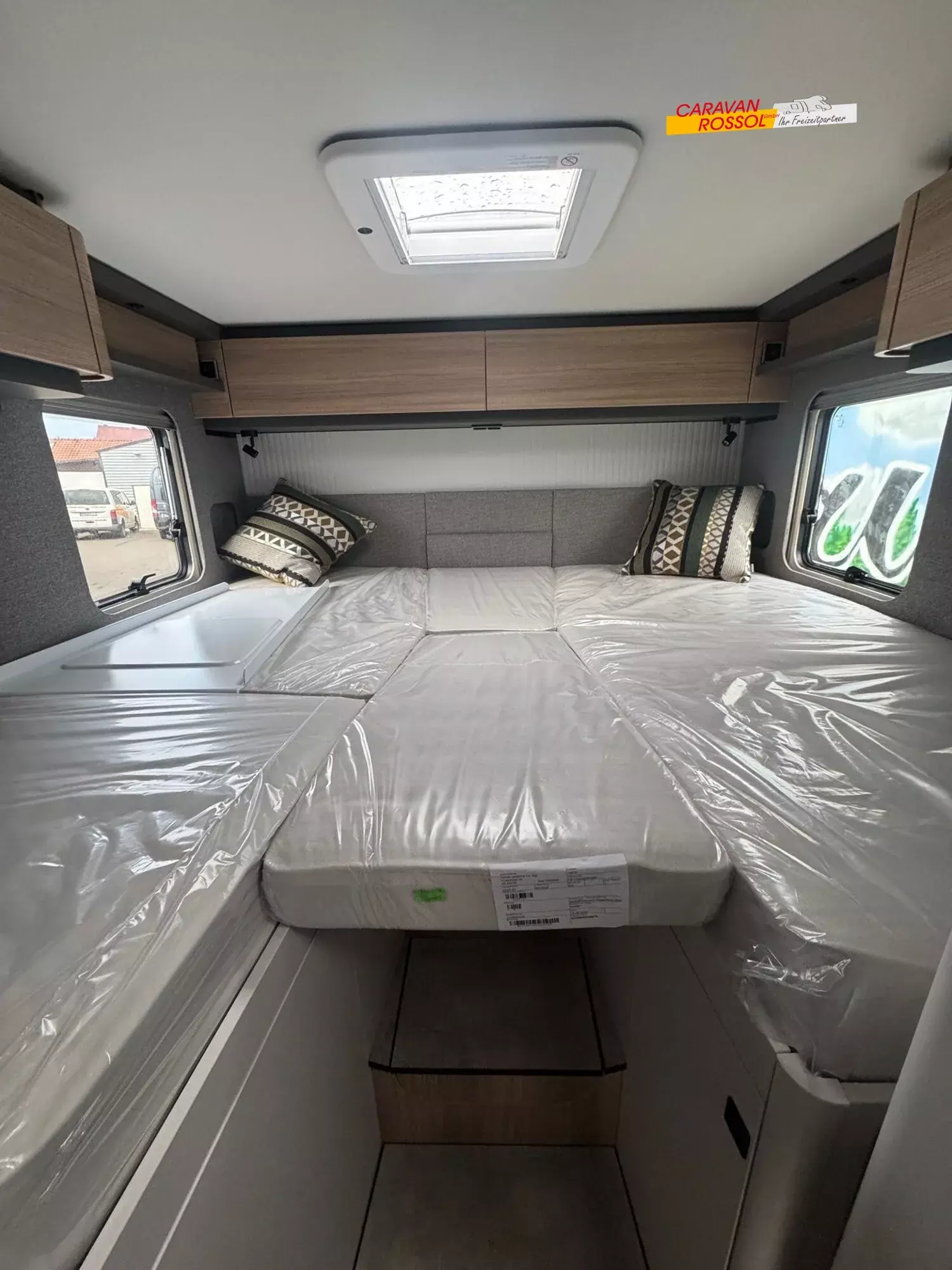 - Wohnkomfort-Paket (Filzverkleidung in Heckgarage, Spannbettlaken nach Maß für Heckbetten individuell an Matratzen angepasst, 2 Kissen mit Bezug, Ambient-Light-System: Mehr-Ebenen Lichtsystem mit dynamischer und individueller Steuerung der Beleuchtung (inkl. Lichttemperatur) sowie stimmungsvoller Sockelbeleuchtung, 4 x 230 V / 2 x Doppel-USB Zusatzsteckdosen)