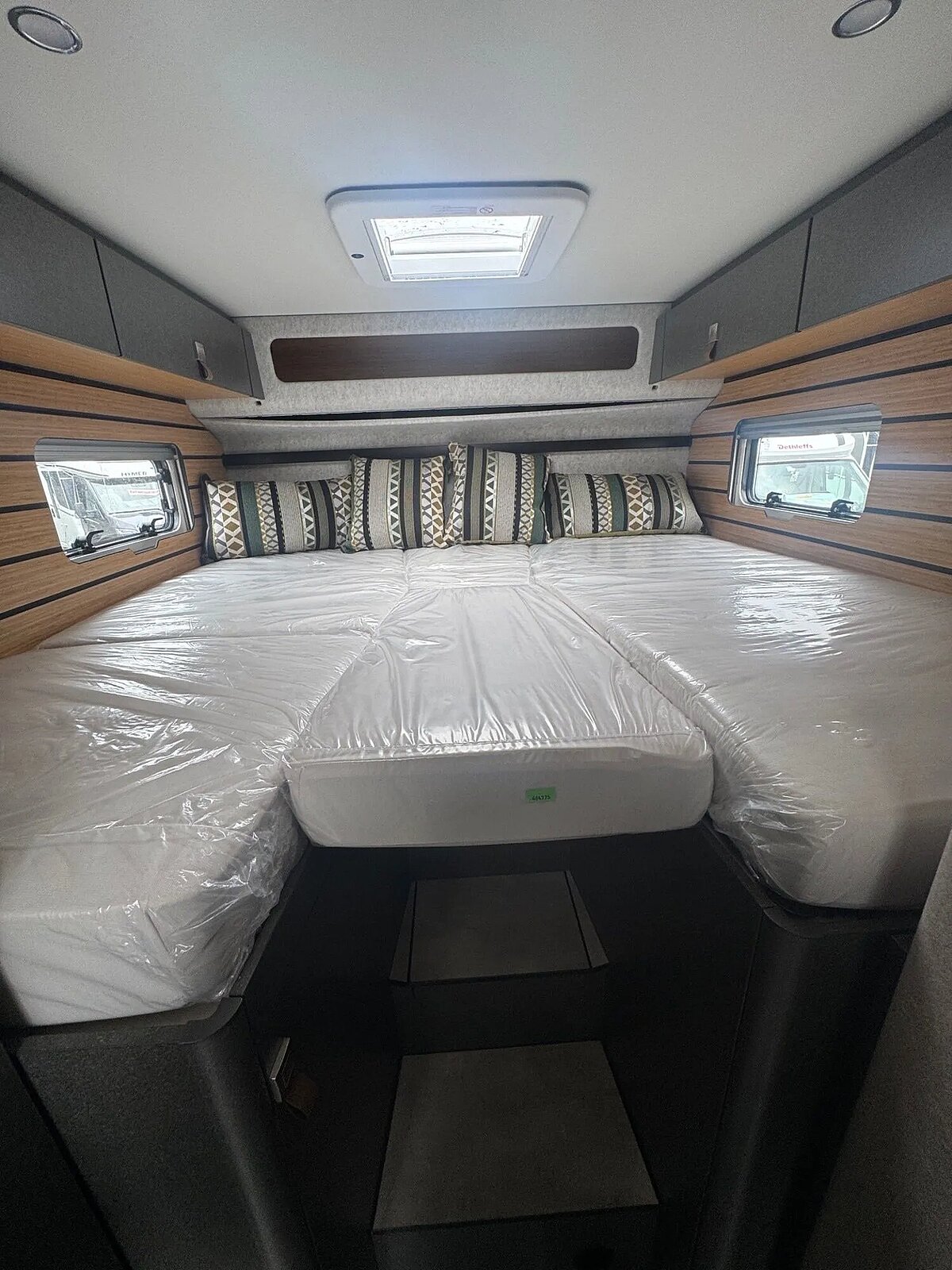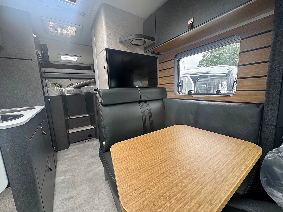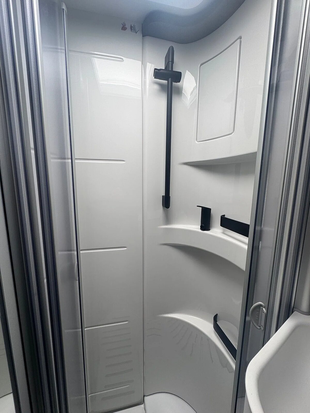 - Wohnkomfort-Paket 4 (Schlafsystem mit Tellerfederrost für Heckbett(en), Spannbettlaken nach Maß für Heckbetten individuell an Matratzenkonturen angepasst, Filzverkleidung in Heckgarage, Einlegeboden in der Dusche für ebenen Laufboden, 4 Kissen mit Bezug, Ambient-Light-System: Mehr-Ebenen Lichtsystem mit dynamischer und individueller Steuerung der Beleuchtung (inkl. Lichttemperatur) sowie stimmungsvoller Sockelbeleuchtung, Lichtpaket (Multifunktionale Pendelleuchte sowie eine Ambiente-Leseleuchte für die Multifunktionswände), 4 x 230 V / 1 x 12 V Zusatzsteckdosen)