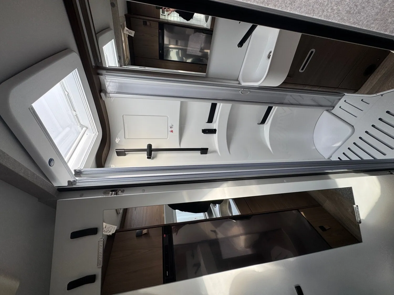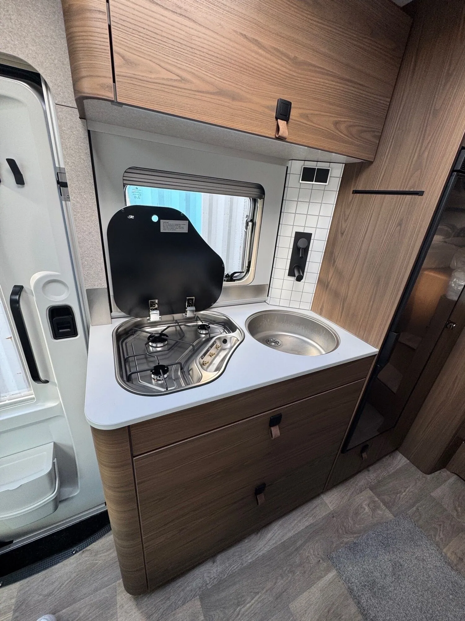 - Komfort-Eingangstür mit Fenster, Verdunkelungsrollo, integriertem Mülleimer und 2-fach Verriegelung