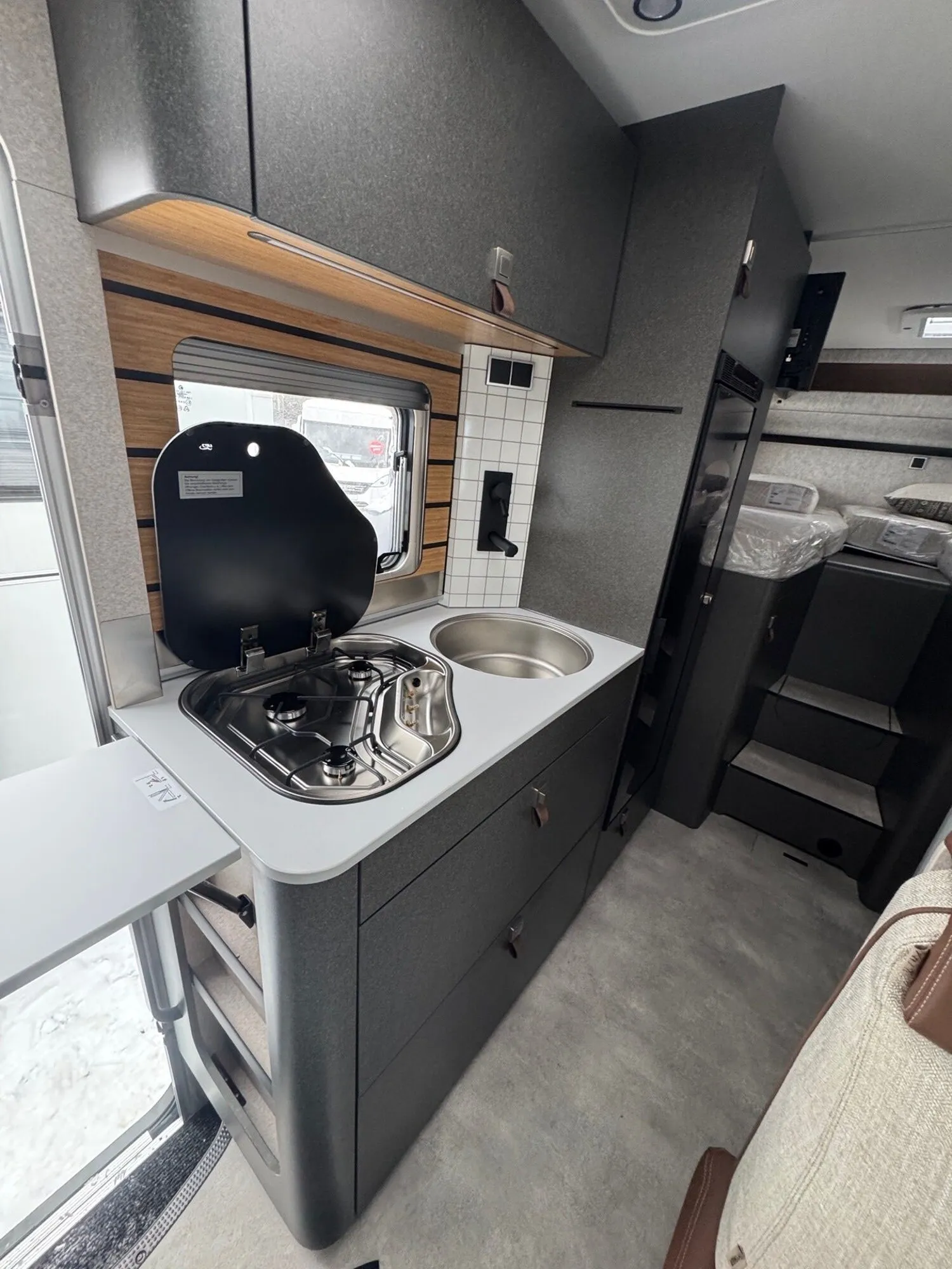 - Komfort-Eingangstür mit Fenster, Verdunkelungsrollo, integriertem Mülleimer und 2-fach Verriegelung