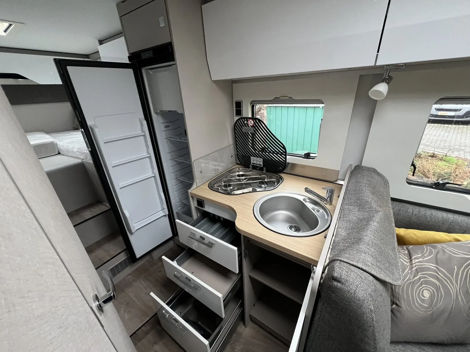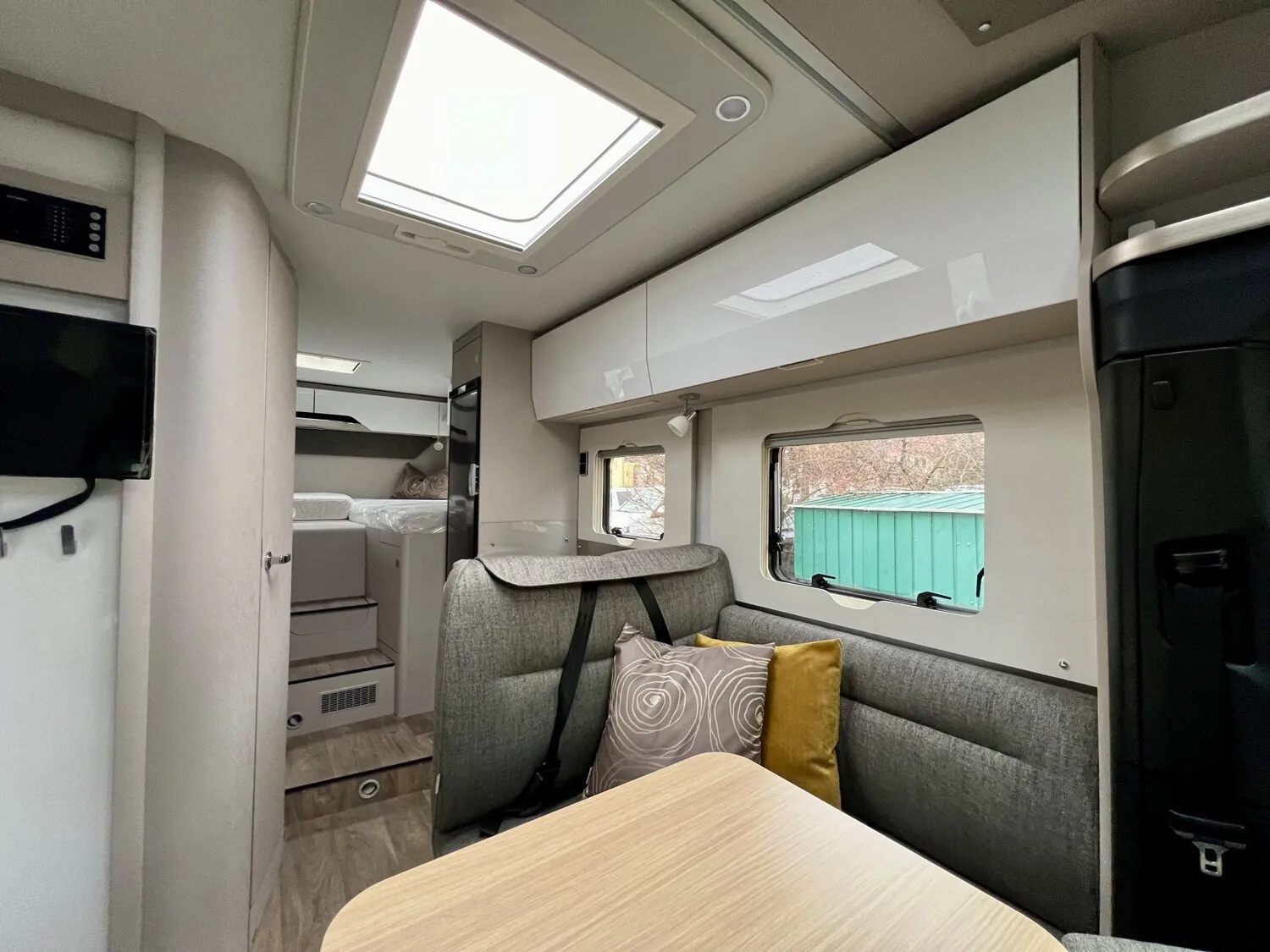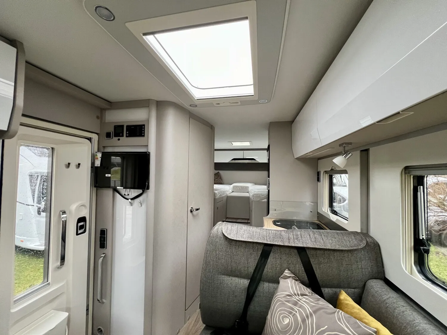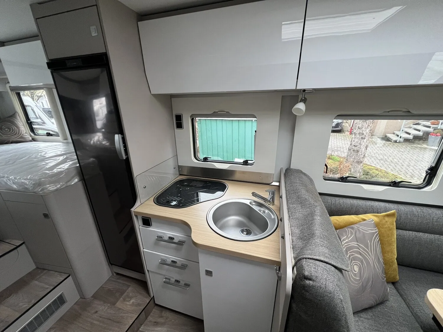 - Wohnkomfort-Paket Tramp S 585, 680 ,685 (4 x 230 V / 1 x 12 V / 1 x Doppel-USB Zusatzsteckdosen, 4 Kissen mit Bezug, Ambiente-Beleuchtung, Spannbettlaken nach Maß für Heckbetten individuell an Matratzenkonturen angepasst, Garagenklappe in Fahrtrichtung links, 75 x 85 cm)