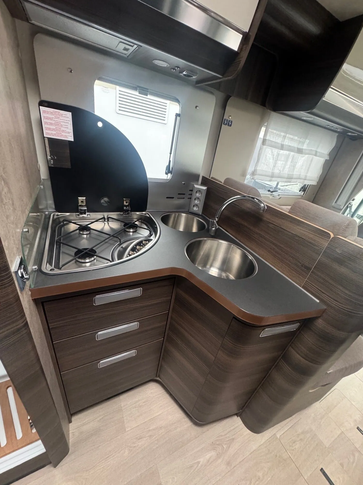 - Komfort Paket Ecovip L (Fahrerhausteppich, Fenster im Bad, Verdunklungsplissee Fahrerhaus (für Front- und Seitenscheiben), Holzeinlage für Duschwanne, Vorbereitung Rückfahrkamera)