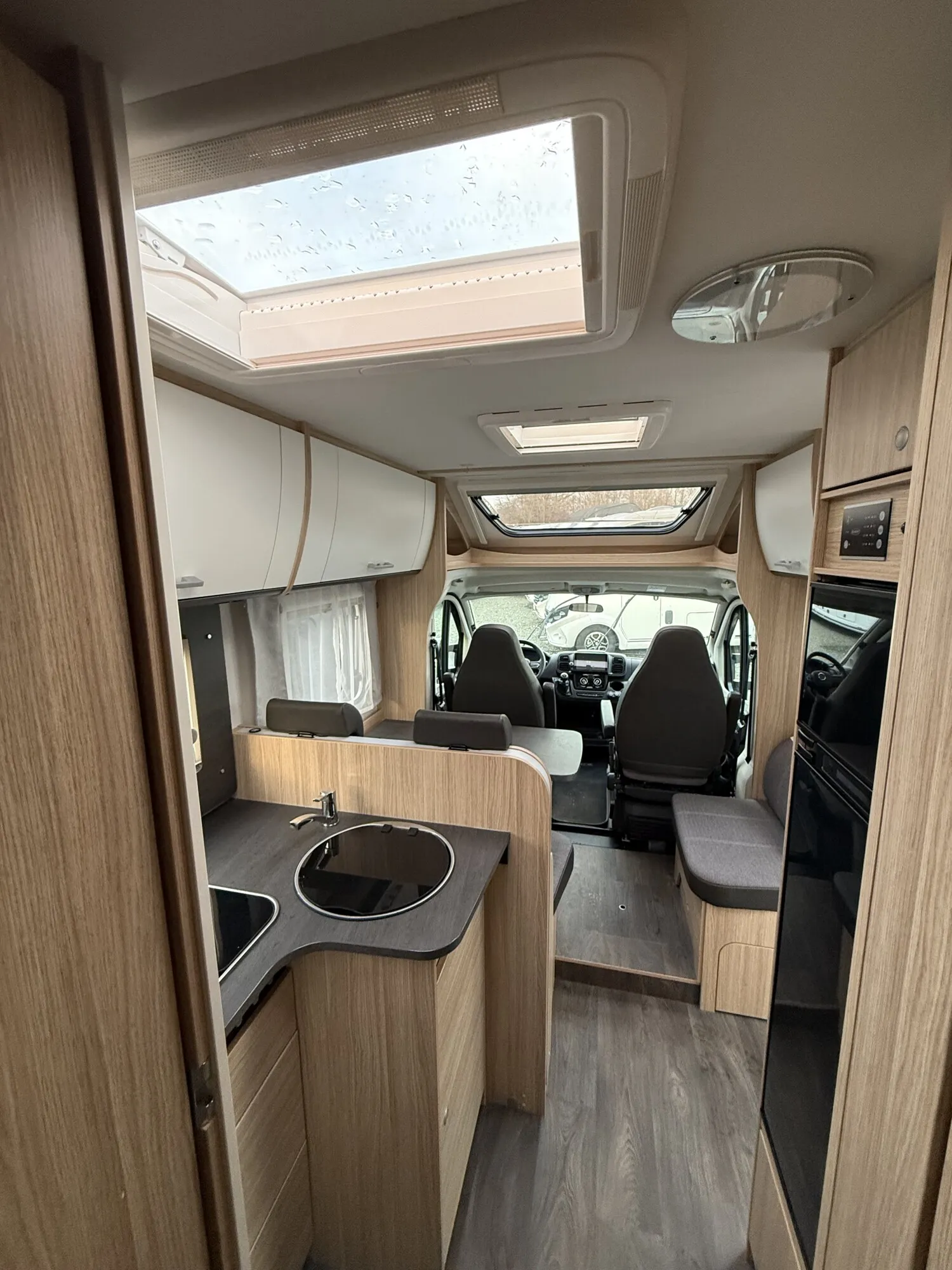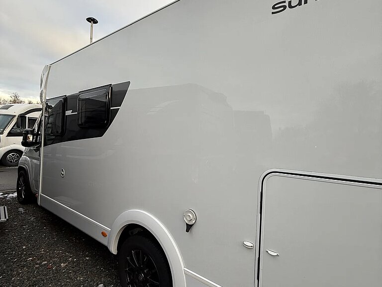 - Basic Paket Teilintegrierte und Alkoven (Außenspiegel elektrisch und beheizt, Radiovorbereitung mit Lautsprechern, DAB Antenne integriert im Außenspiegel, Beifahrersitz höhenverstellbar, Panormadachhaube über Küche, Klarglasdachhaube 40x40, Duschraumverkleidung, Spiegel mit indirekter Beleuchtung und Garderobenhaken, Captain Chair mit Bezügen, Zusätzliche Steckdose im Dachschrank über dem Küchenblock, Steckdose in der Garage)