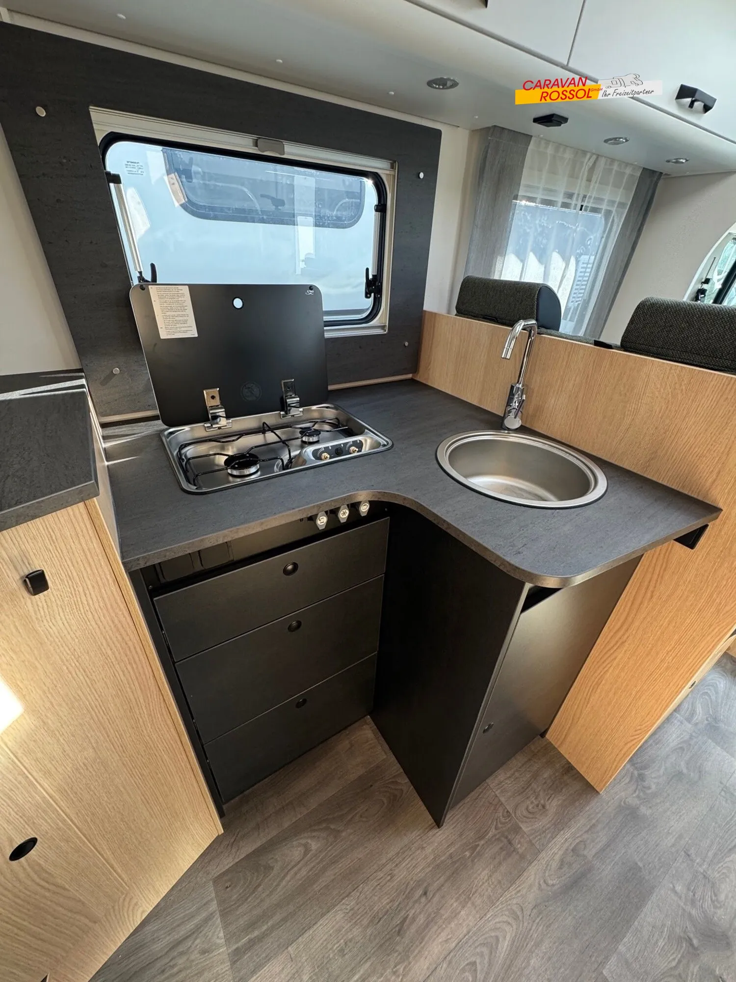- Adventure Ausstattung 67S (Fiat Ducato 3.500 kg | 2.2 Multijet | 103 kW | 140 PS Euro 6 | 6-Gang-Schaltgetriebe, Chassisfarbe Weiß, Adventure Beklebung, Wohnwelt Adventure, Design Applikation Heck, Fenster in Fronthaube, Rahmenfenster, 2. Außenstauraumklappe (Größe modellabhängig), Großer Kühlschrank 156 l mit separatem Frosterfach 29 l, Bettenumbau Einzelbett zu Doppelbett, Paket One Black (Markise, Fahrradträger 3-fach), Bridge Light, Komfort Eingangstür mit Fenster, Fliegengittertür (einteilig), Panoramadachhaube 70 x 50 cm, Klarglasdachhaube 40 x 40 cm, Stoßfänger lackiert, Skid Plate Schwarz, Nebelscheinwerfer, Lenkrad & Schaltknauf in Lederausführung, Luftauslässe mit Applikationen Silber (Techno-Trim), 16" Alufelgen Bi-Color)