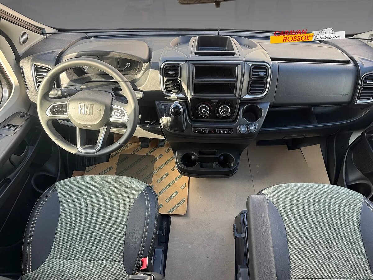 - Adventure Ausstattung 67S (Fiat Ducato 3.500 kg | 2.2 Multijet | 103 kW | 140 PS Euro 6 | 6-Gang-Schaltgetriebe, Chassisfarbe Weiß, Adventure Beklebung, Wohnwelt Adventure, Design Applikation Heck, Fenster in Fronthaube, Rahmenfenster, 2. Außenstauraumklappe (Größe modellabhängig), Großer Kühlschrank 156 l mit separatem Frosterfach 29 l, Bettenumbau Einzelbett zu Doppelbett, Paket One Black (Markise, Fahrradträger 3-fach), Bridge Light, Komfort Eingangstür mit Fenster, Fliegengittertür (einteilig), Panoramadachhaube 70 x 50 cm, Klarglasdachhaube 40 x 40 cm, Stoßfänger lackiert, Skid Plate Schwarz, Nebelscheinwerfer, Lenkrad & Schaltknauf in Lederausführung, Luftauslässe mit Applikationen Silber (Techno-Trim), 16" Alufelgen Bi-Color)