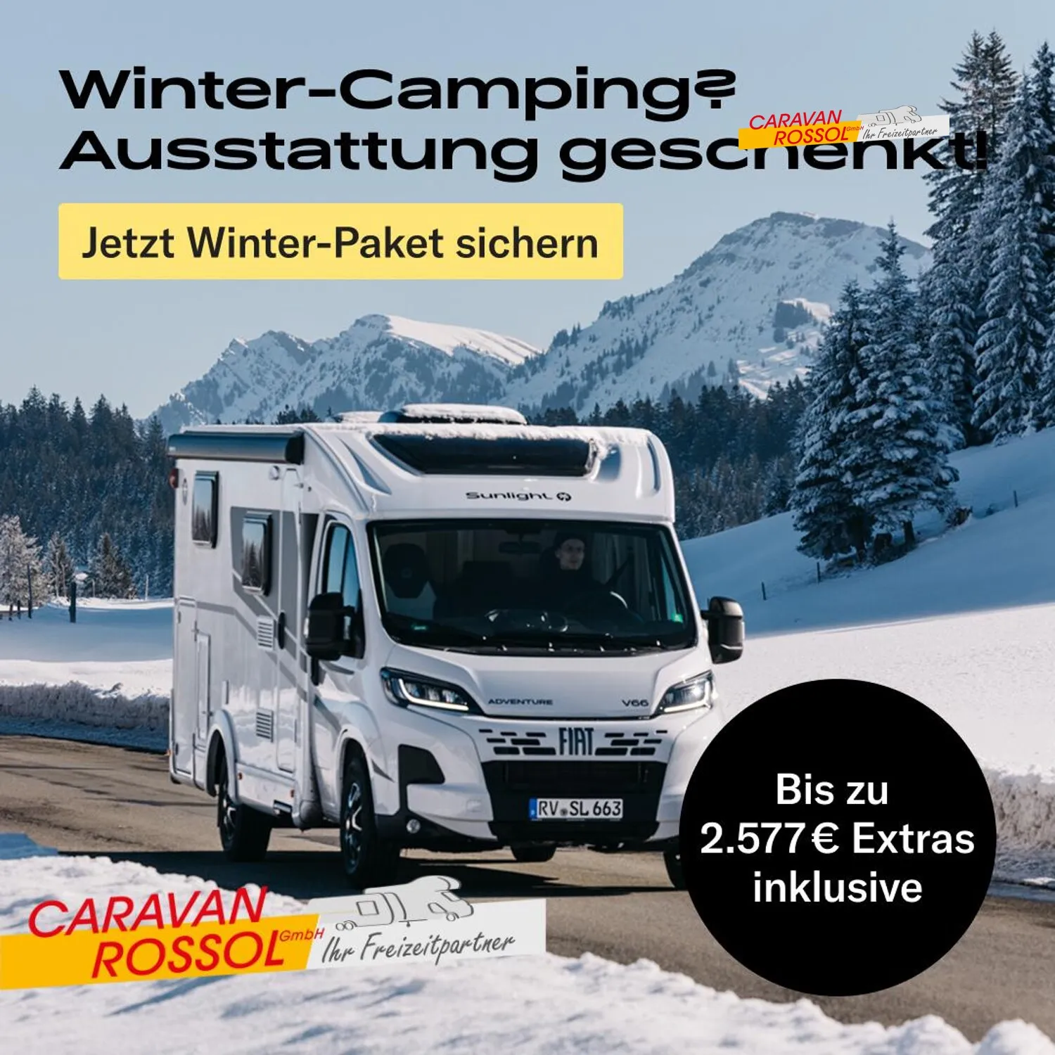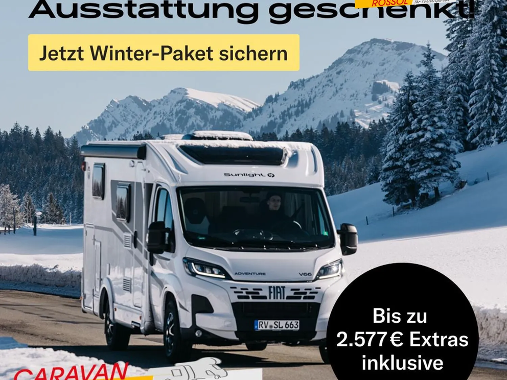 - Aktionsprämie "Winterpaket" (Für den SUNLIGHT Teilintegrierte Serie oder Adventure beinhaltet das Winterpaket die Truma Combi 6 E, einen Abwassertank isoliert sowie das Safety Paket inkl. ACC und hat einen Wert von 2.577. Dieses Angebot ist gültig bei allen offiziellen SUNLIGHT Handelspartnern für Neufahrzeuge, die im Zeitraum vom 01.11.2025 bis 31.12.2025 bestellt werden. Die Aktionsprämie wird nur bei Bestellung der oben aufgeführten Winterausstattung gewährt und ist nicht gültig für bereits bestehende Kaufverträge. Kaufverträge innerhalb der Aktion sind vom Widerruf ausgeschlossen. SUNLIGHT behält sich das Recht vor, Aktionsbedingungen jederzeit zu ändern oder die Aktion vorzeitig zu beenden.)