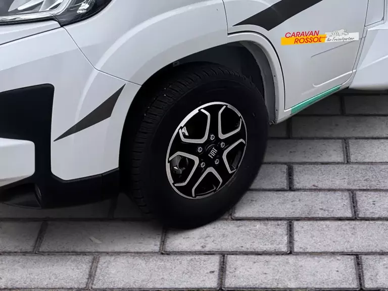 - Adventure Ausstattung 69LC (Fiat Ducato 3.500 kg | 2.2 Multijet | 103 kW | 140 PS Euro 6 | 6-Gang-Schaltgetriebe, Chassisfarbe Weiß, Adventure Beklebung, Wohnwelt Adventure, Design Applikation Heck, Fenster in Fronthaube, Rahmenfenster, 2. Außenstauraumklappe (Größe modellabhängig), Großer Kühlschrank 156 l mit separatem Frosterfach 29 l, Bettenumbau im Bereich Sitzgruppe, Paket One Black (Markise, Fahrradträger 3-fach), Bridge Light, Komfort Eingangstür mit Fenster, Fliegengittertür (einteilig), Panoramadachhaube 70 x 50 cm, Klarglasdachhaube 40 x 40 cm, Stoßfänger lackiert, Skid Plate Schwarz, Nebelscheinwerfer, Lenkrad & Schaltknauf in Lederausführung, Luftauslässe mit Applikationen Silber (Techno-Trim), 16" Alufelgen Bi-Color)