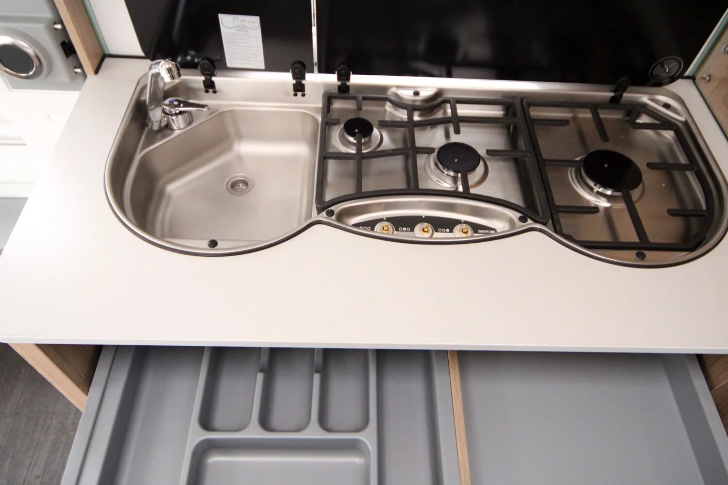 - Touring-Paket (Warmwasserversorgung, Fliegengittertüre, Warmluftanlage, Dachhaube inkl. Beleuchtung, 700 x 500 mm)