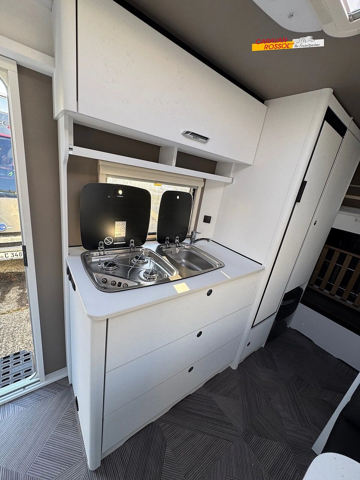 - Touring-Paket (Warmwasserversorgung, Warmluftanlage, Fliegengittertüre, Dachhaube Heki II inkl. Baldachin beleuchtet)