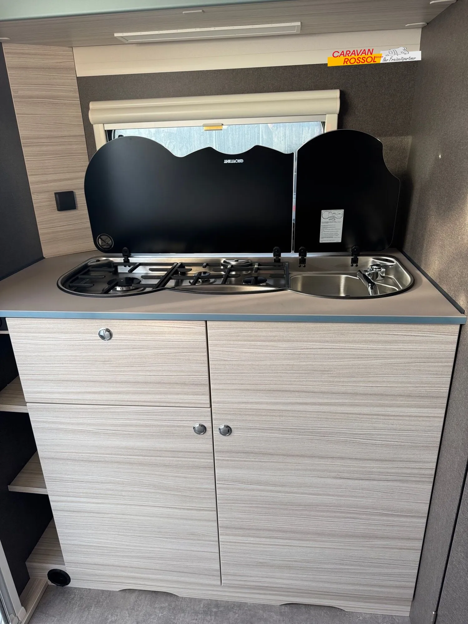 - Dynamik-Paket (Sicherheitskupplung, Stoßdämpfer, Großer 44 l Frischwassertank, Mobiler 22 l Abwassertank, Reserveradhalterung im Gasflaschenkasten, Stauraumklappe vorne rechts 1000x420 mm)