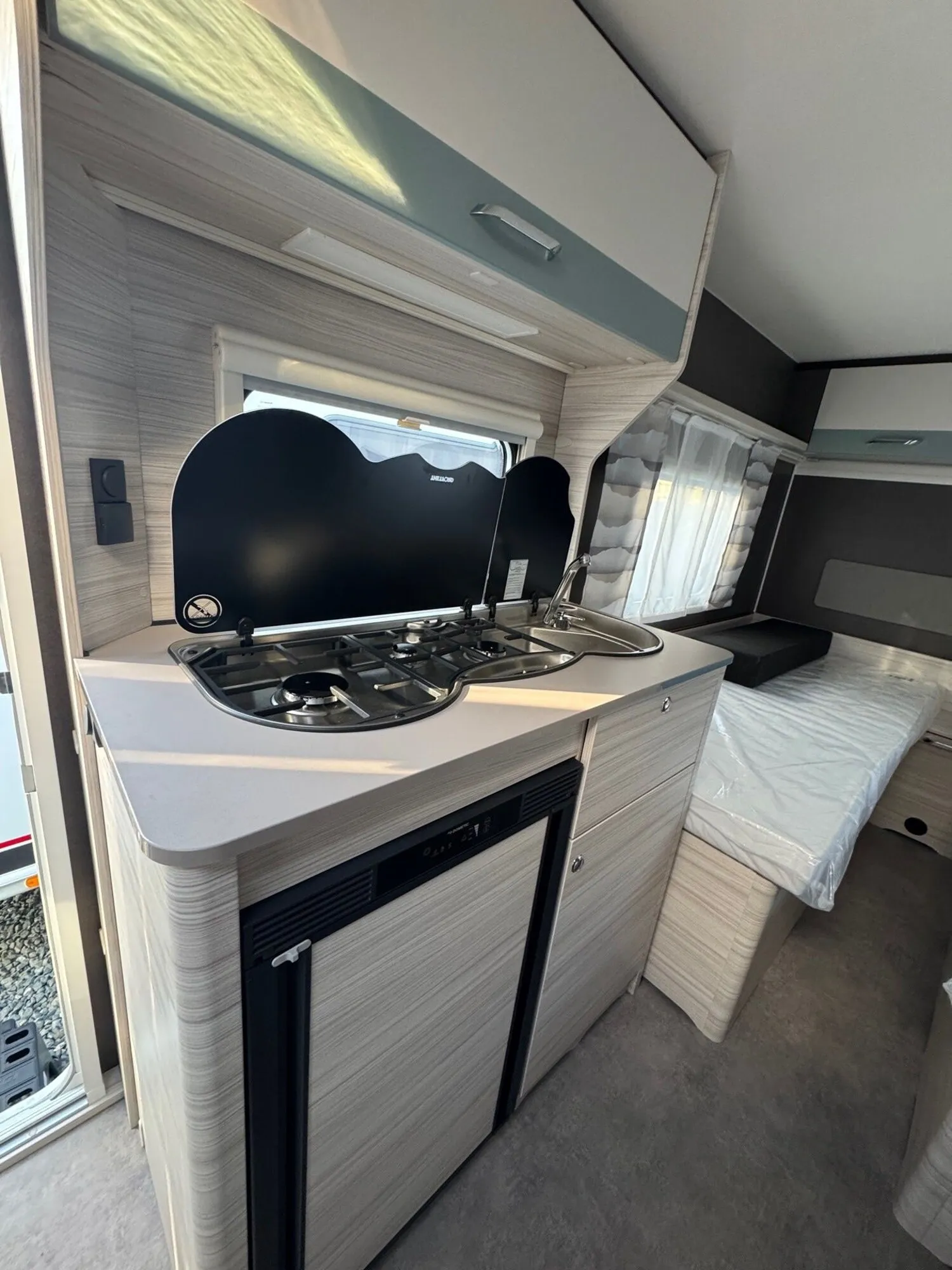 - Dynamik-Paket (Sicherheitskupplung, Stoßdämpfer, Großer 44 l Frischwassertank, Mobiler 22 l Abwassertank, Reserveradhalterung im Gasflaschenkasten, Stauraumklappe hinten rechts 1000x420 mm)