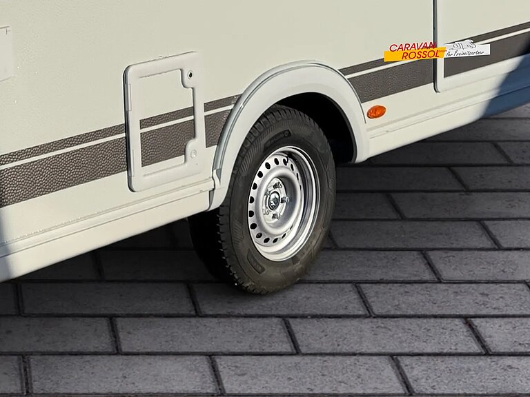 - Dynamik-Paket (Sicherheitskupplung, Stoßdämpfer, Großer 44 l Frischwassertank, Mobiler 22 l Abwassertank, Reserveradhalterung im Gasflaschenkasten, Stauraumklappe hinten rechts 1000x420 mm)